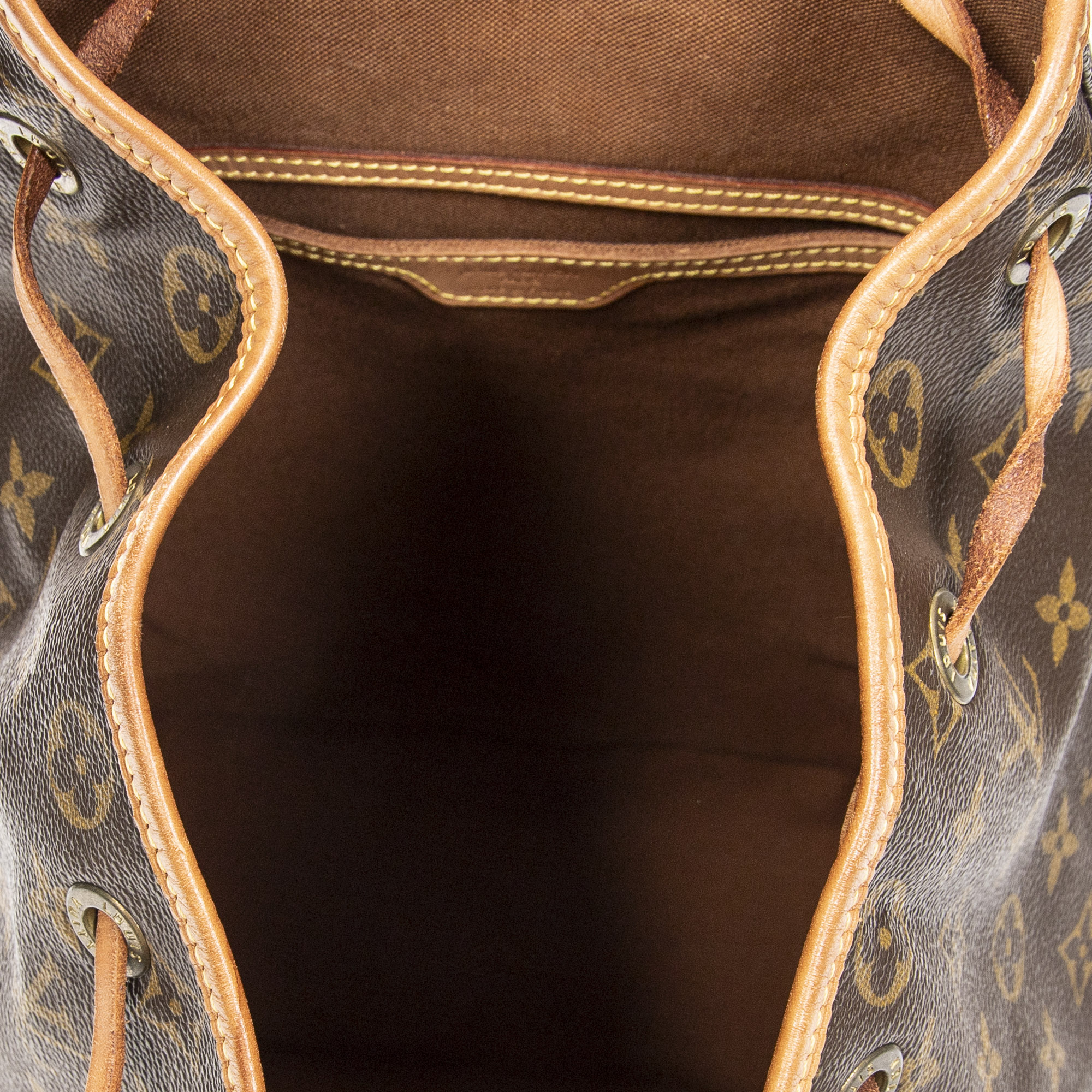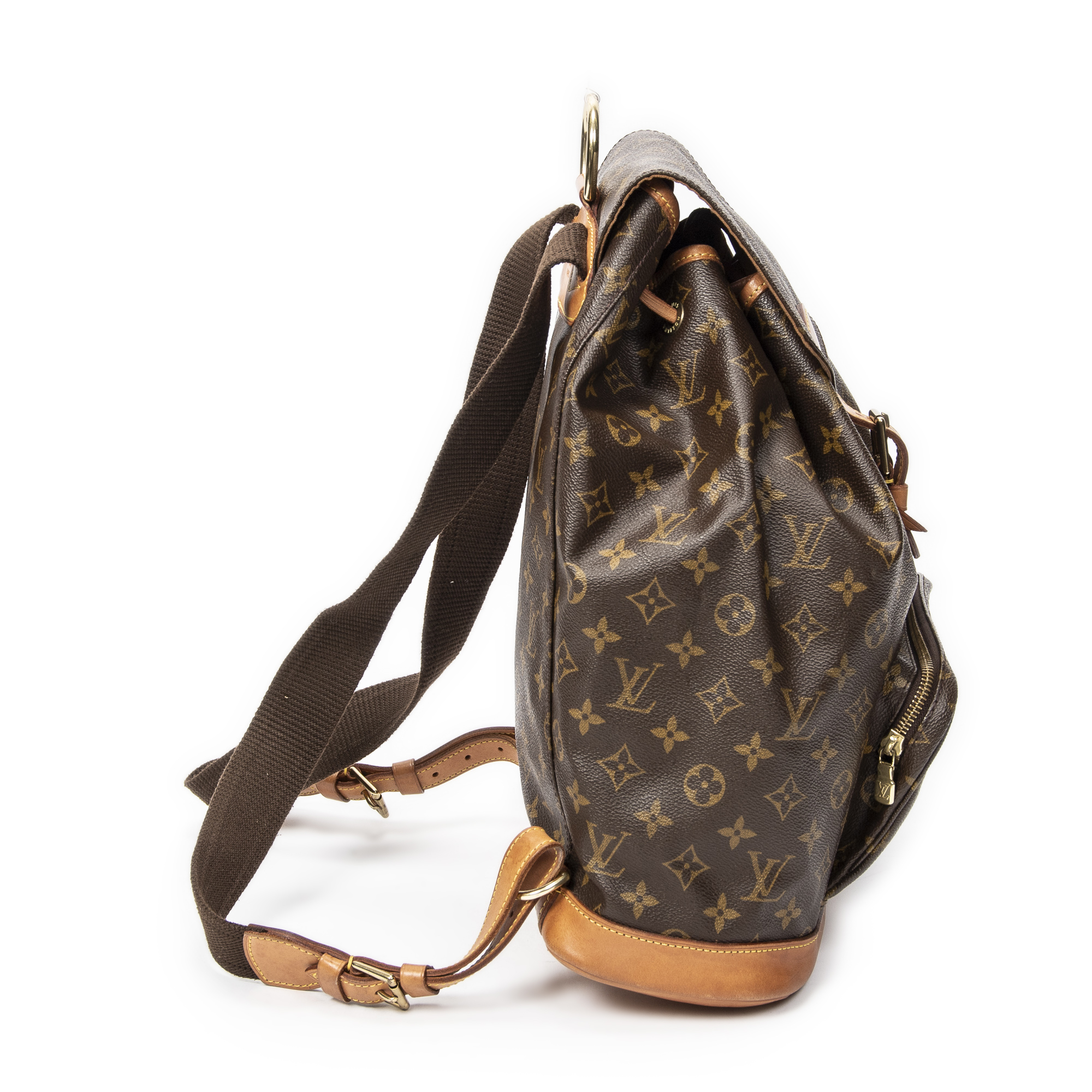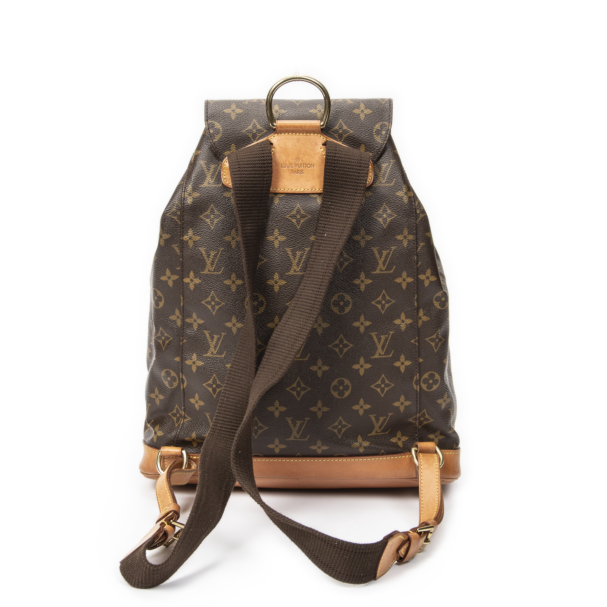 Louis Vuitton Backpack Montsouris GM in Brown Monogram Canvas and Golden Brass hardware. The product is in Very Good Condition (AB).