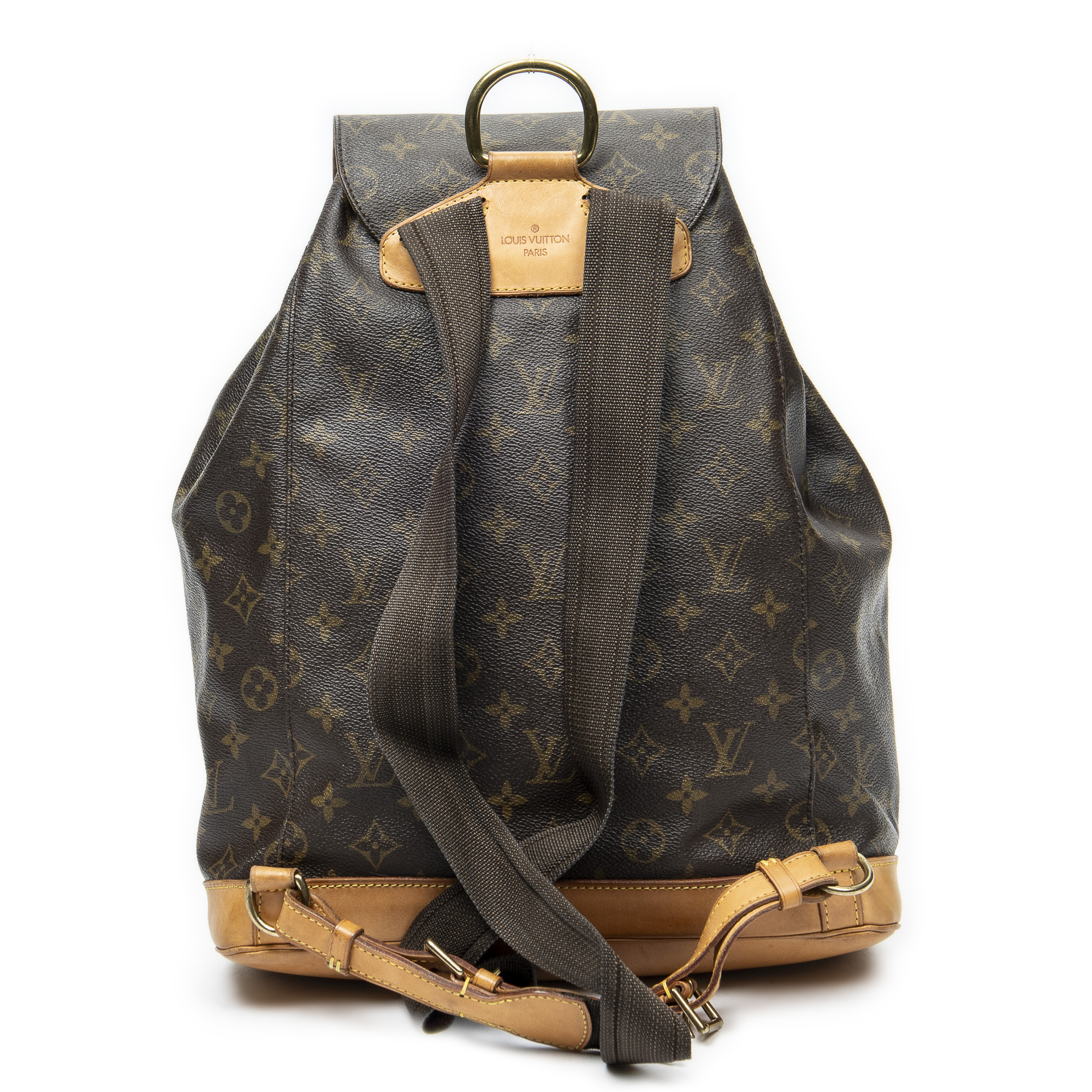 Louis Vuitton Backpack Montsouris GM in Brown Monogram Canvas and Golden Brass hardware. The product is in Very Good Condition (AB).