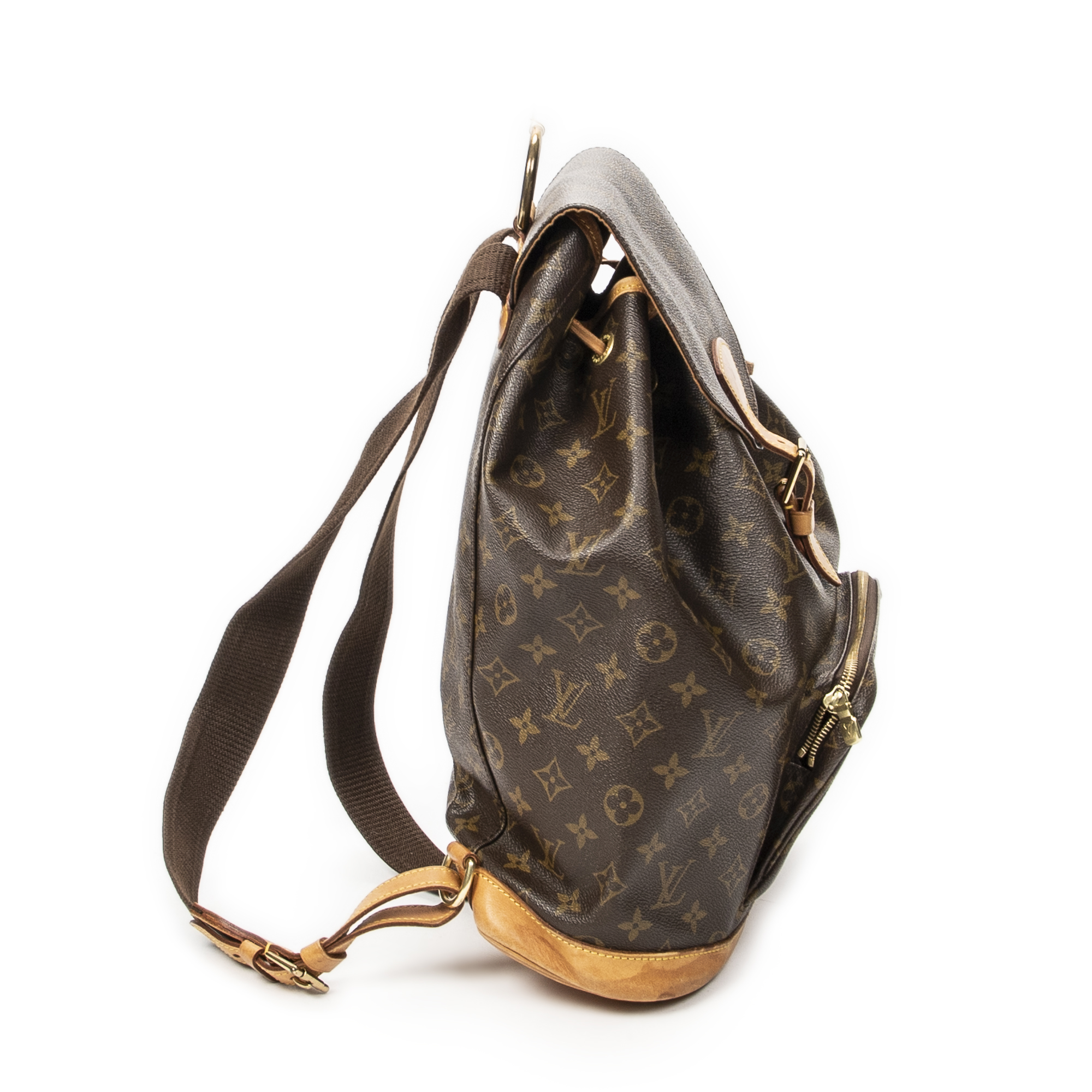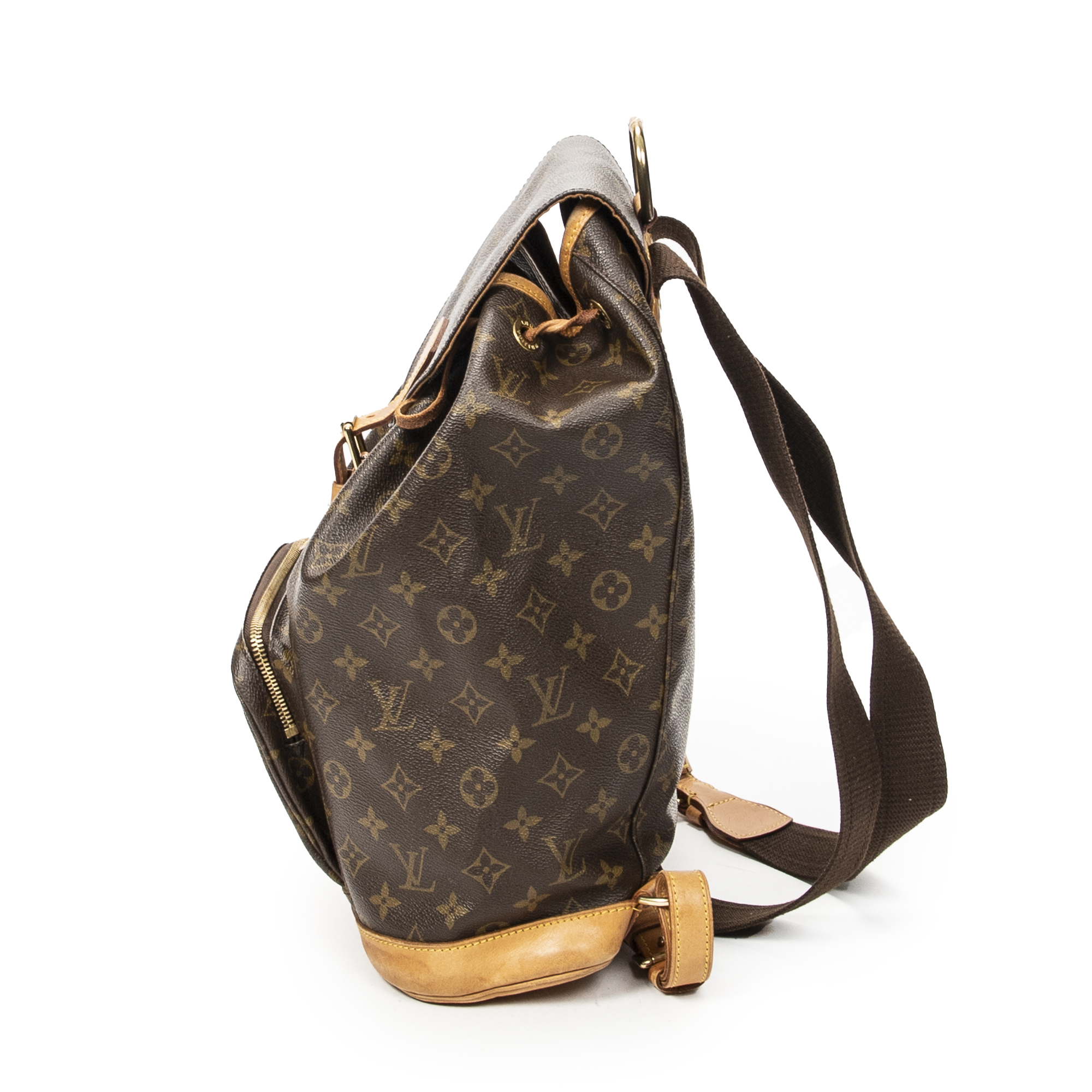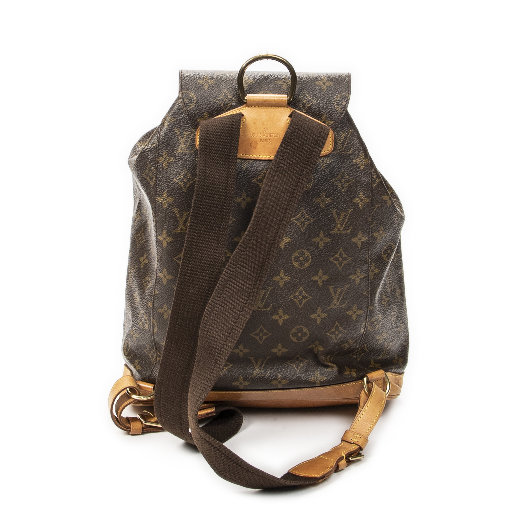 Louis Vuitton Backpack Montsouris GM in Brown Monogram Canvas and Golden Brass hardware. The product is in Very Good Condition (AB).