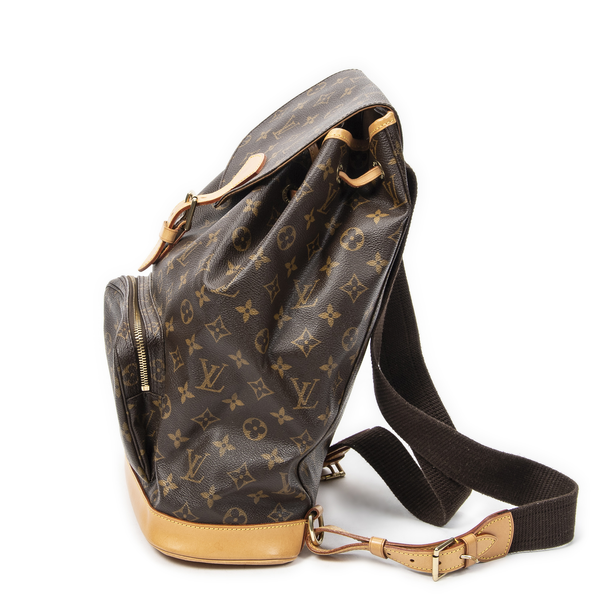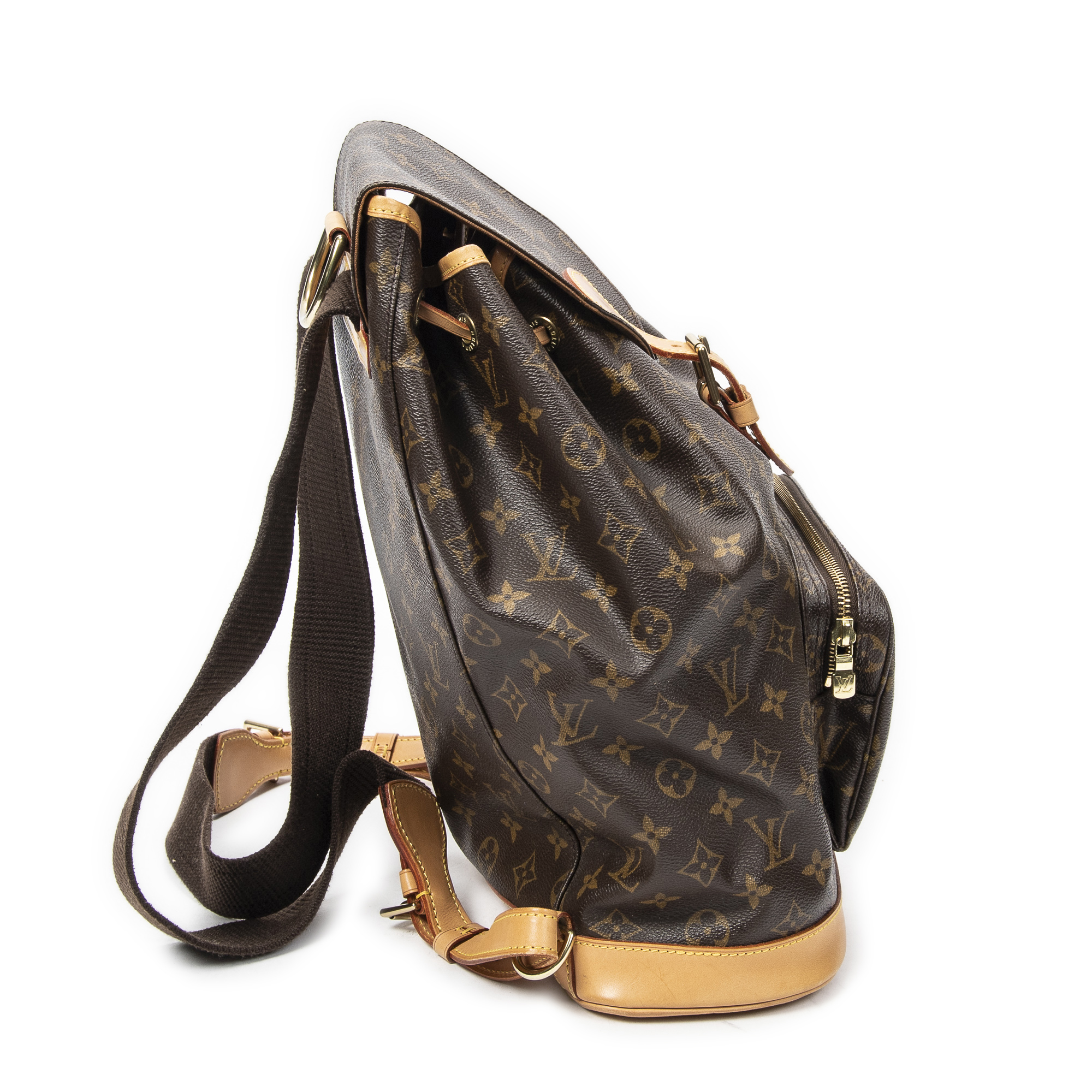 Louis Vuitton Backpack Montsouris GM in Brown Monogram Canvas and Golden Brass hardware. The product is in Excellent Condition (A).