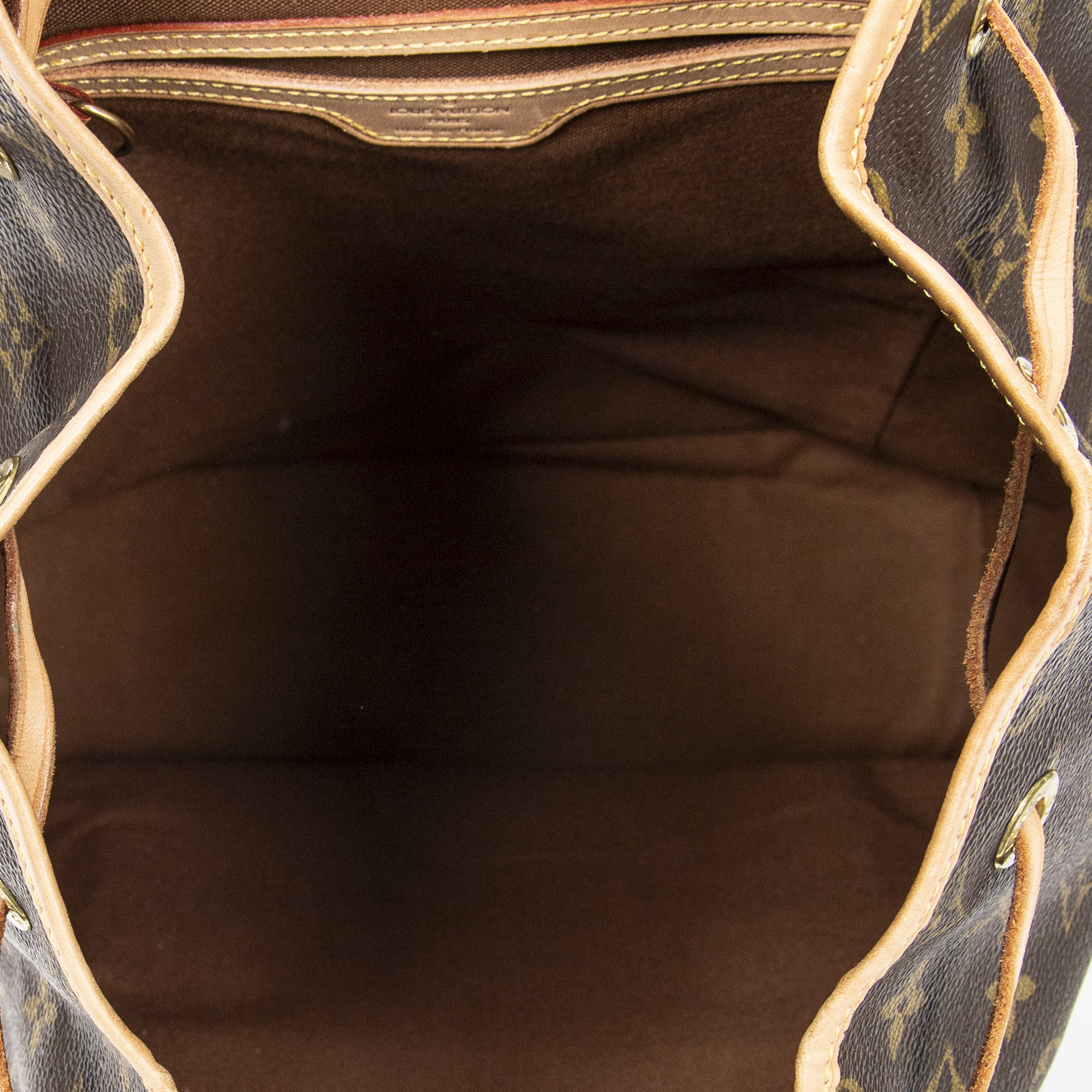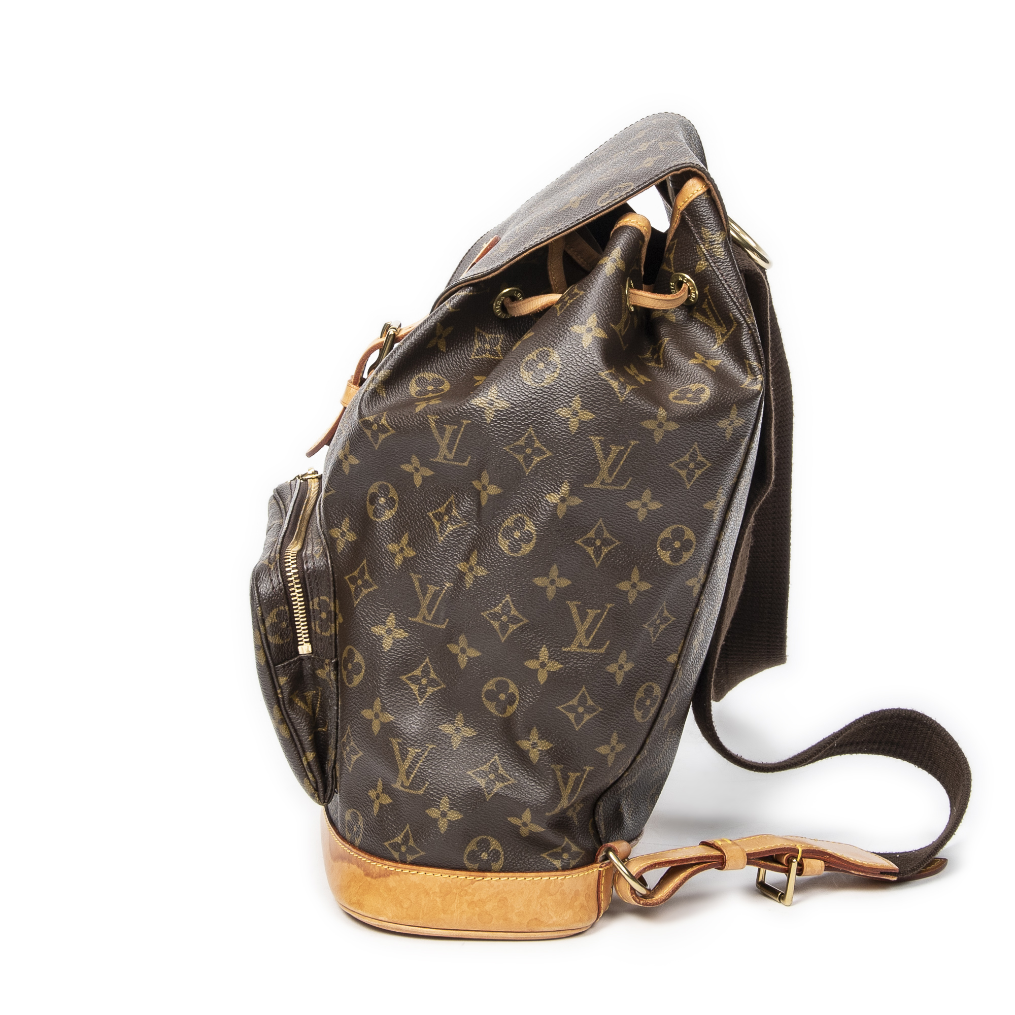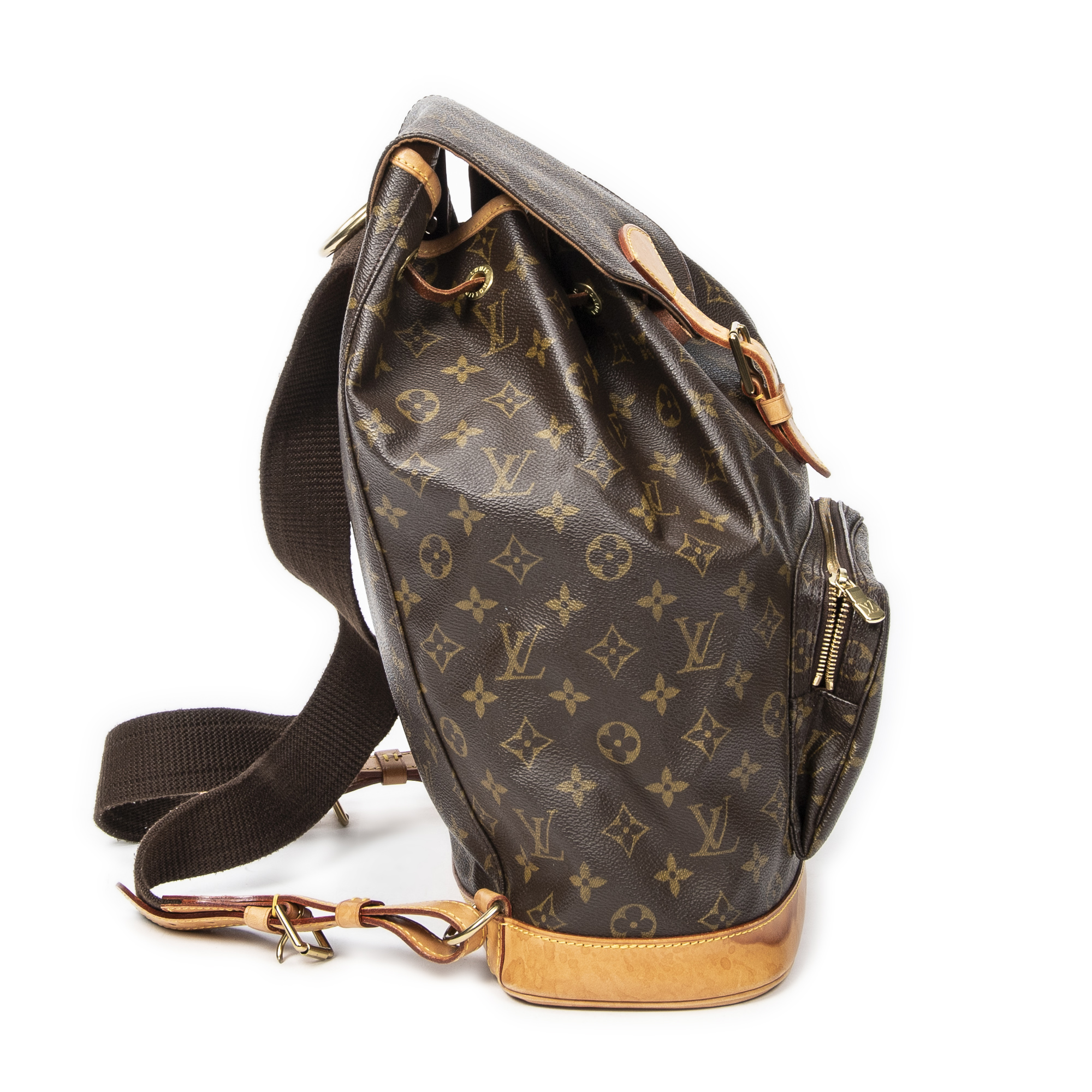 Louis Vuitton Backpack Montsouris GM in Brown Monogram Canvas and Golden Brass hardware. The product is in Very Good Condition (AB).