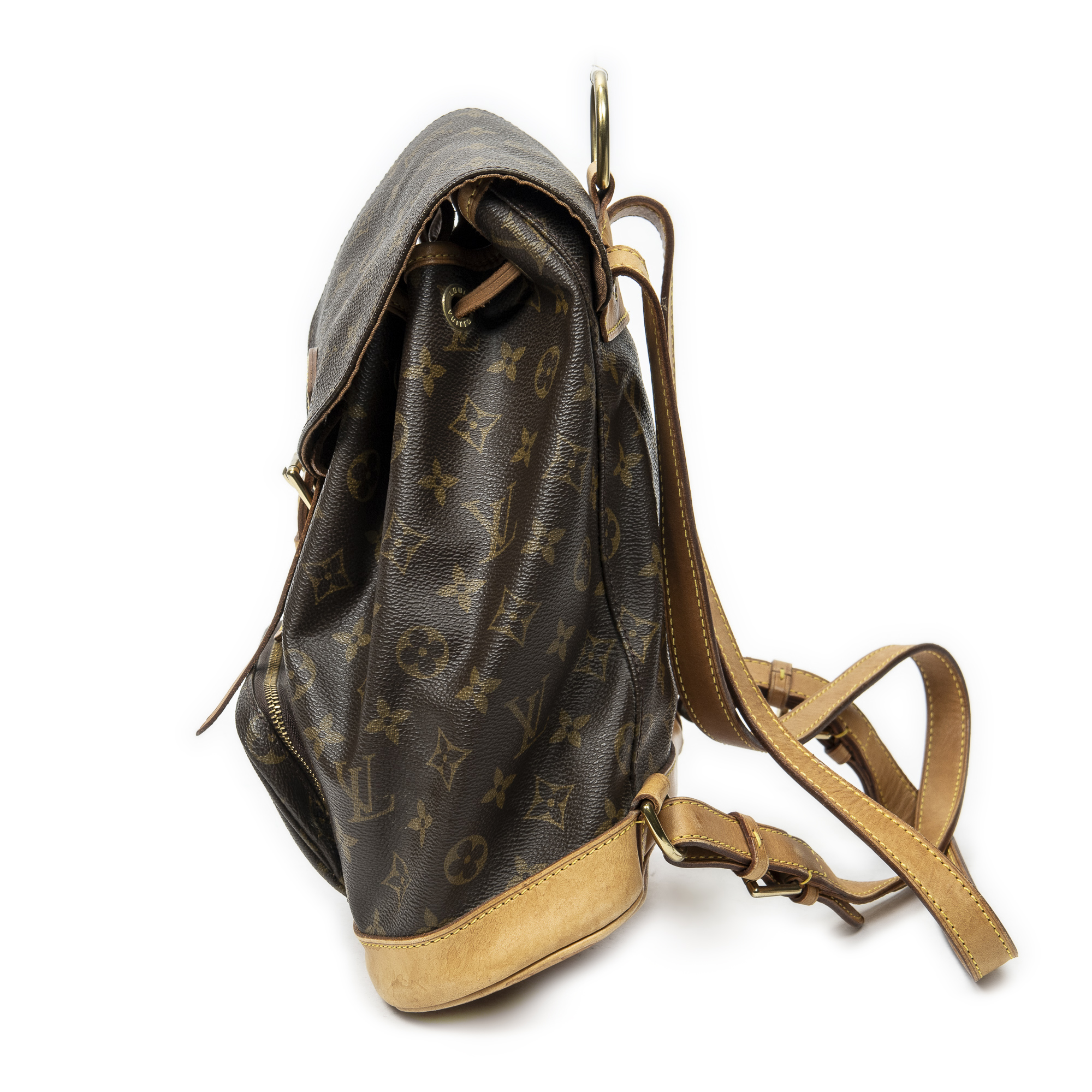 Louis Vuitton Backpack Montsouris MM in Brown Monogram Canvas and Golden Brass hardware. The product is in Very Good Condition (AB).