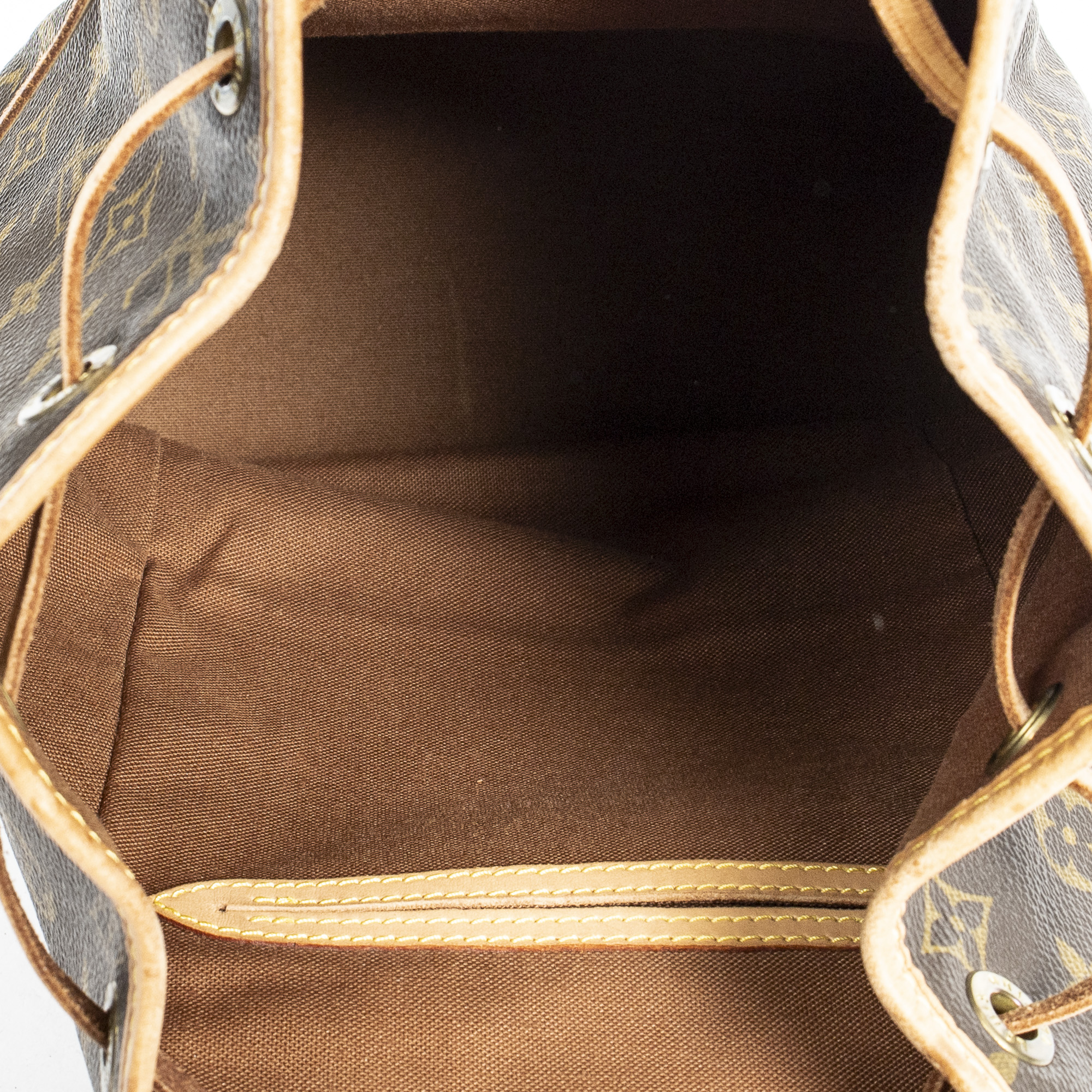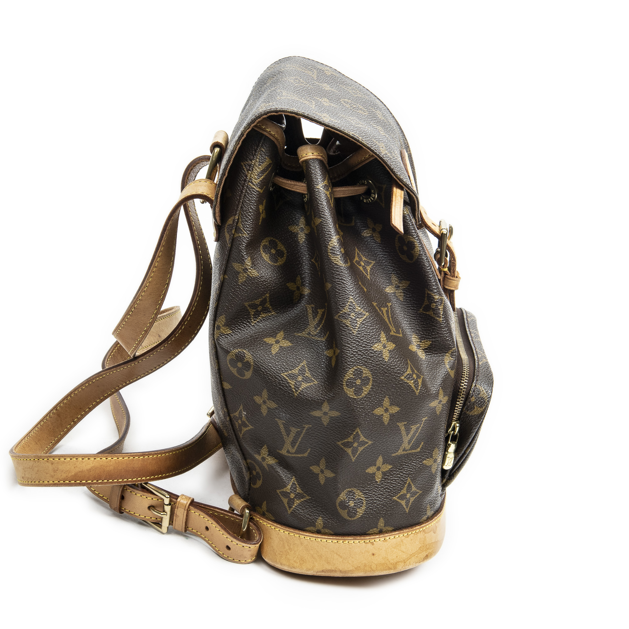Louis Vuitton Backpack Montsouris MM in Brown Monogram Canvas and Golden Brass hardware. The product is in Very Good Condition (AB).