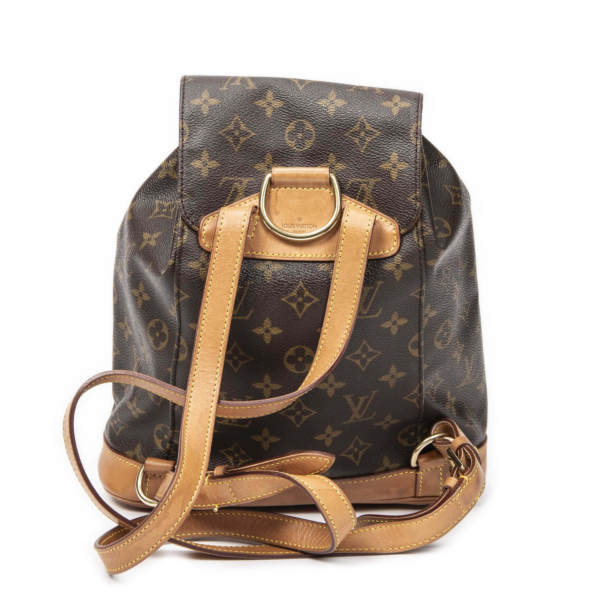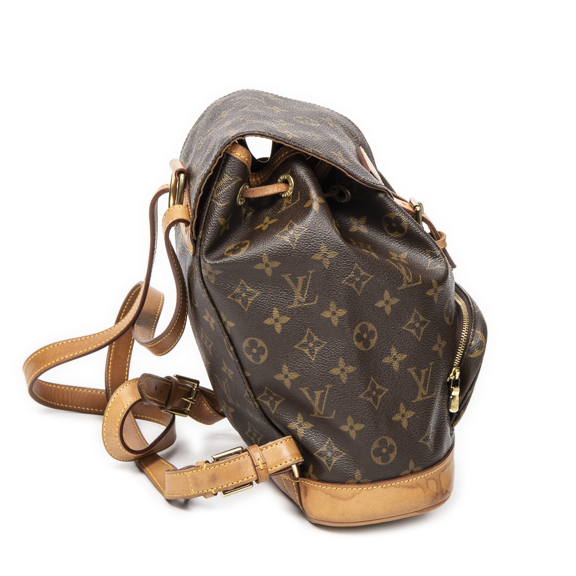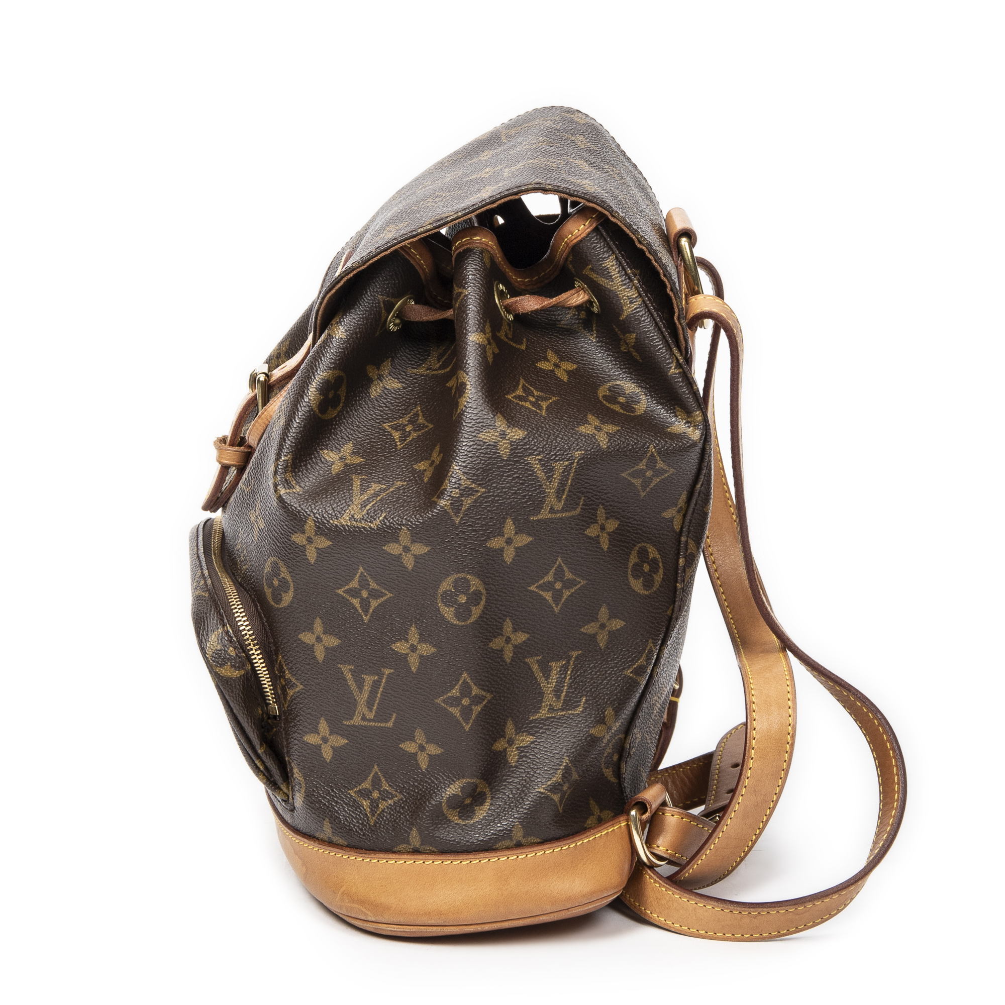 Louis Vuitton Backpack Montsouris MM in Brown Monogram Canvas and Golden Brass hardware. The product is in Very Good Condition (AB).