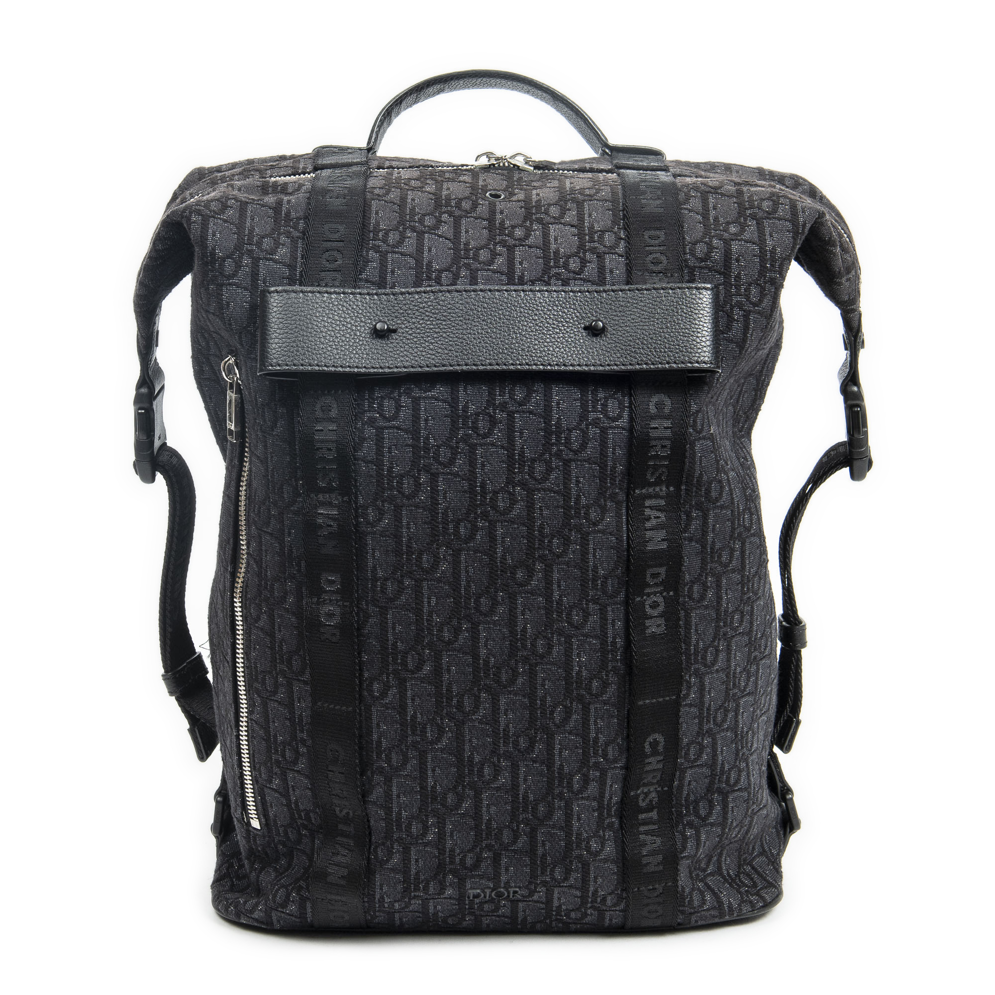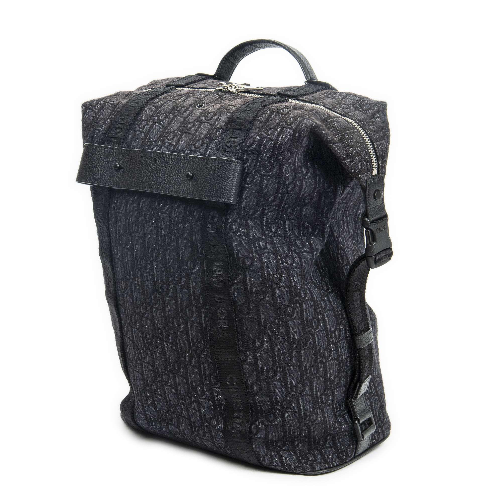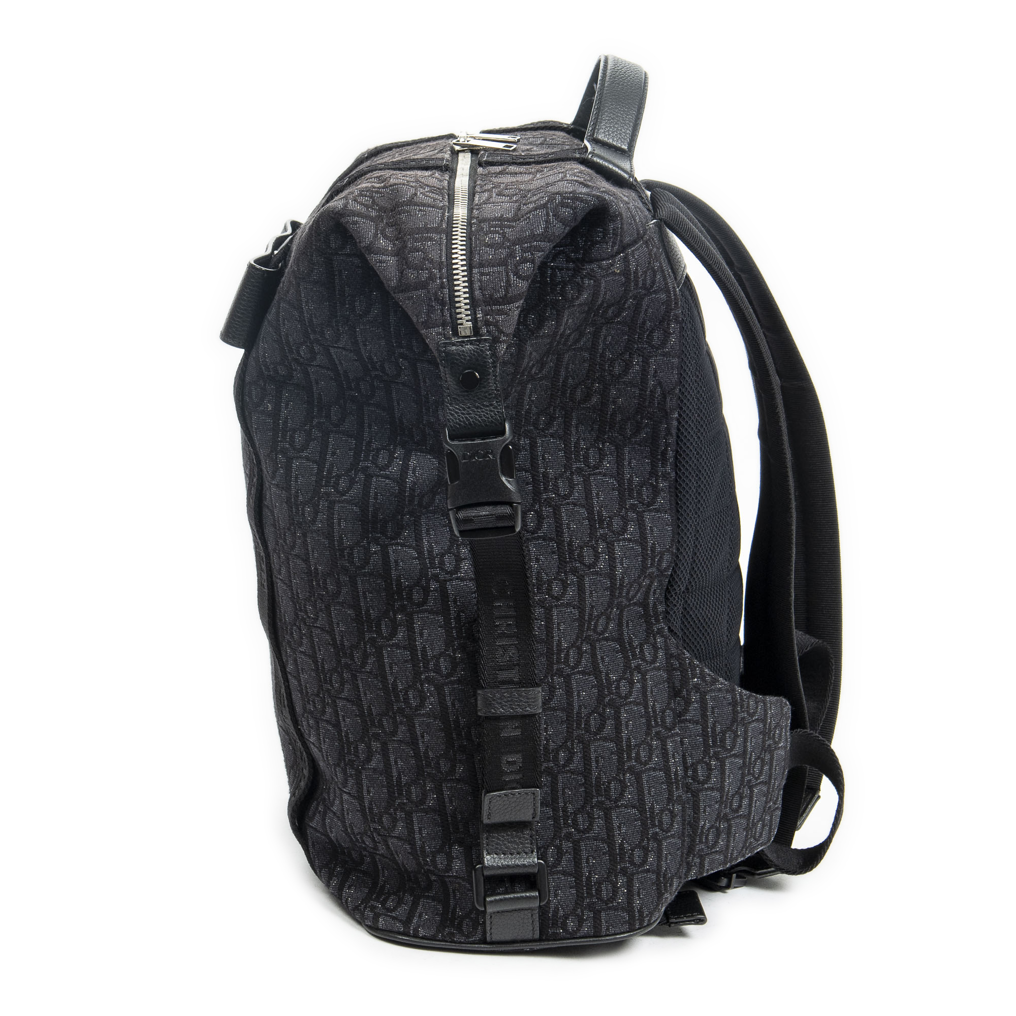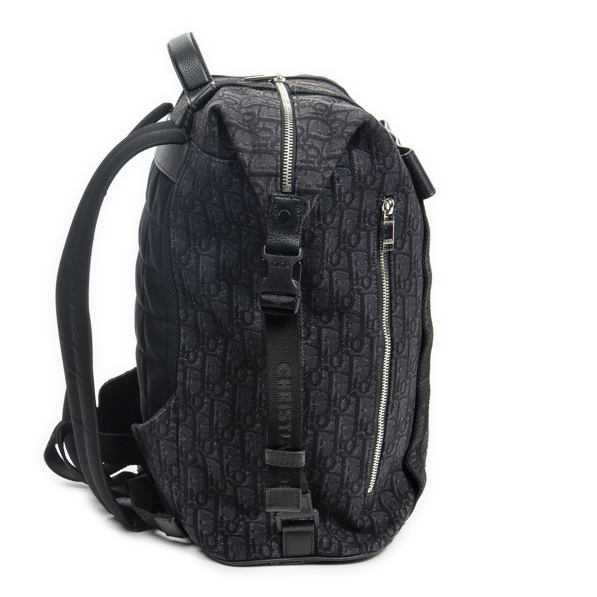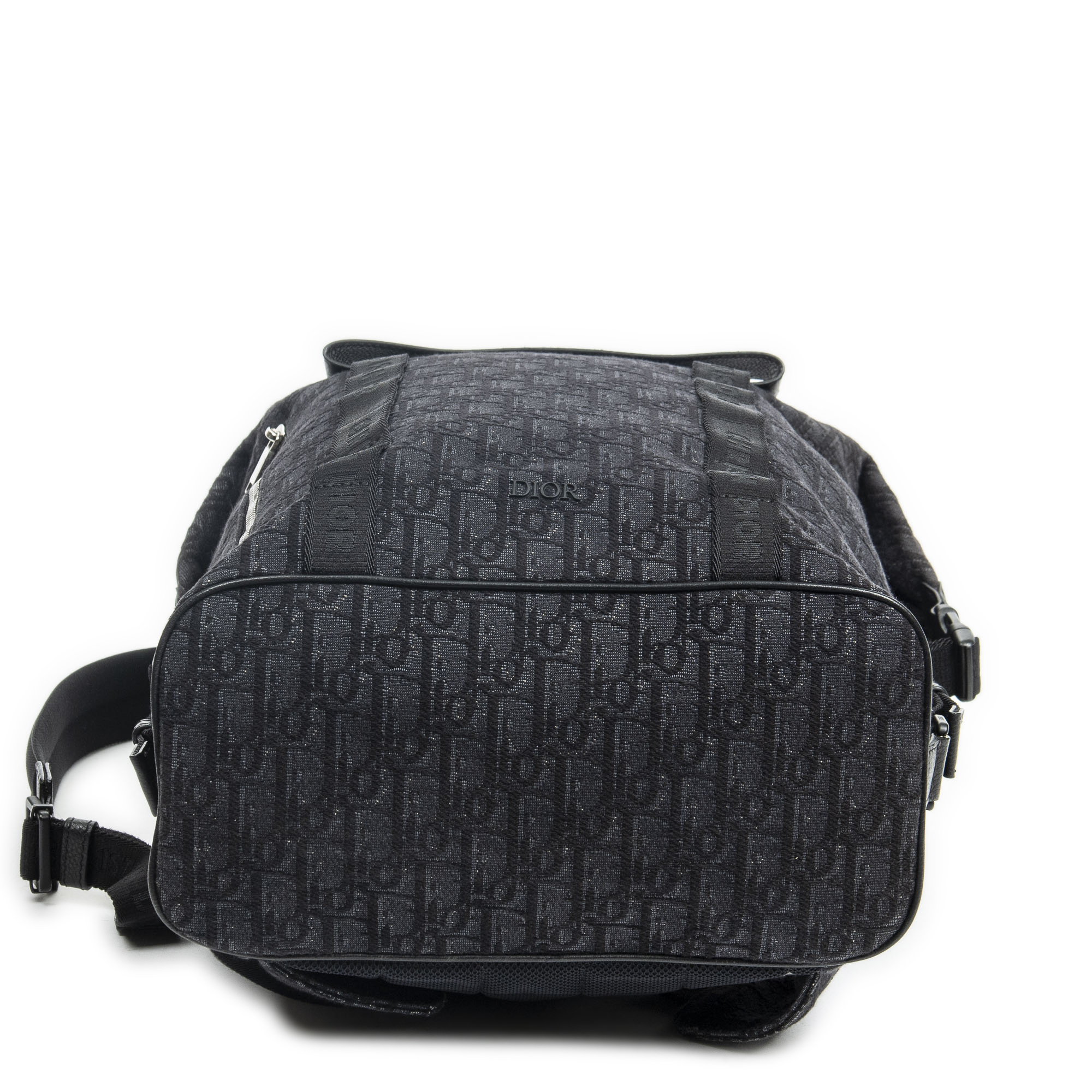 Dior Backpack Safari Backpack in Black Oblique Jacquard Canvas and Silver hardware. The product is in Perfect Condition (AA).