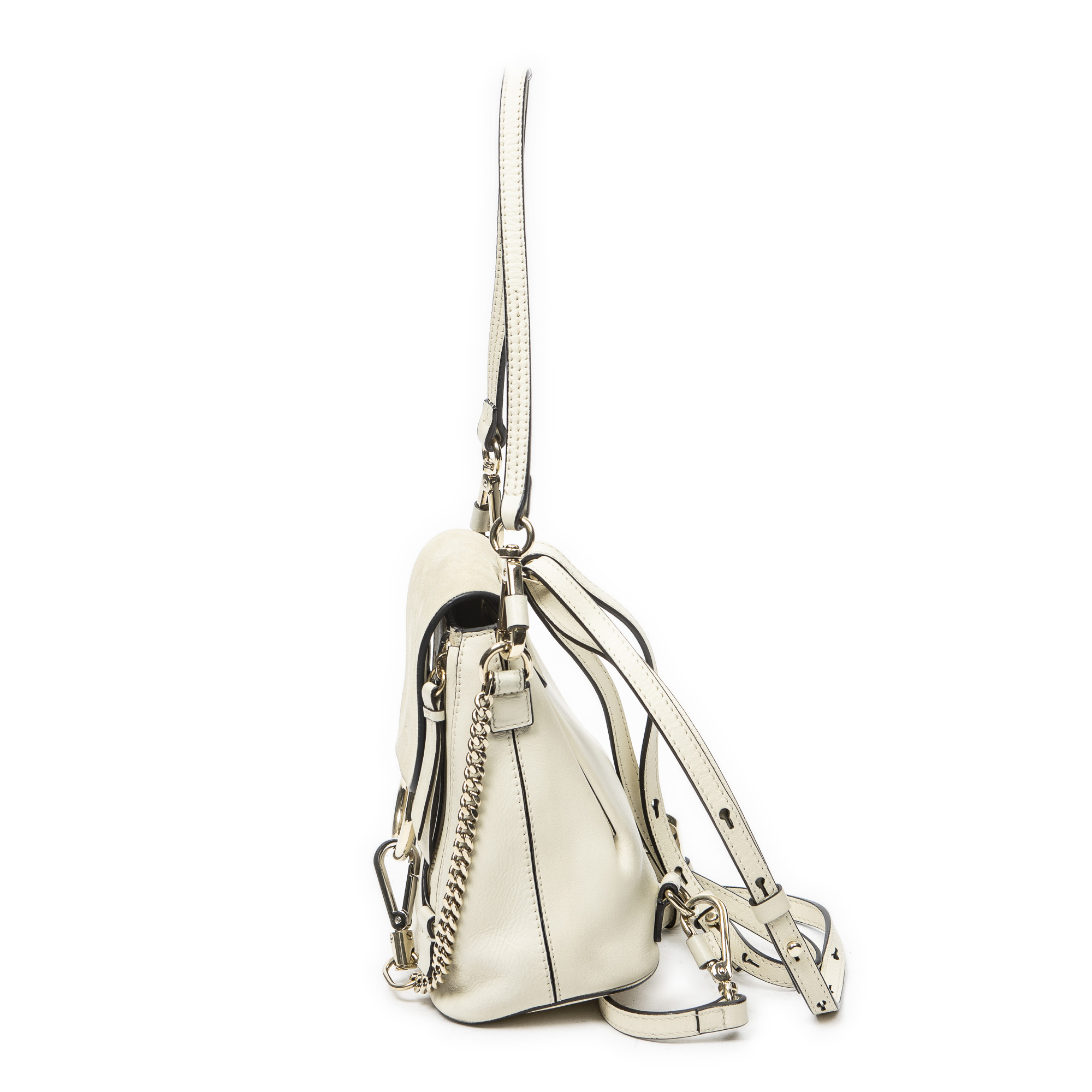 Chloé Backpack Small Faye Backpack in Ivory Calfskin Leather and Silver hardware. The product is in Excellent Condition (A).