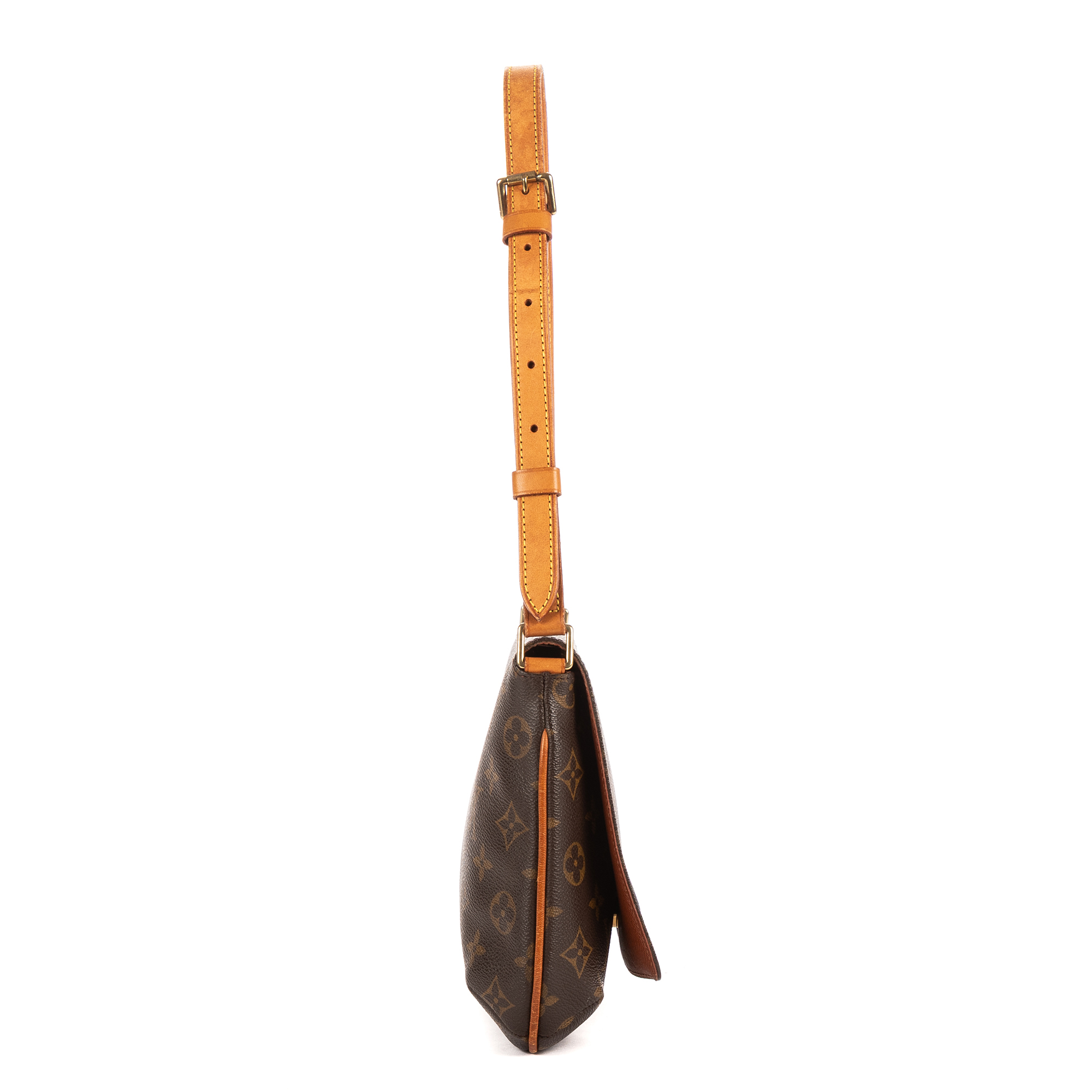 Louis Vuitton Crossbody Musette Tango in Brown Monogram Canvas and Golden Brass hardware. The product is in Perfect Condition (AA).