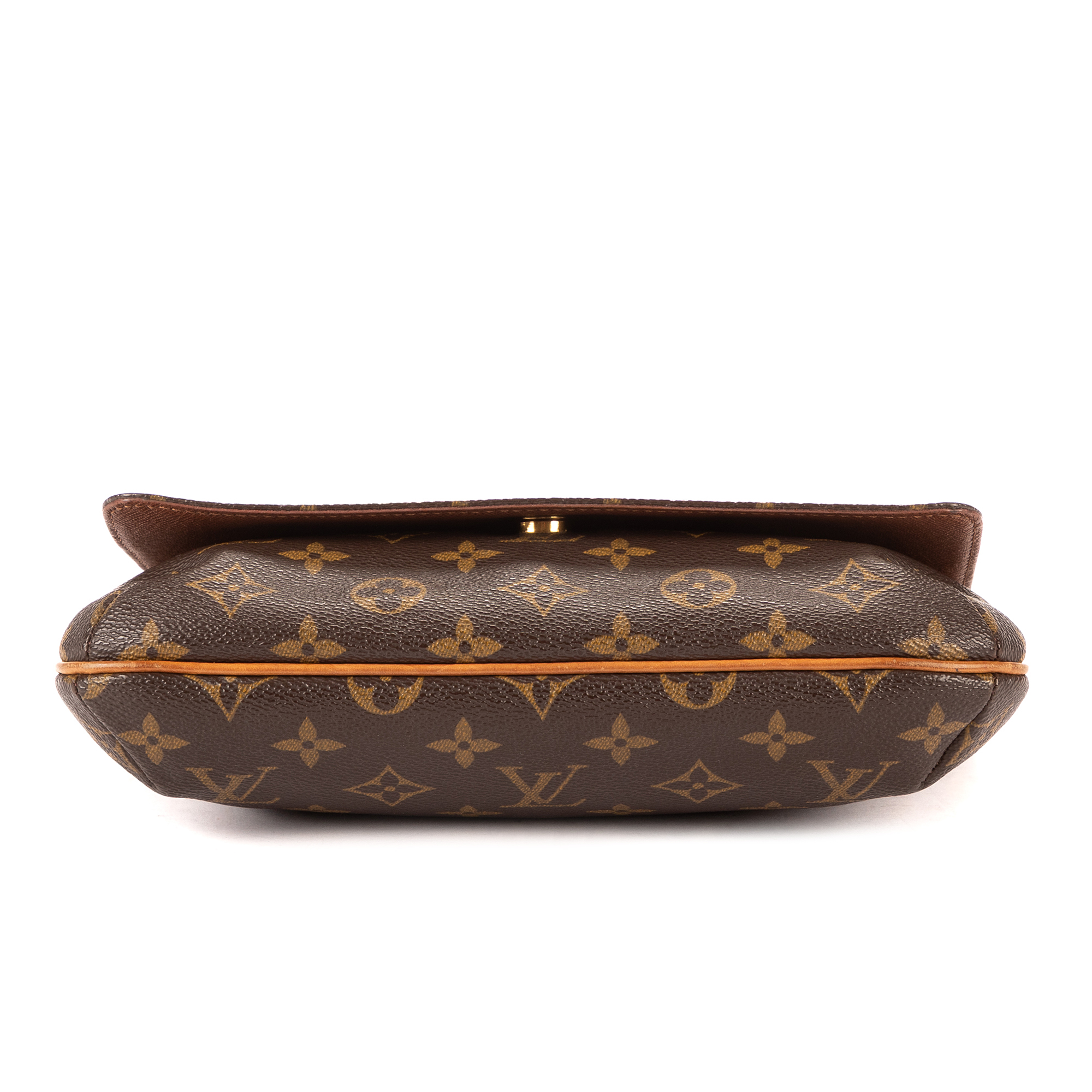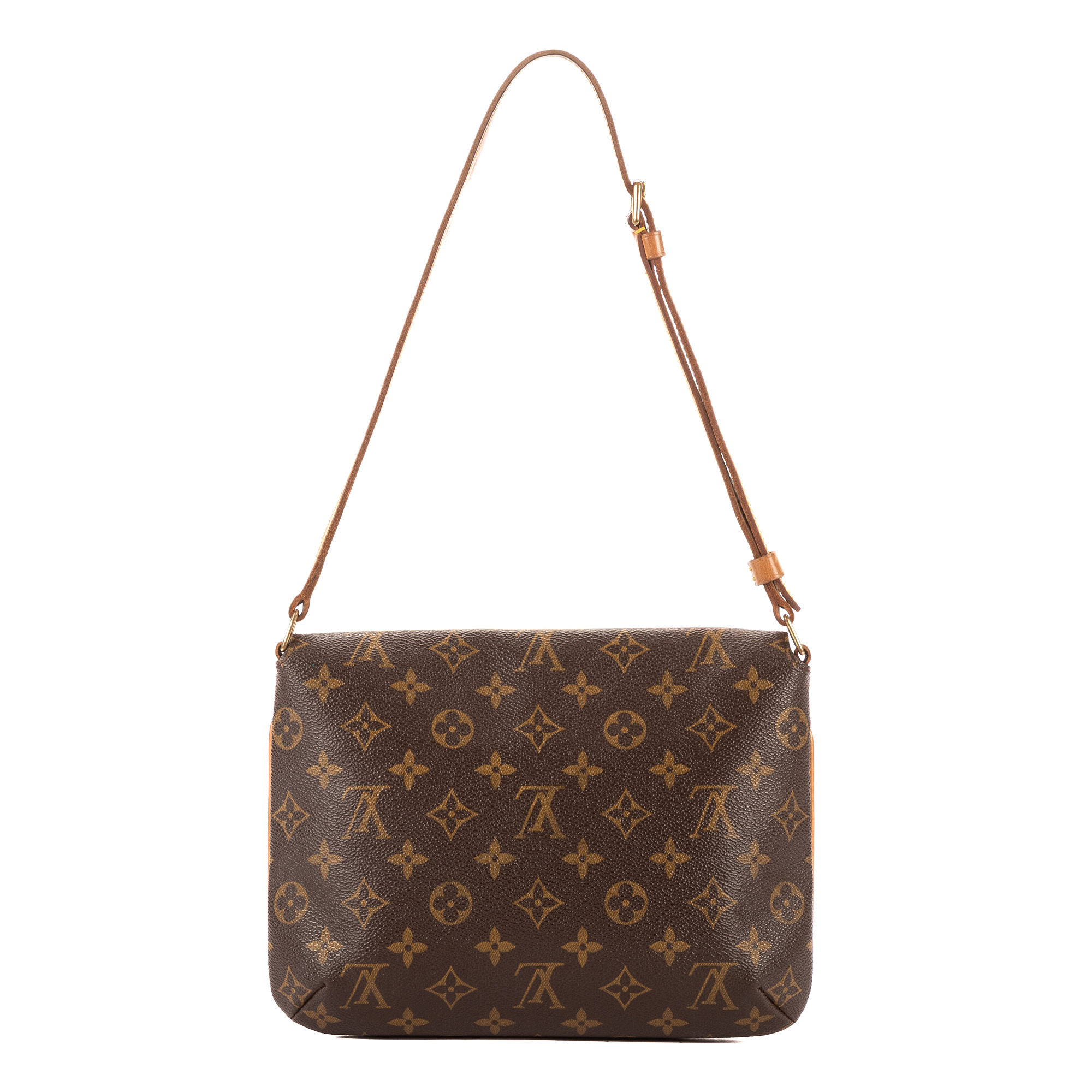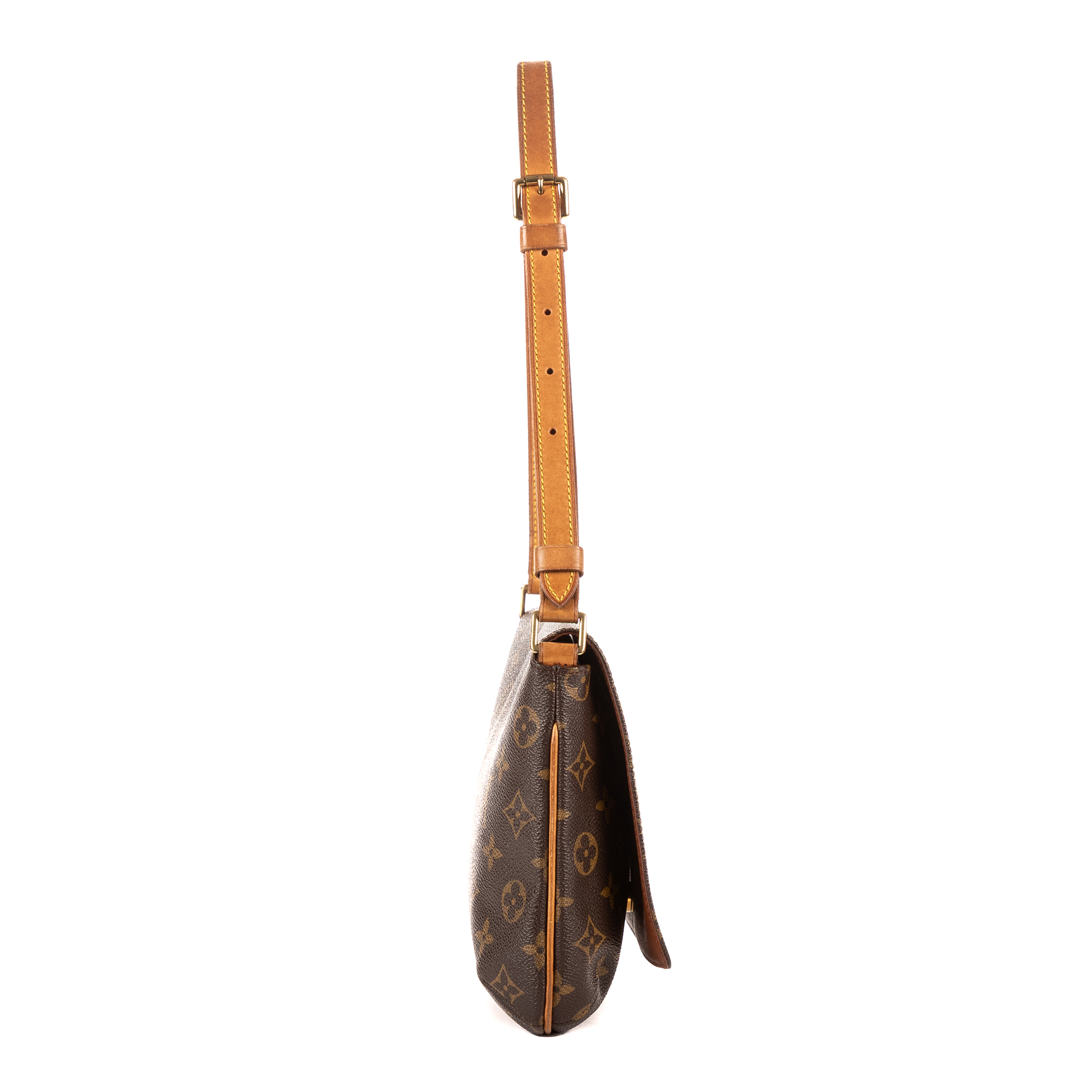 Louis Vuitton Crossbody Musette Tango in Brown Monogram Canvas and Golden Brass hardware. The product is in Excellent Condition (A).