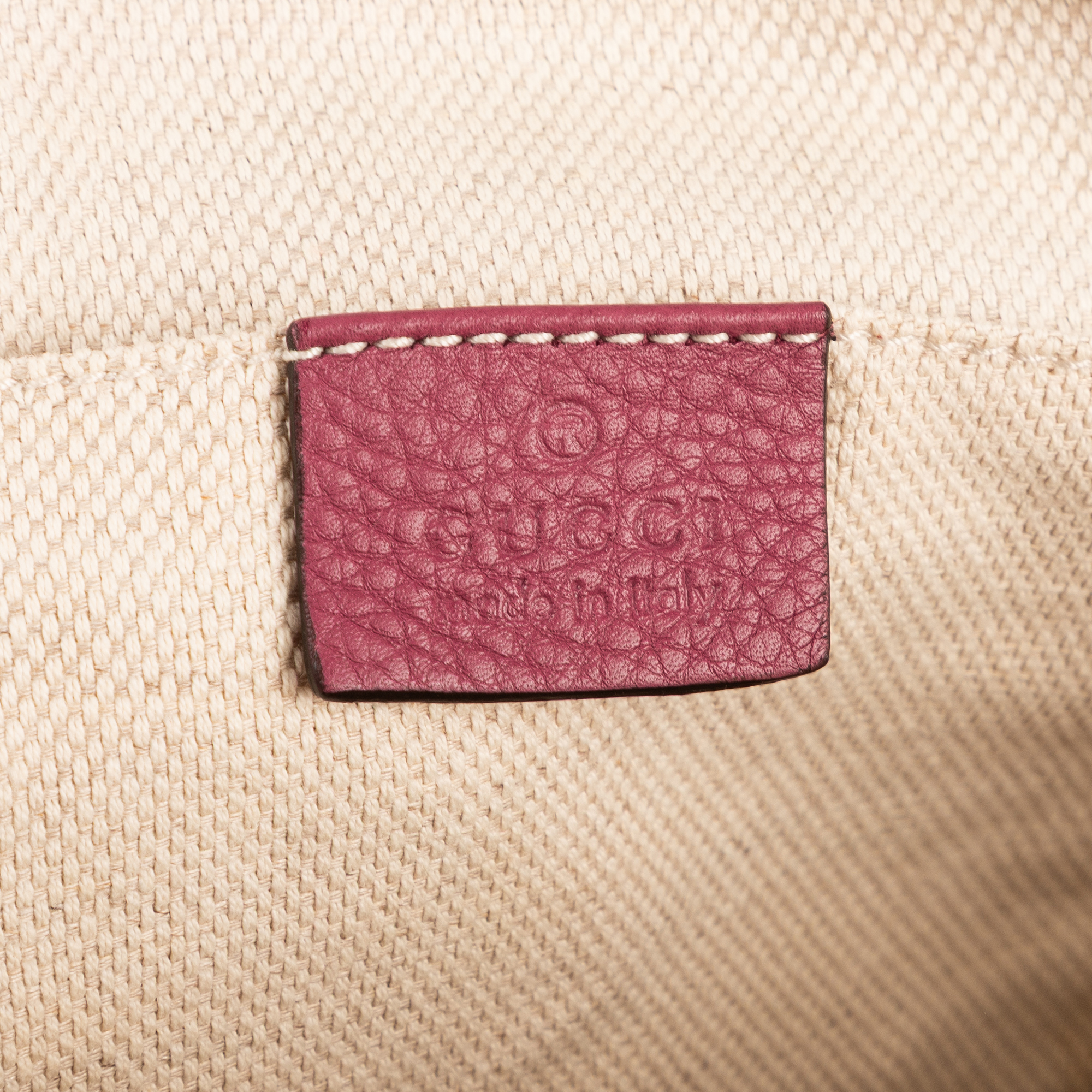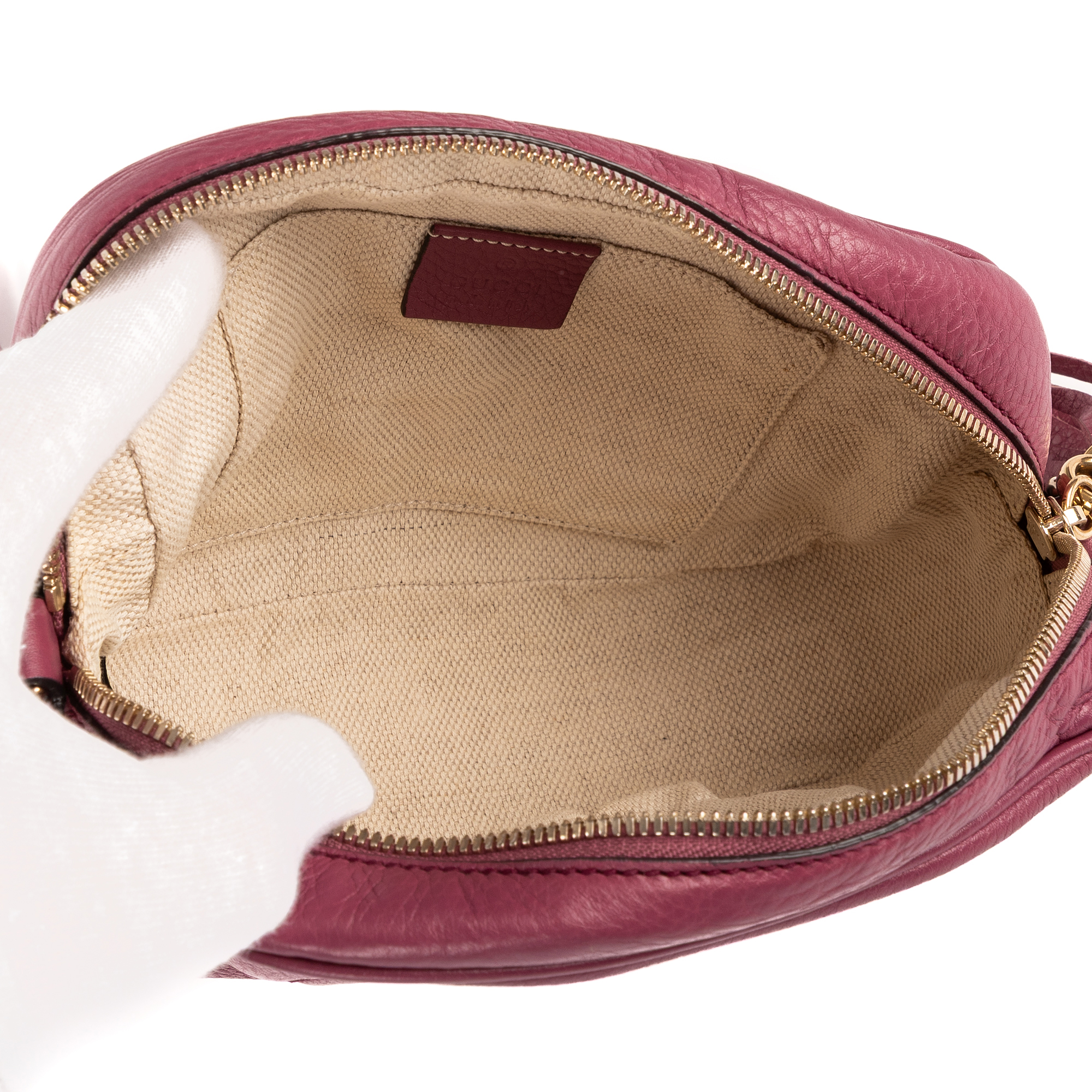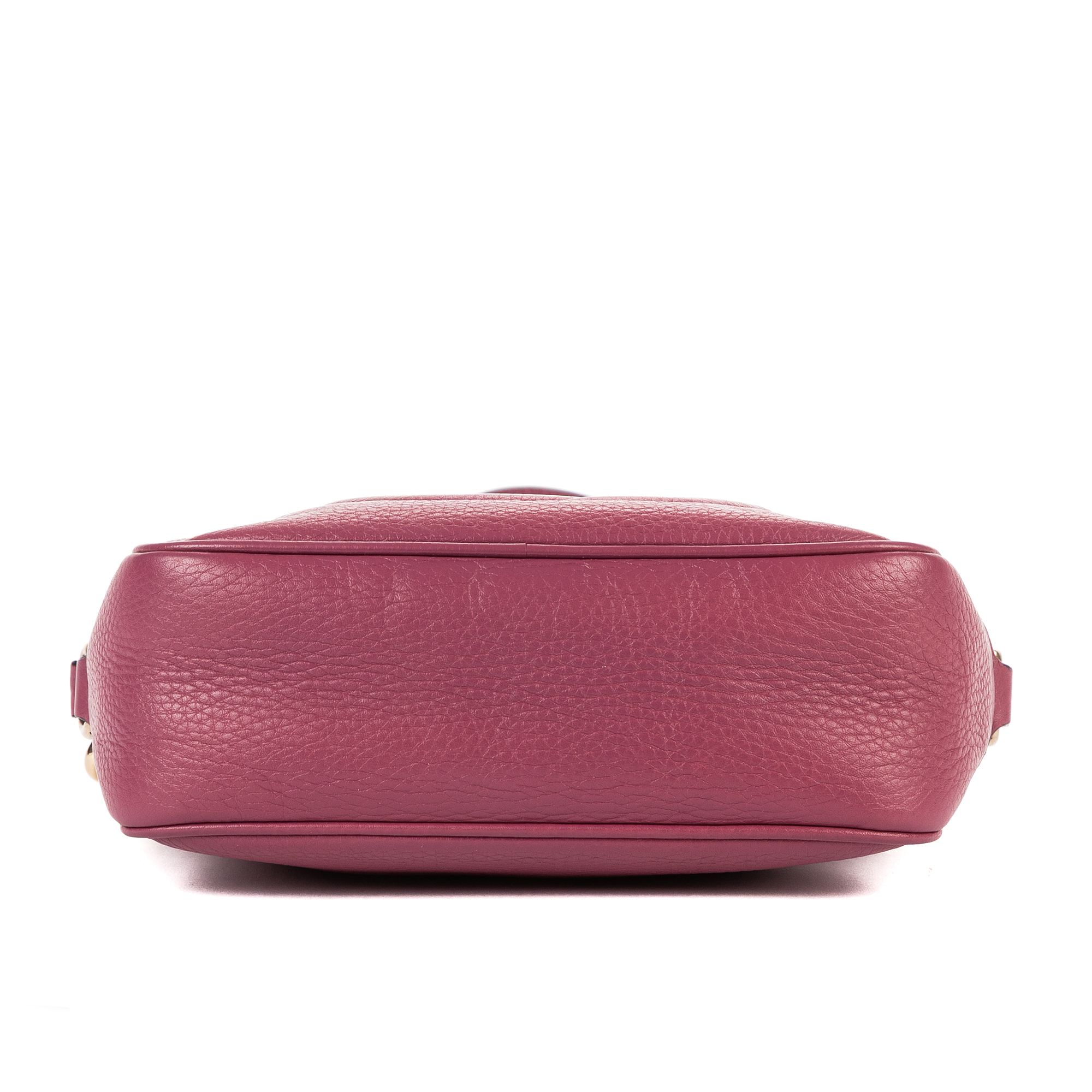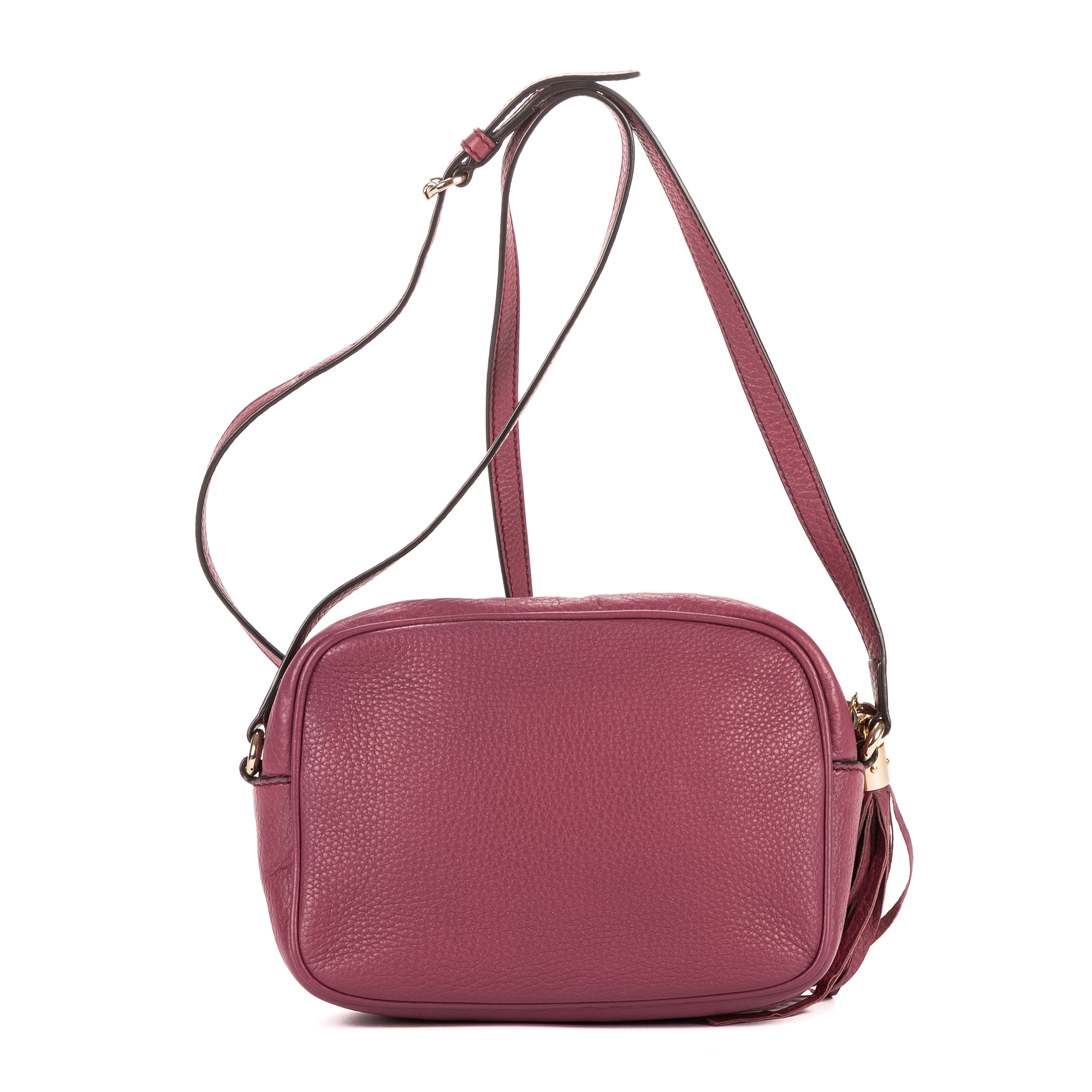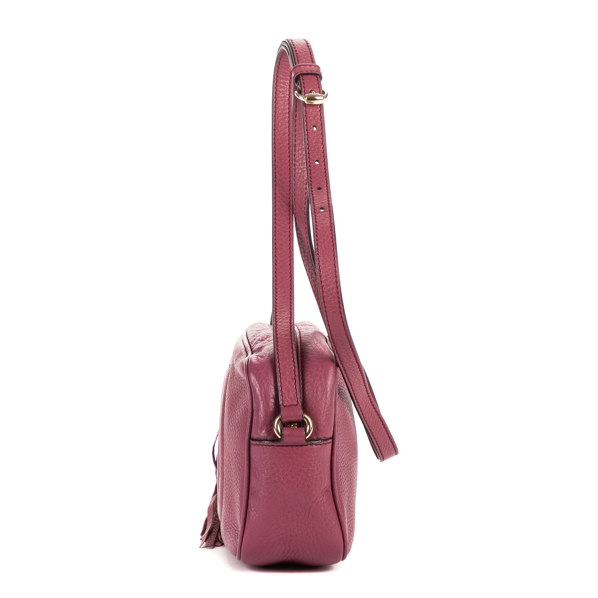 Gucci Crossbody Soho Medium in Berry Purple Pebbled Leather and Champagne Gold hardware. The product is in Excellent Condition (A).