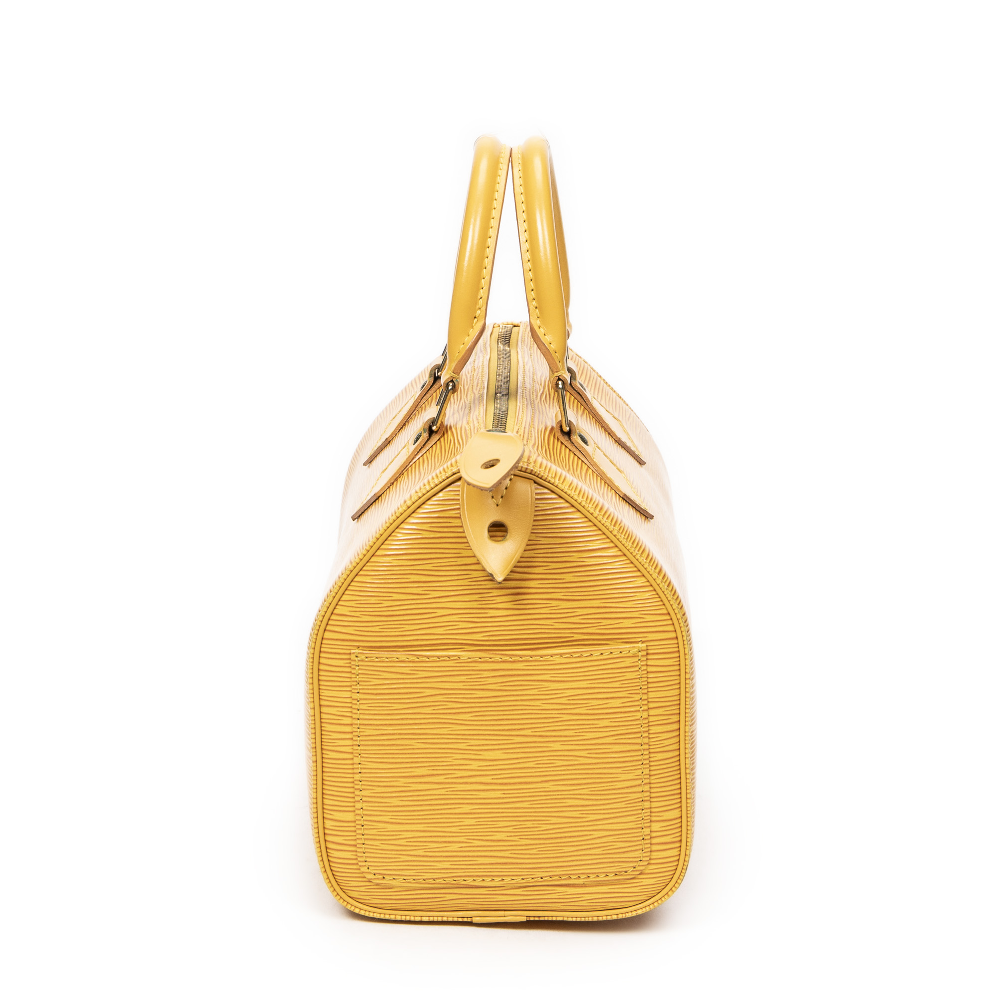 Louis Vuitton Handbag Speedy 25 in Yellow Epi and Golden Brass hardware. The product is in Very Good Condition (AB).
