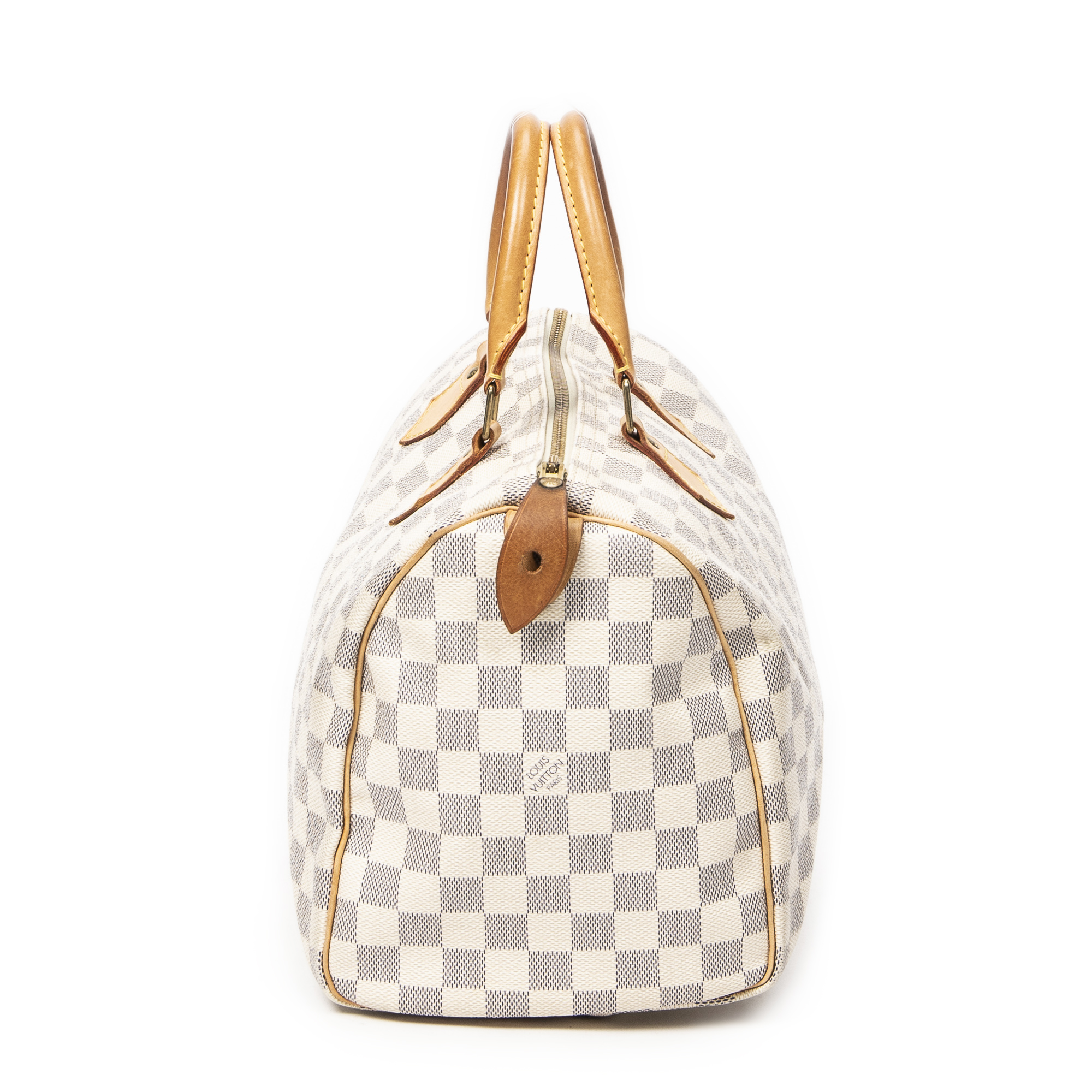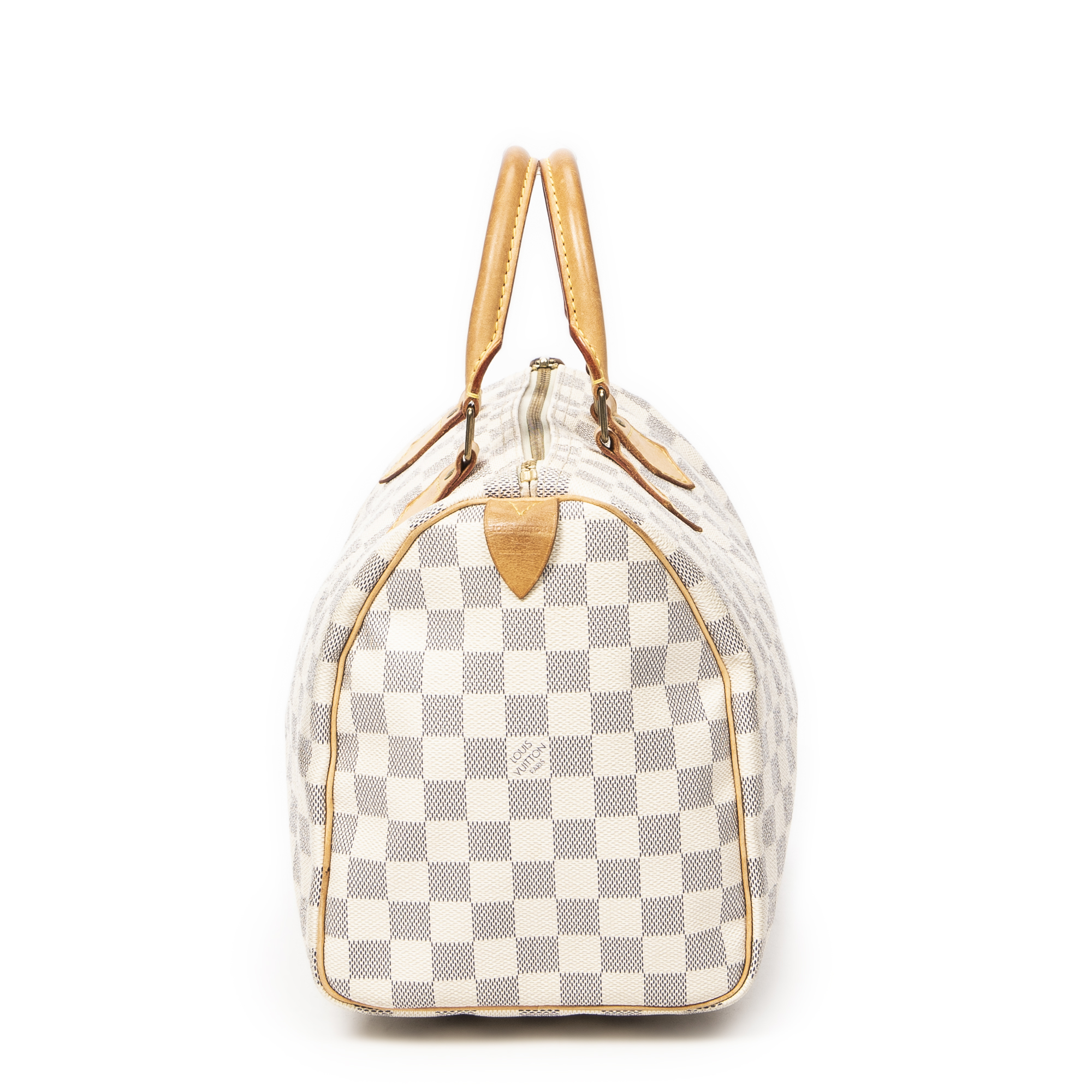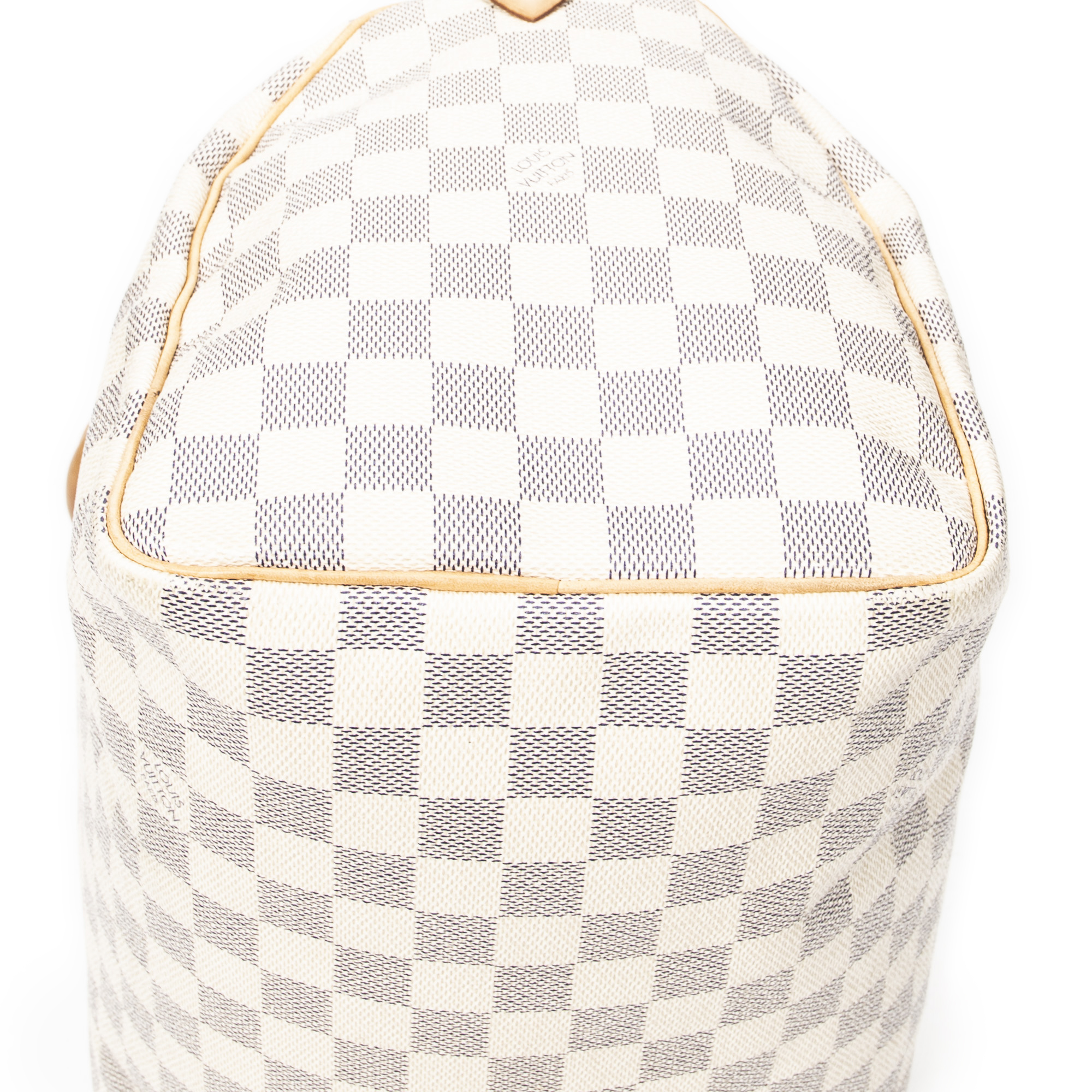 Louis Vuitton Handbag Speedy 30 in Ivory Damier Azur and Golden Brass hardware. The product is in Very Good Condition (AB).