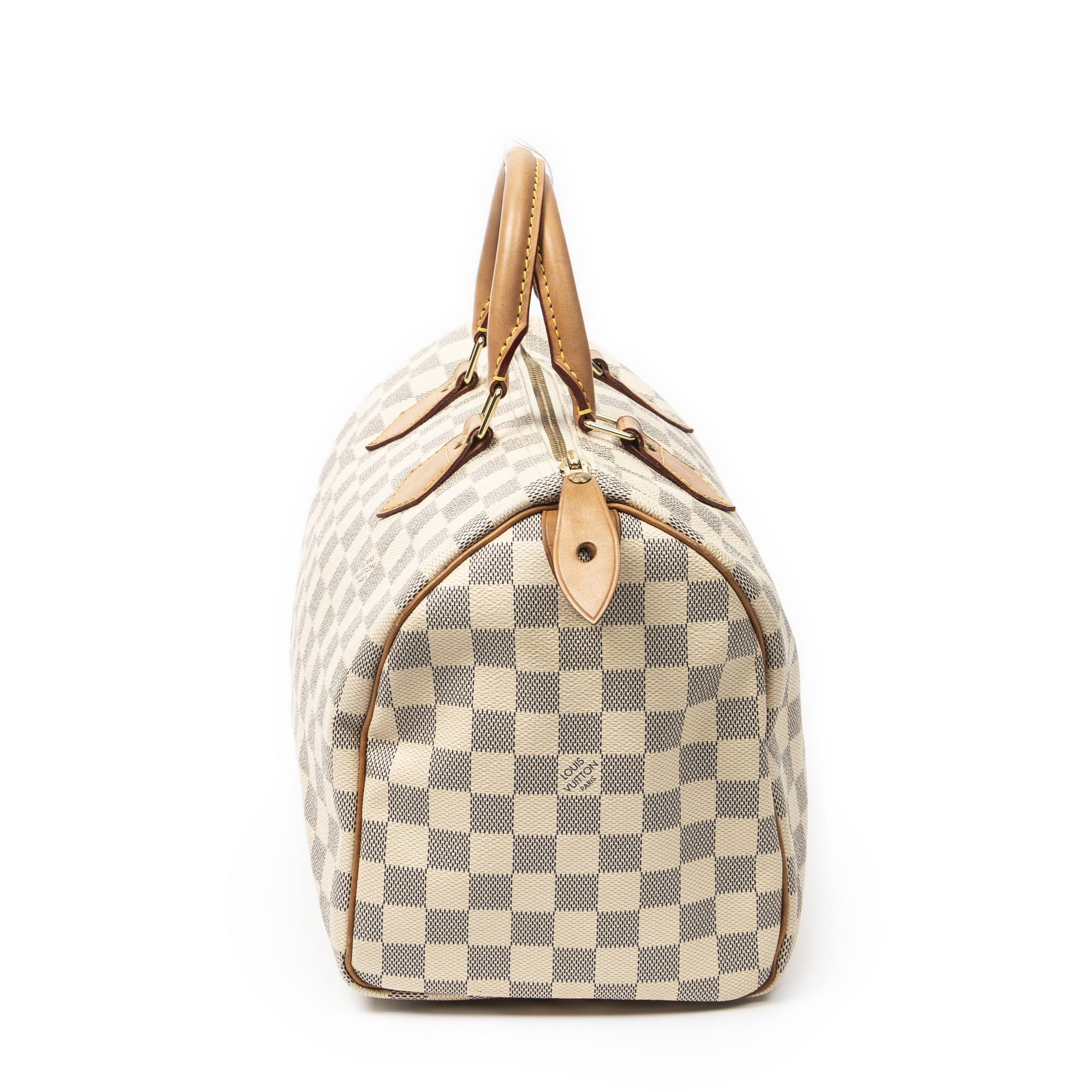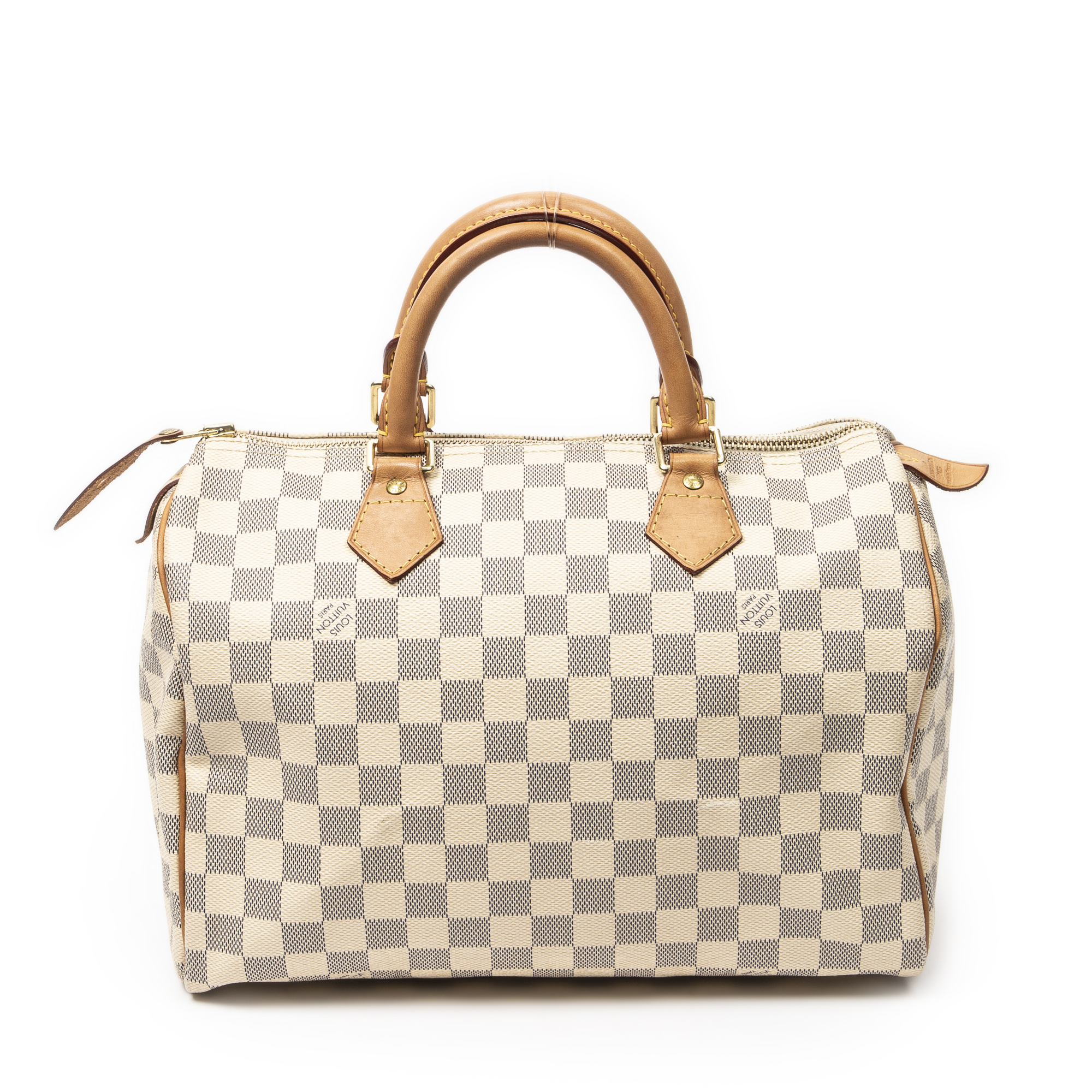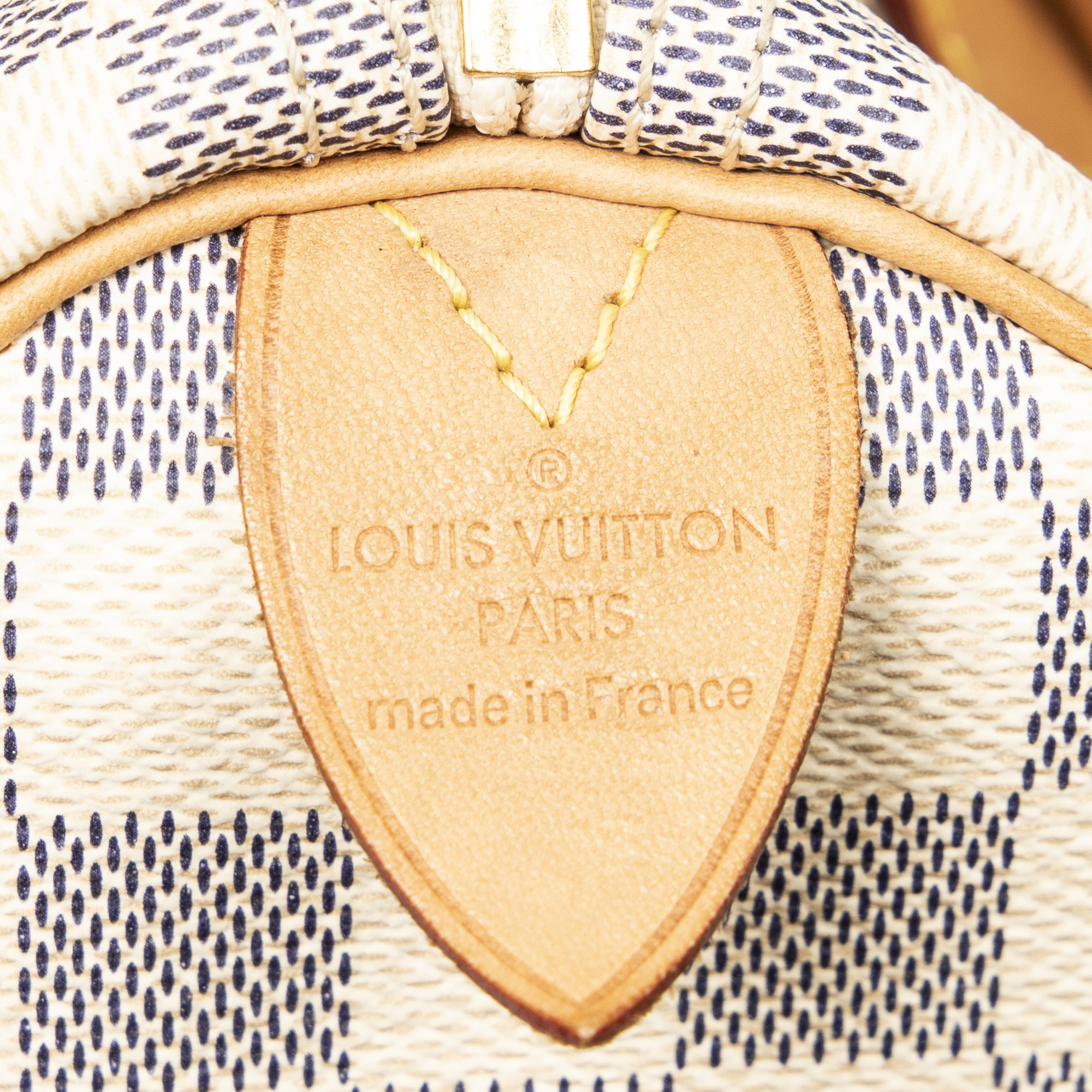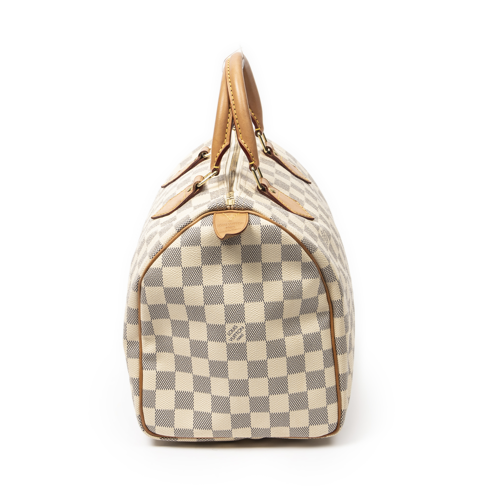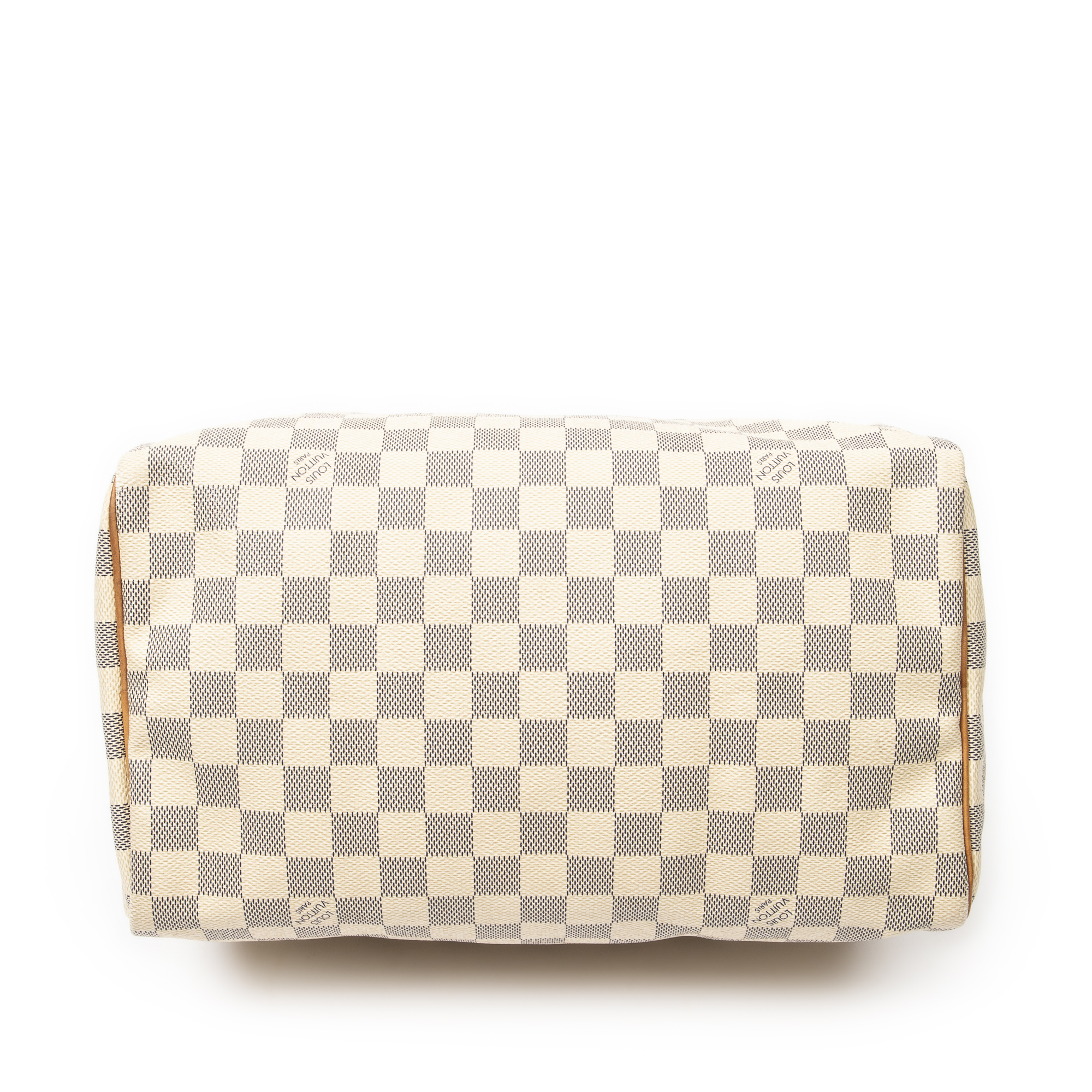 Louis Vuitton Handbag Speedy 30 in Ivory Damier Azur and Golden Brass hardware. The product is in Very Good Condition (AB).