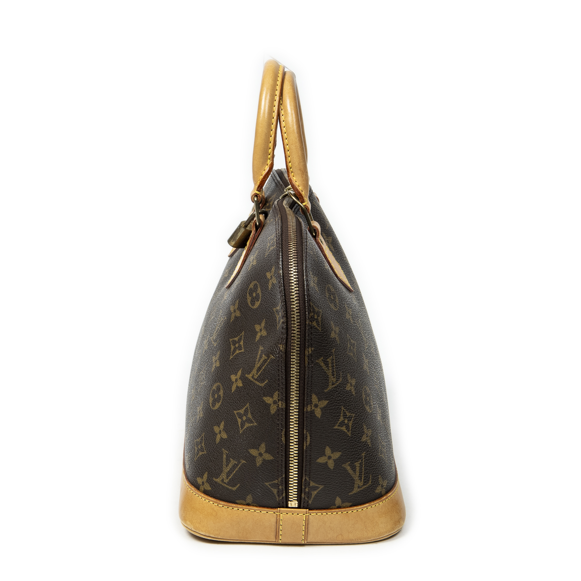 Louis Vuitton Handbag Alma PM in Brown Monogram Canvas and Golden Brass hardware. The product is in Very Good Condition (AB).