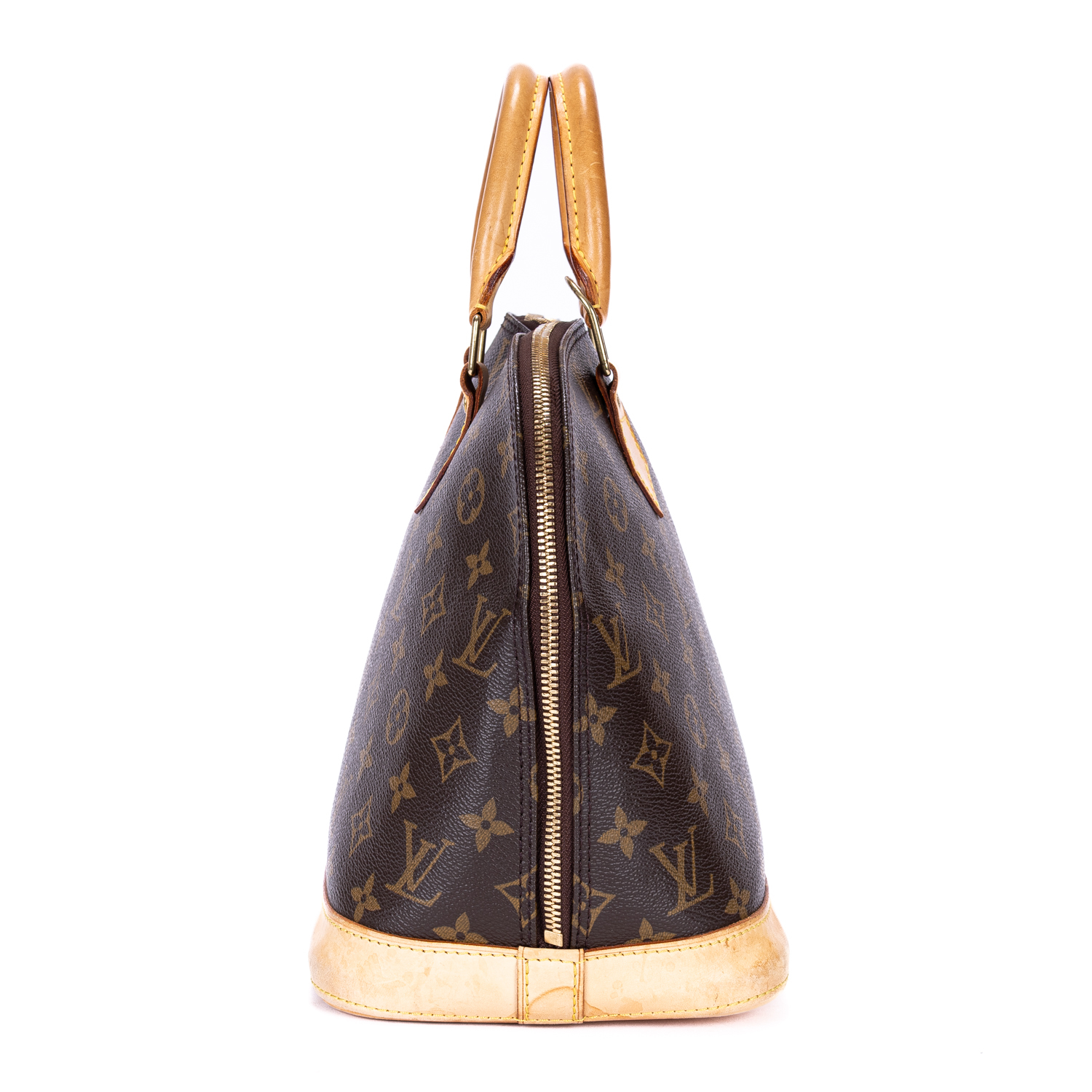 Louis Vuitton Handbag Alma PM in Brown Monogram Canvas and Golden Brass hardware. The product is in Very Good Condition (AB).