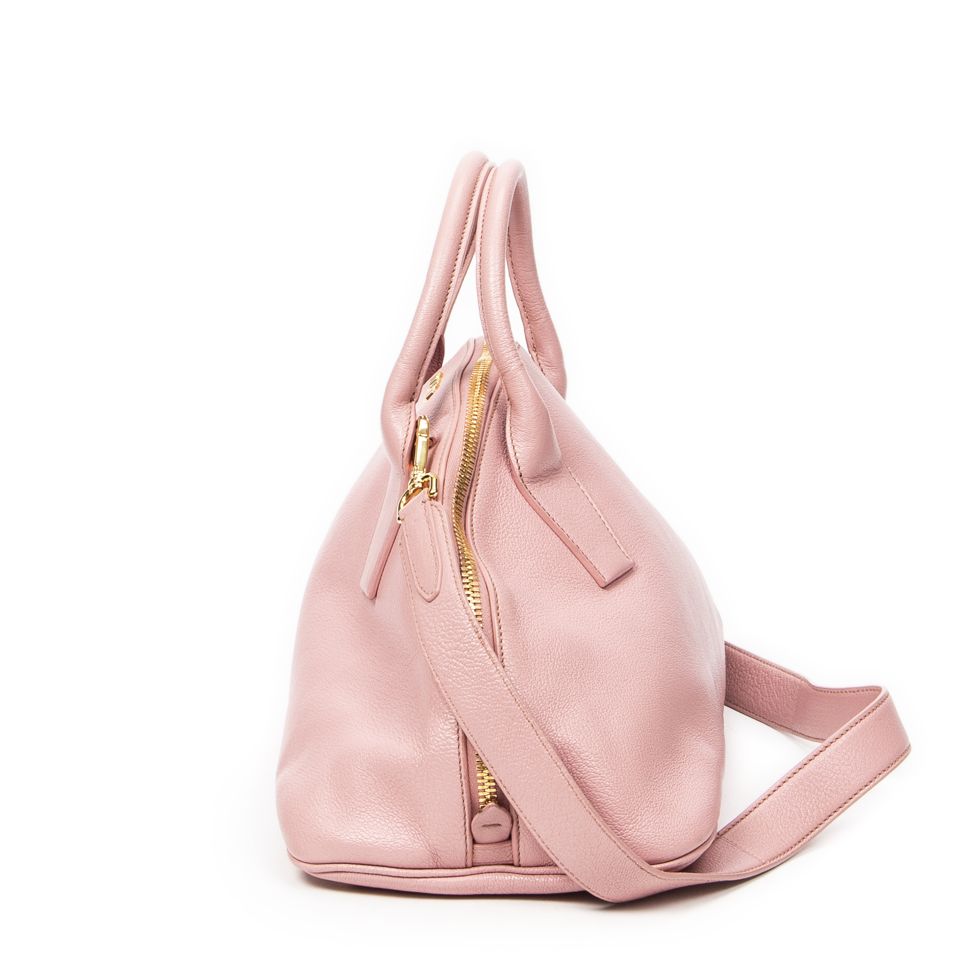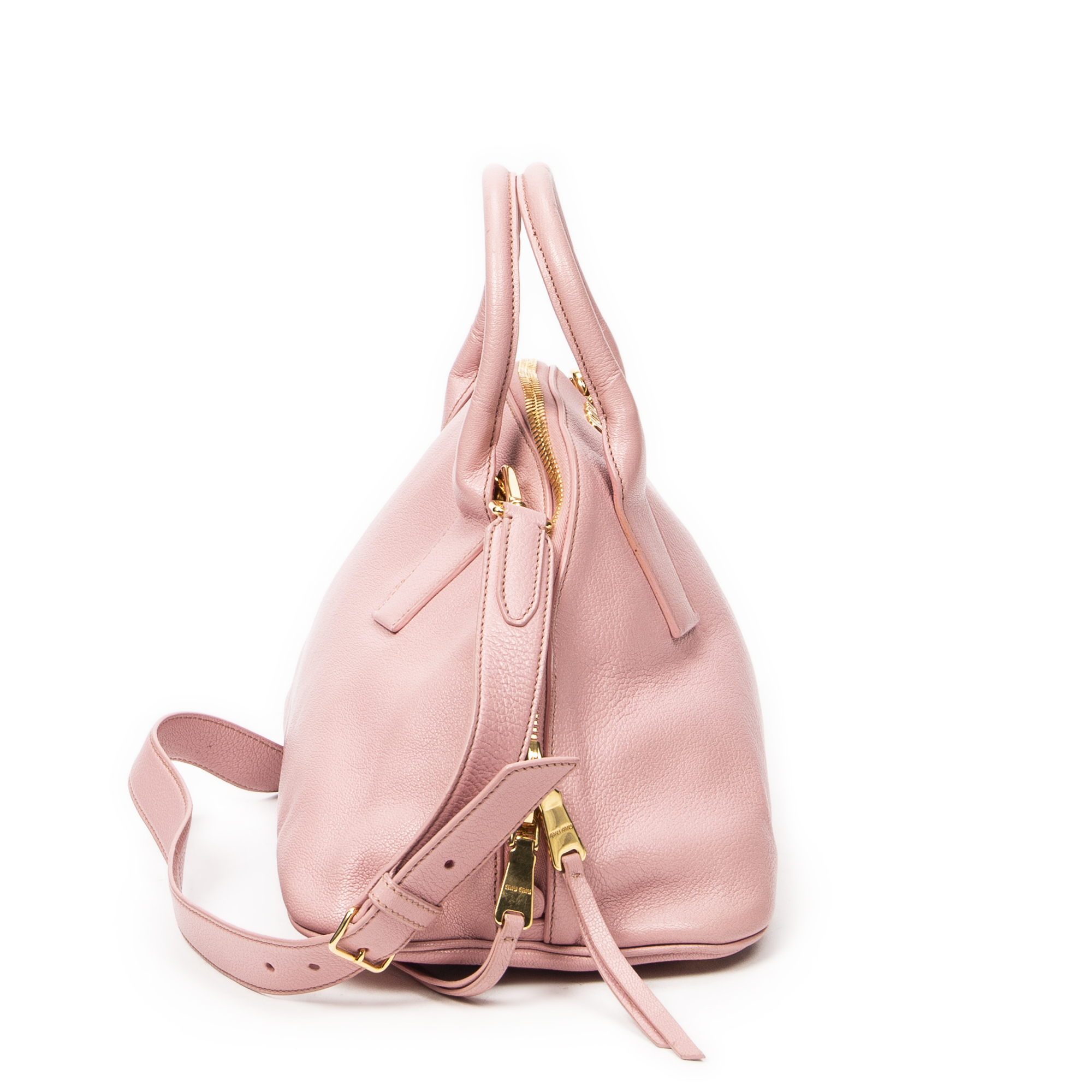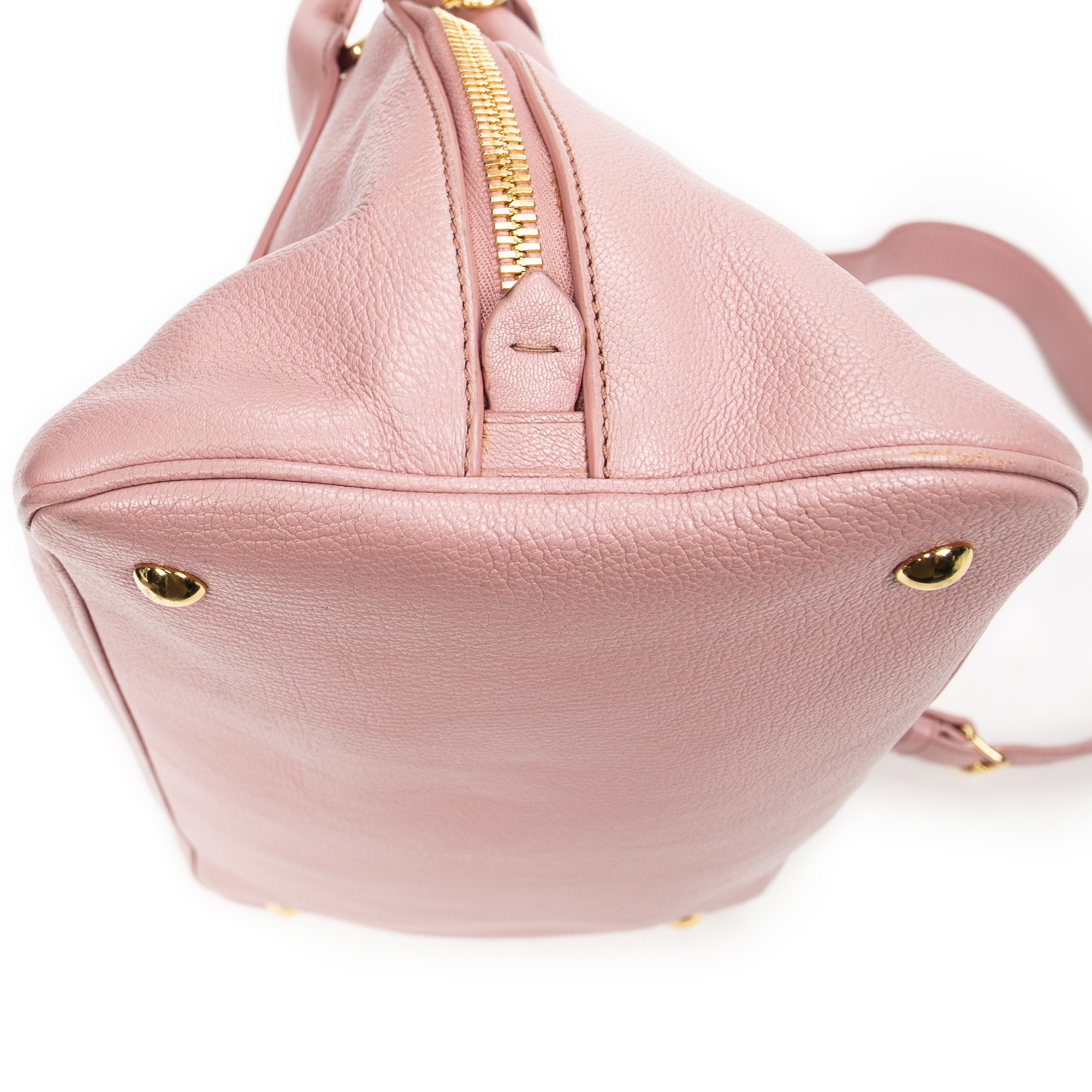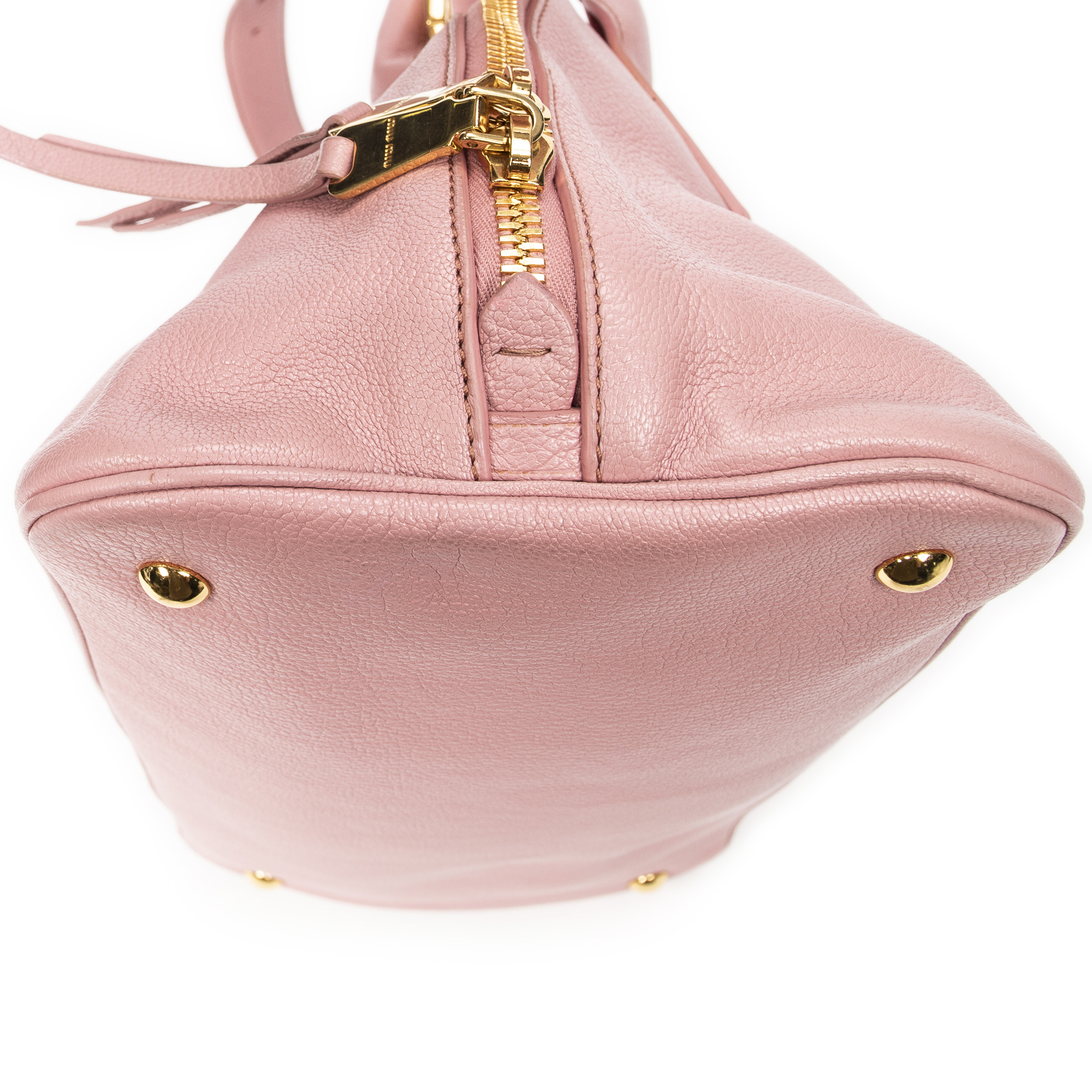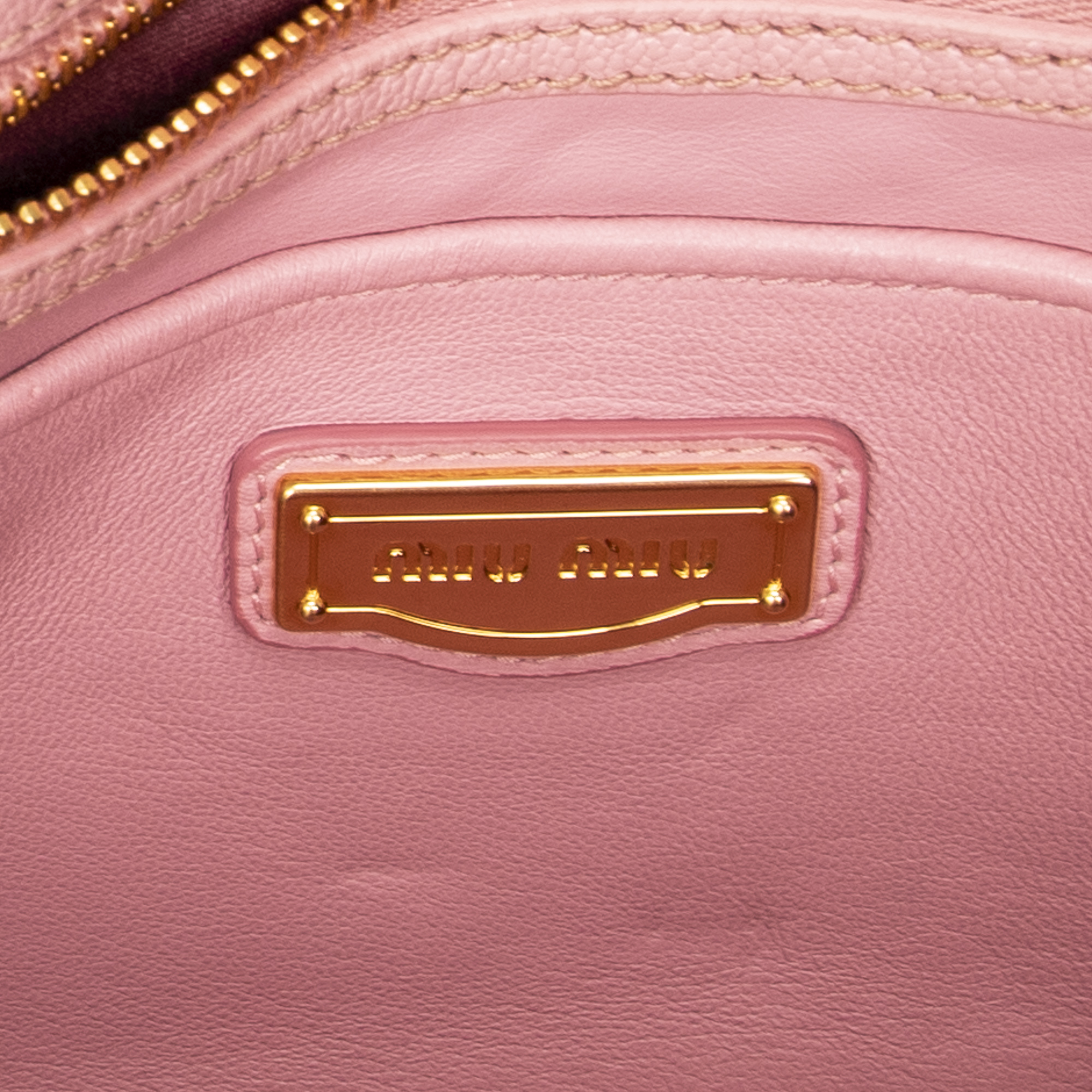 Miu Miu Handbag Bauletto Top Handle Tote in Pink Madras Leather and Gold hardware. The product is in Excellent Condition (A).