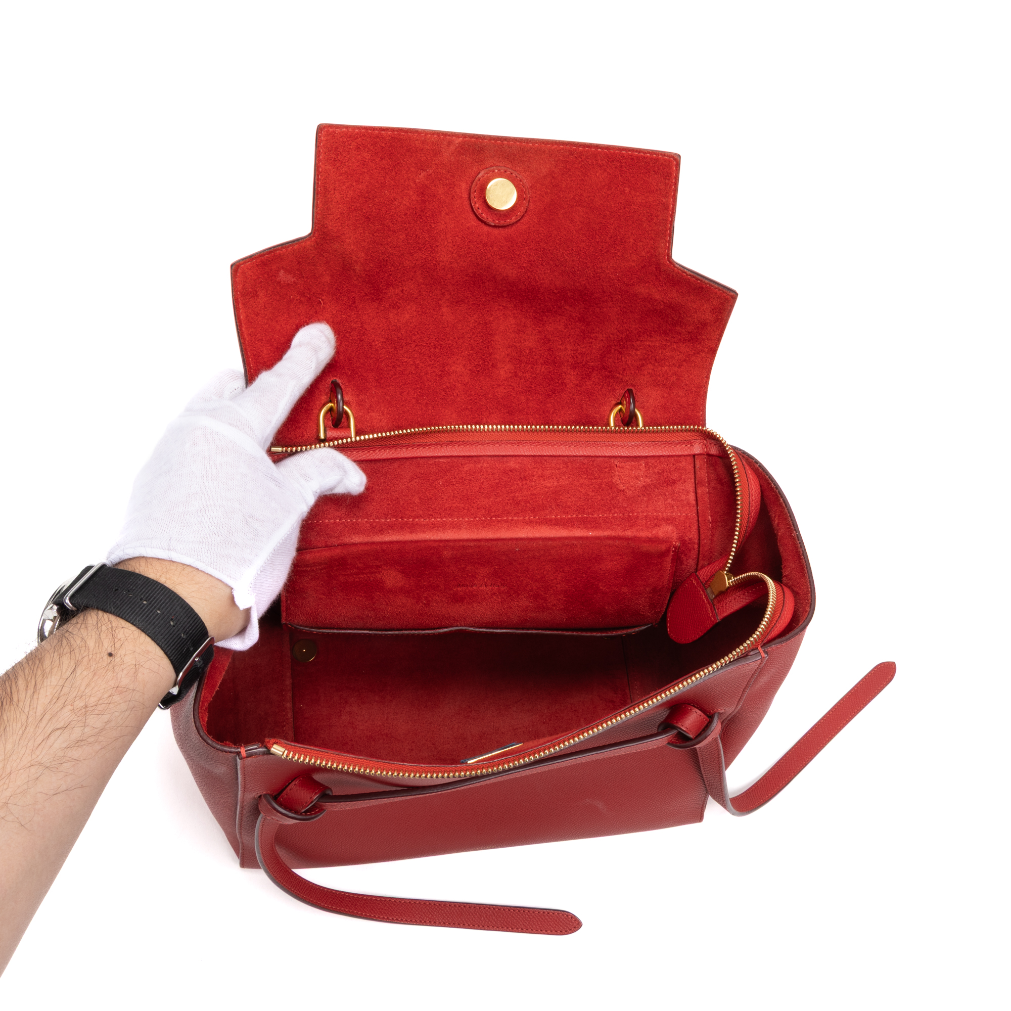 Celine Handbag Belt Bag Mini in Red Textured Leather and Gold hardware. The product is in Excellent Condition (A).
