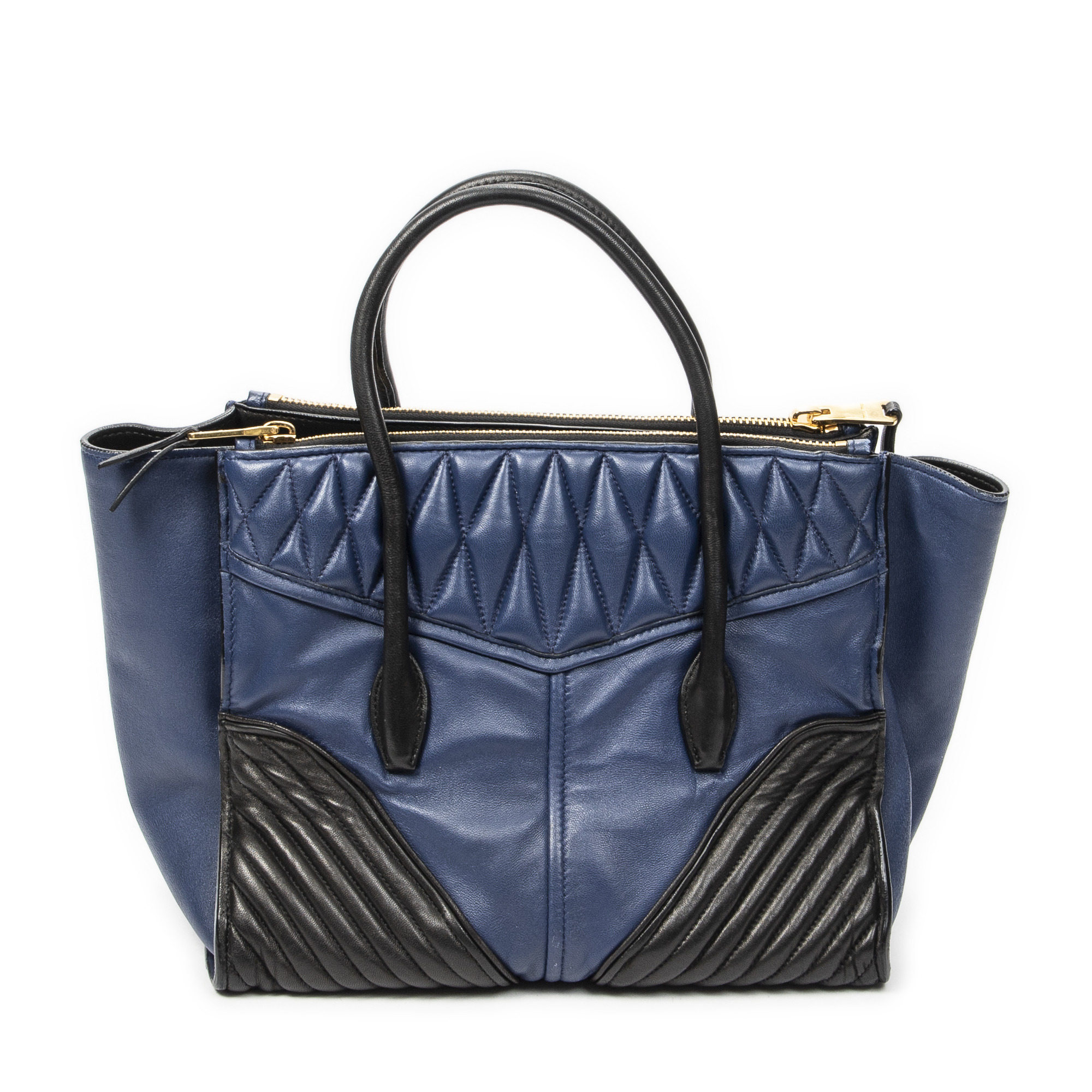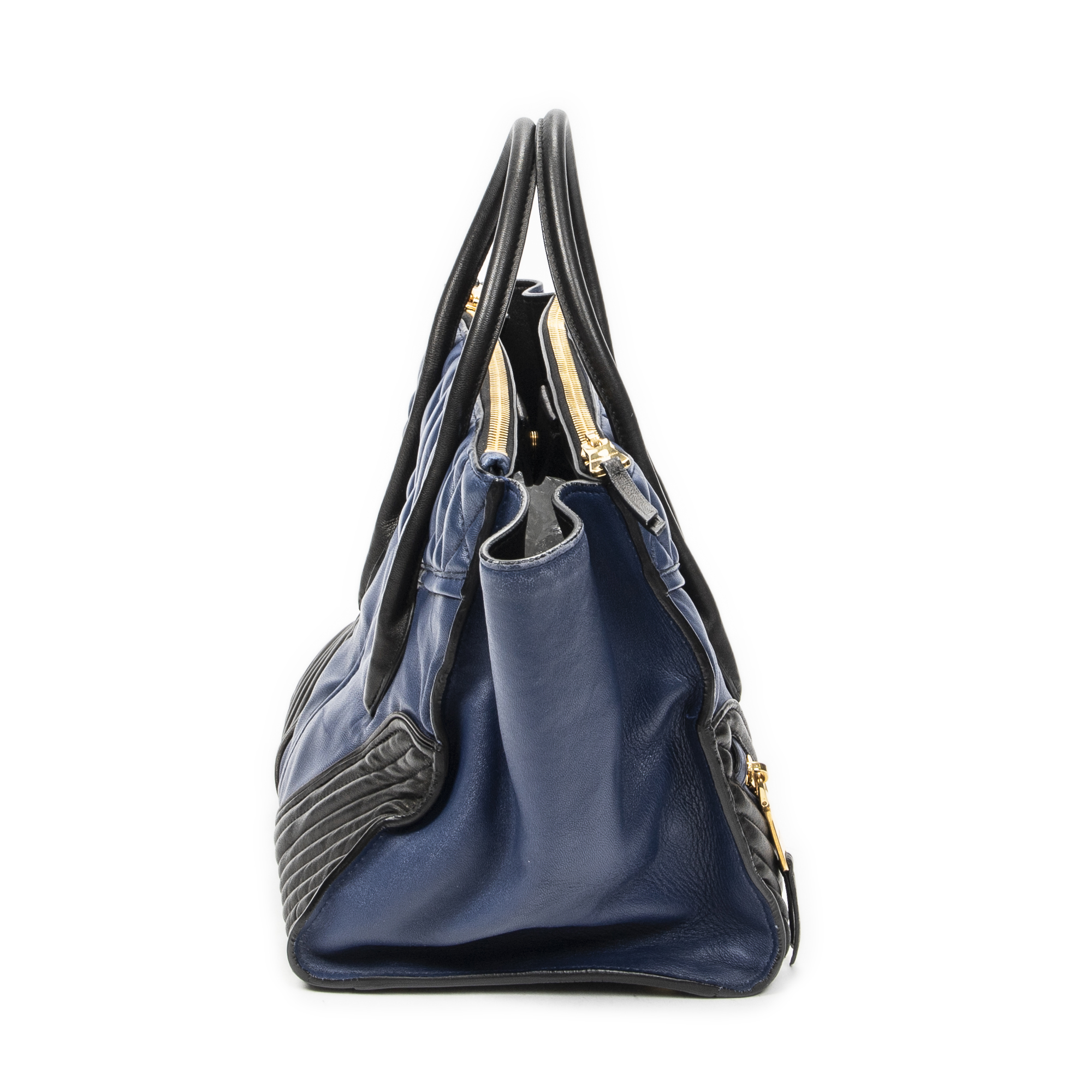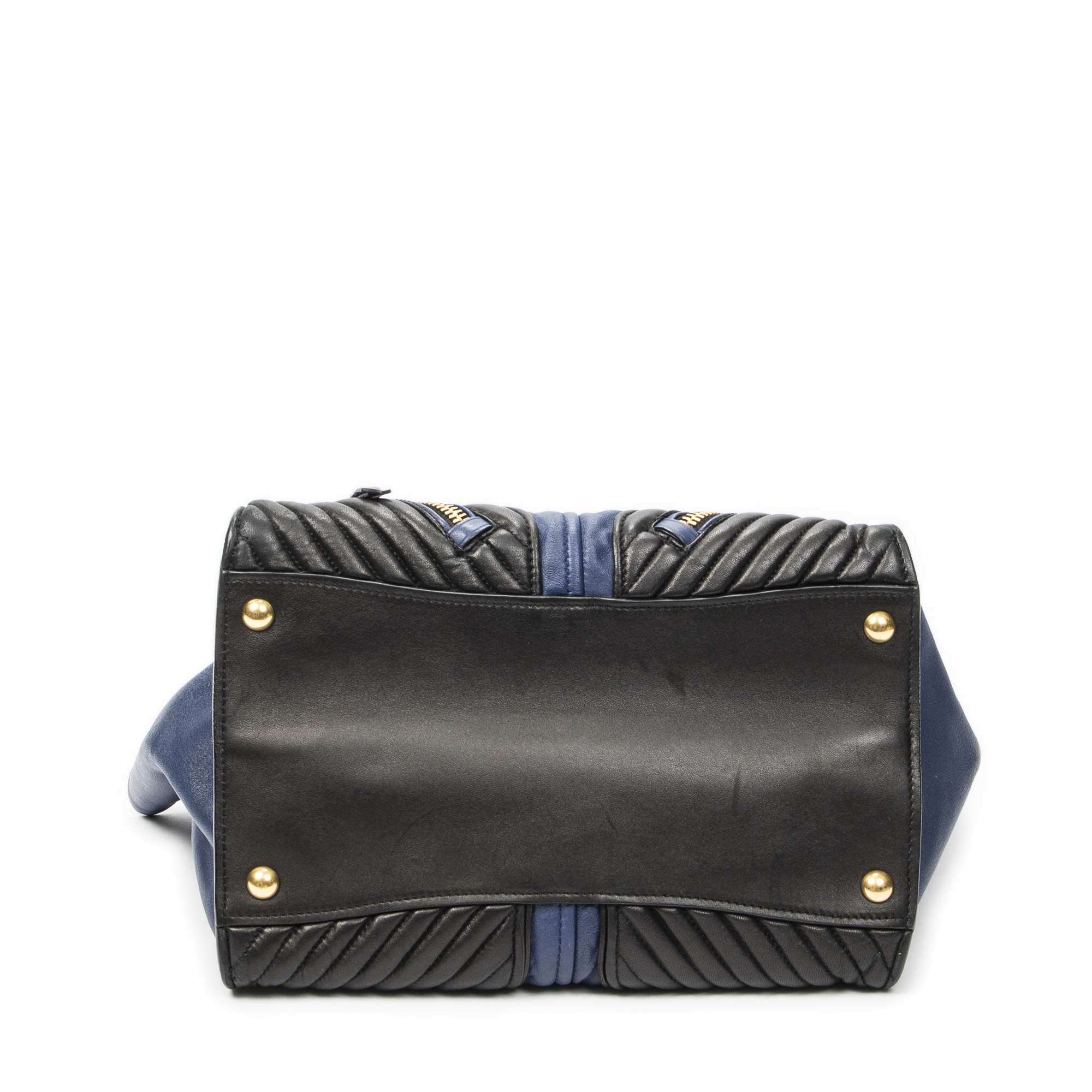 Miu Miu Handbag Biker Convertible Tote in Navy/Black Nappa Matelasse Leather and Gold hardware. The product is in Excellent Condition (A).