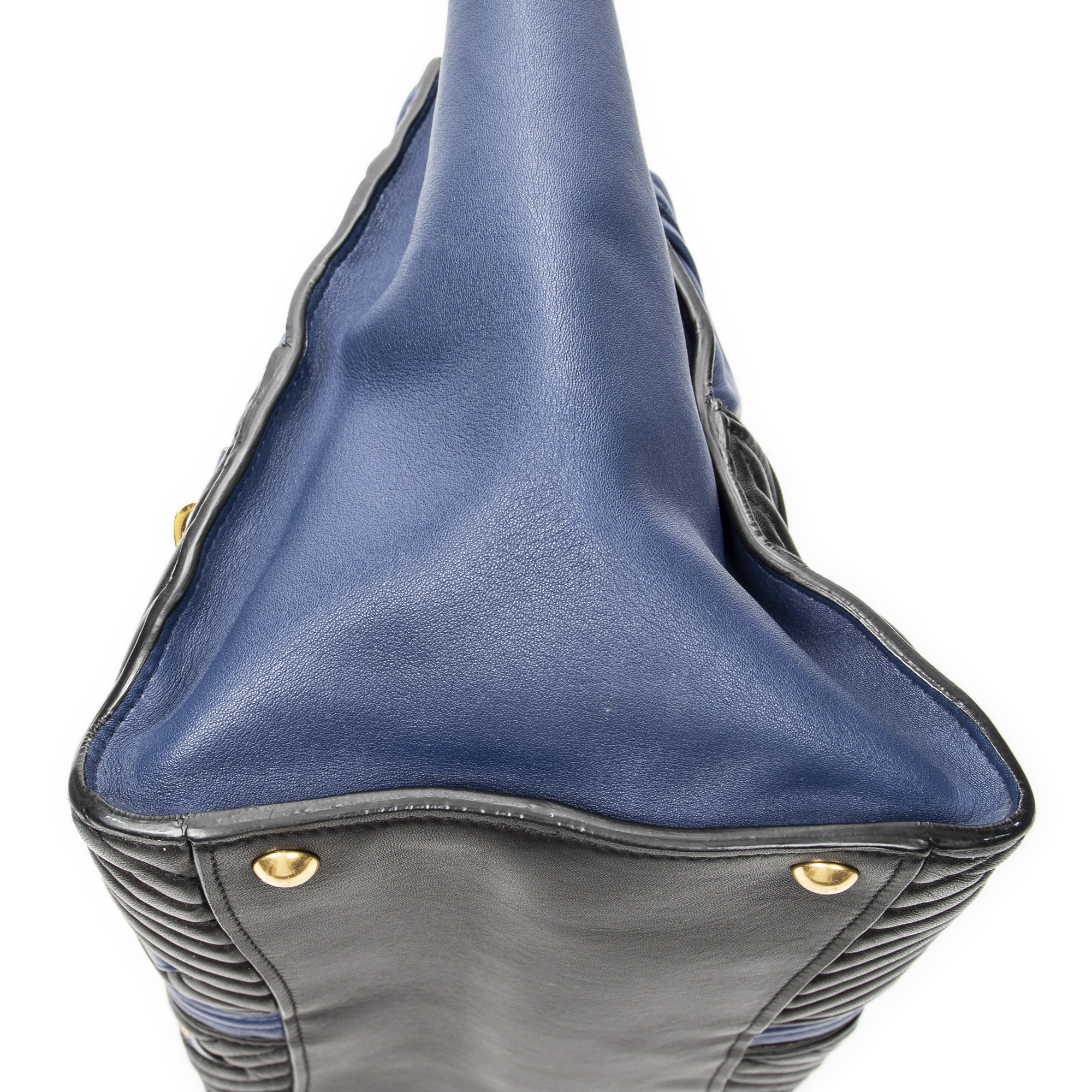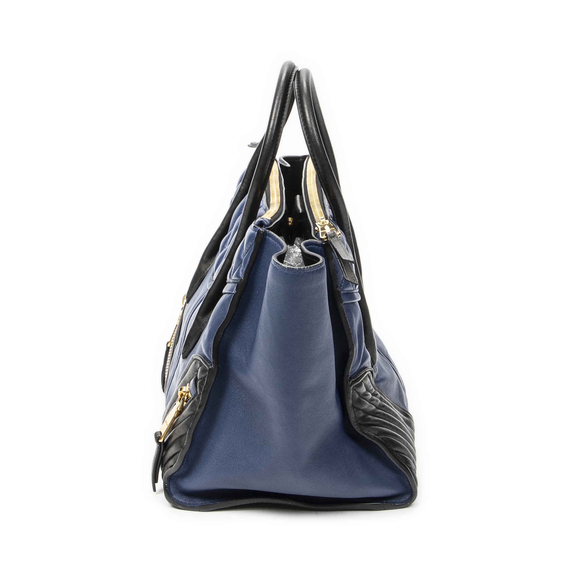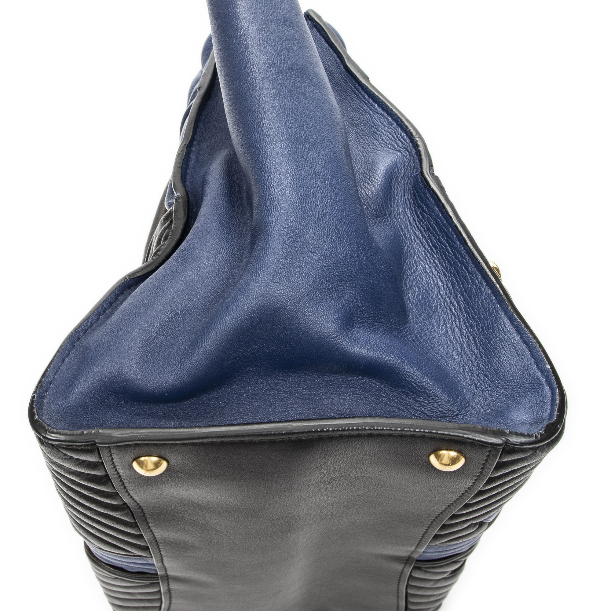 Miu Miu Handbag Biker Convertible Tote in Navy/Black Nappa Matelasse Leather and Gold hardware. The product is in Excellent Condition (A).