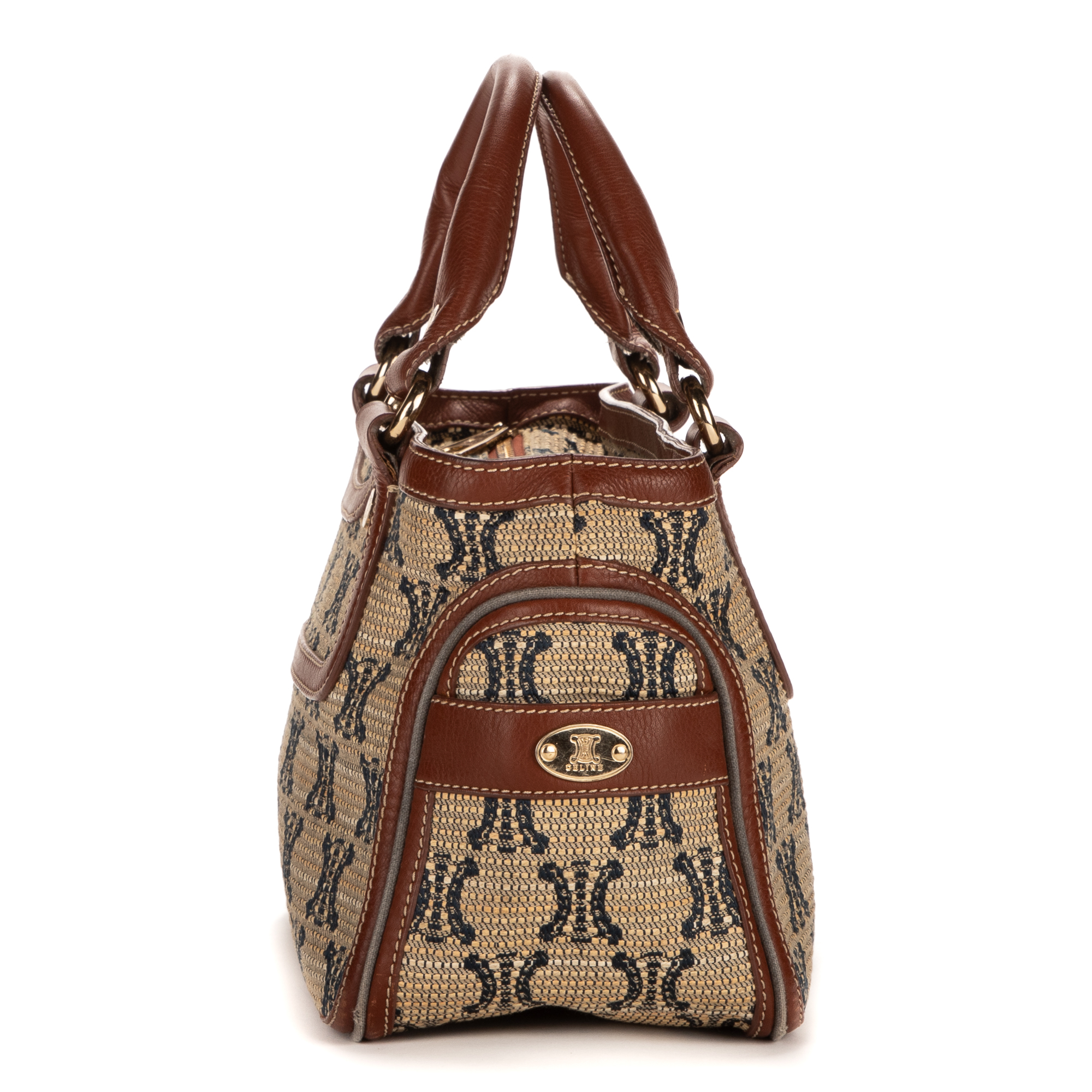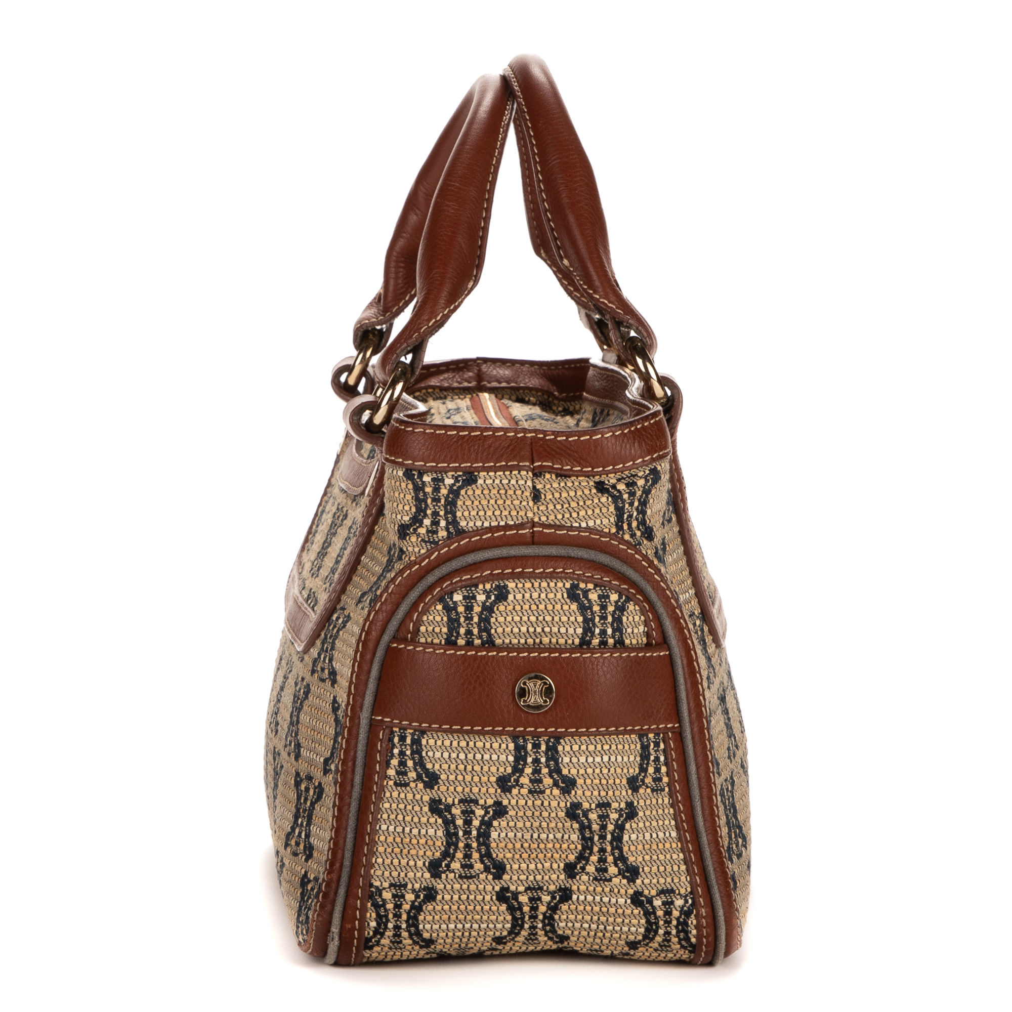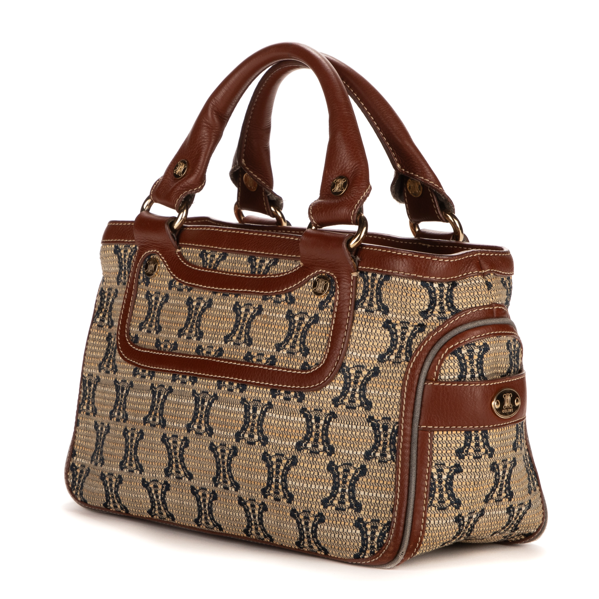 Celine Handbag Boogie in Brown Fabric Canvas and Gold hardware. The product is in Excellent Condition (A).
