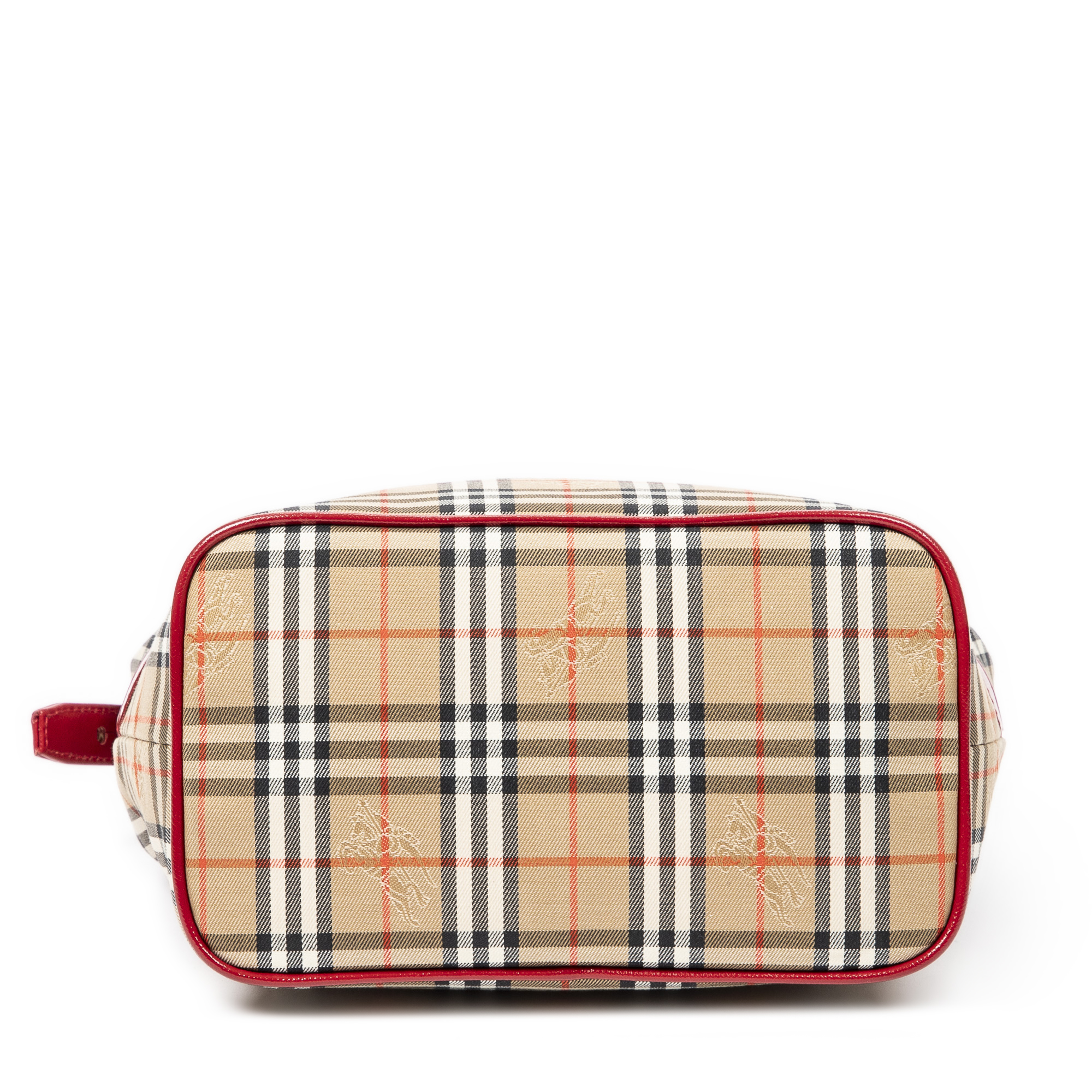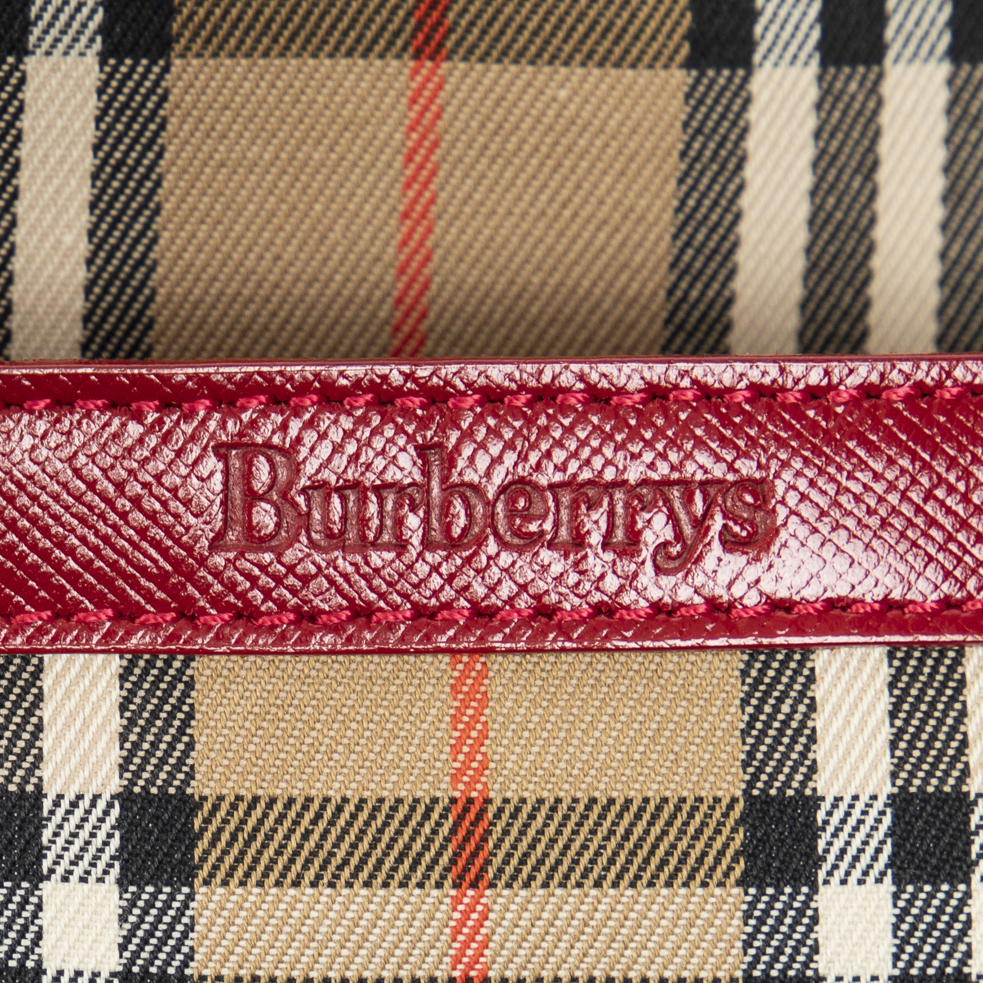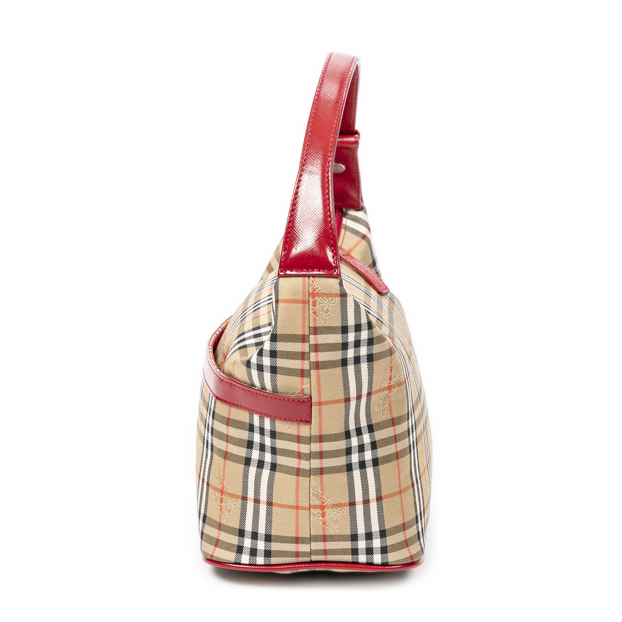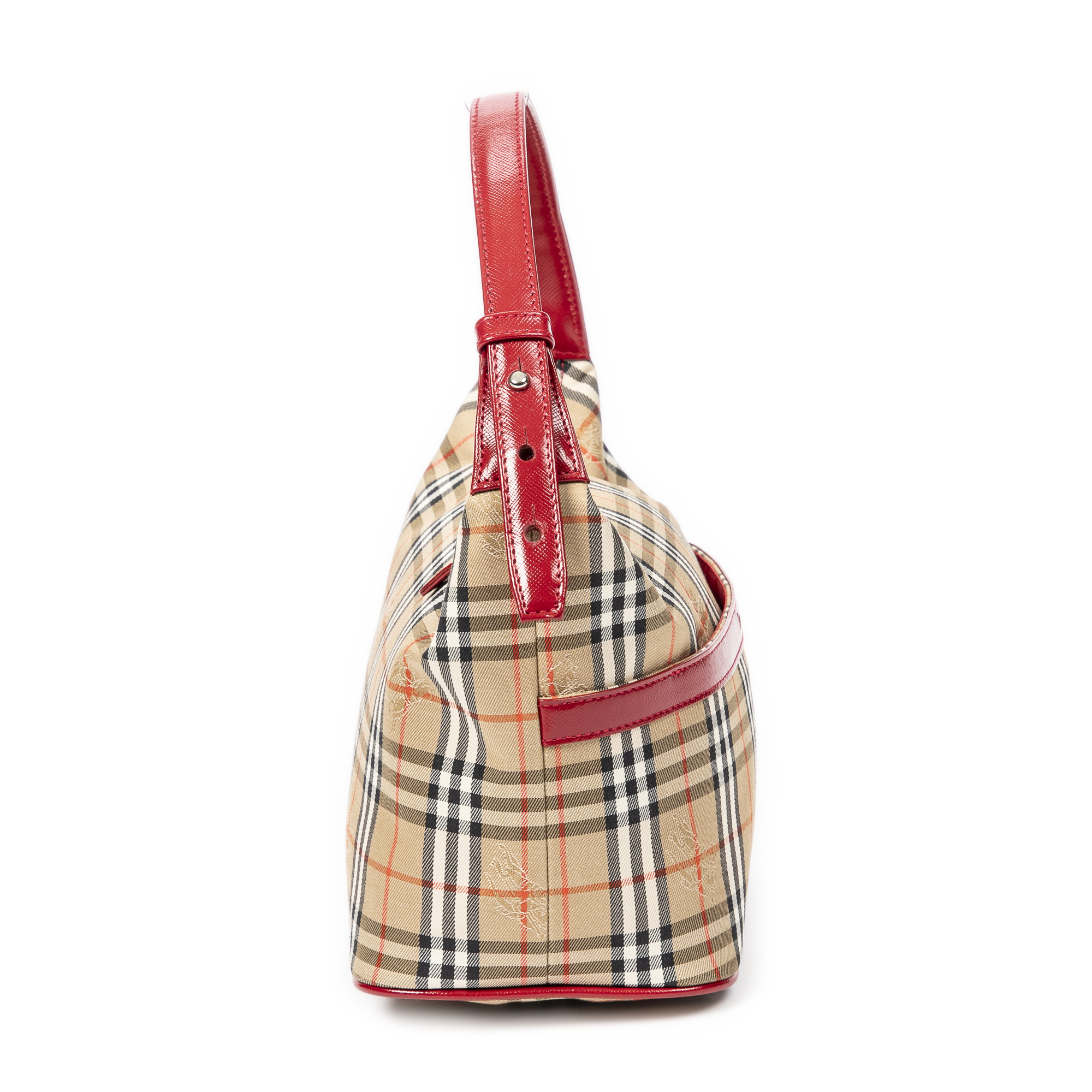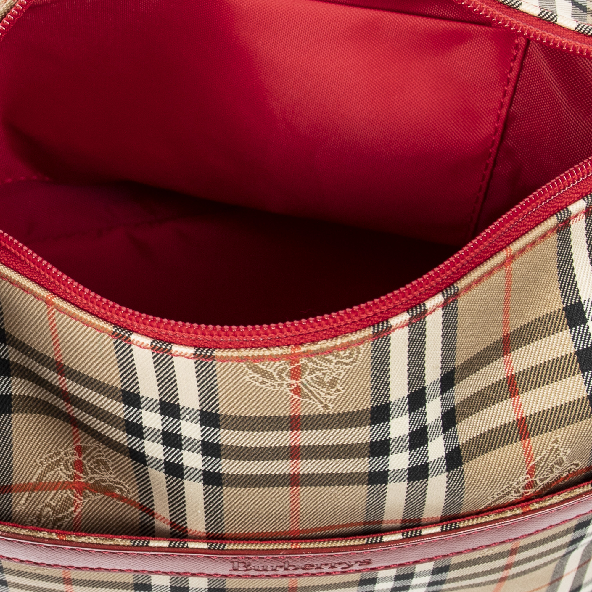 Burberry Handbag Burberrys Front Pocket Hobo in Beige/Red Haymarket Check Canvas and Silver hardware. The product is in Excellent Condition (A).