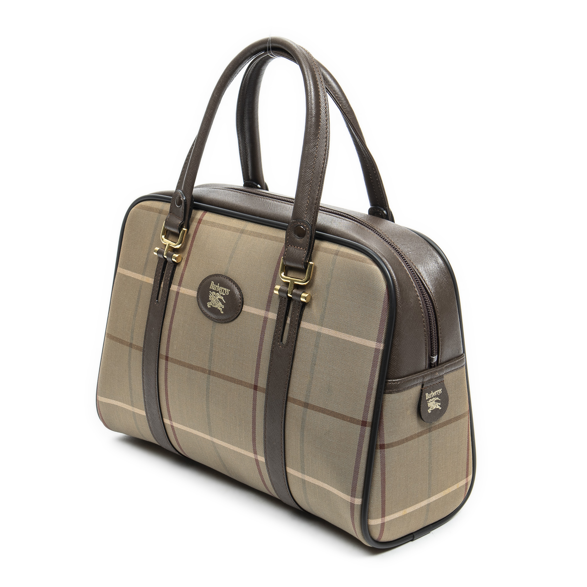 Burberry Handbag Burberrys Small Boston in Green/Brown Vintage Check Canvas and Gold hardware. The product is in Excellent Condition (A).
