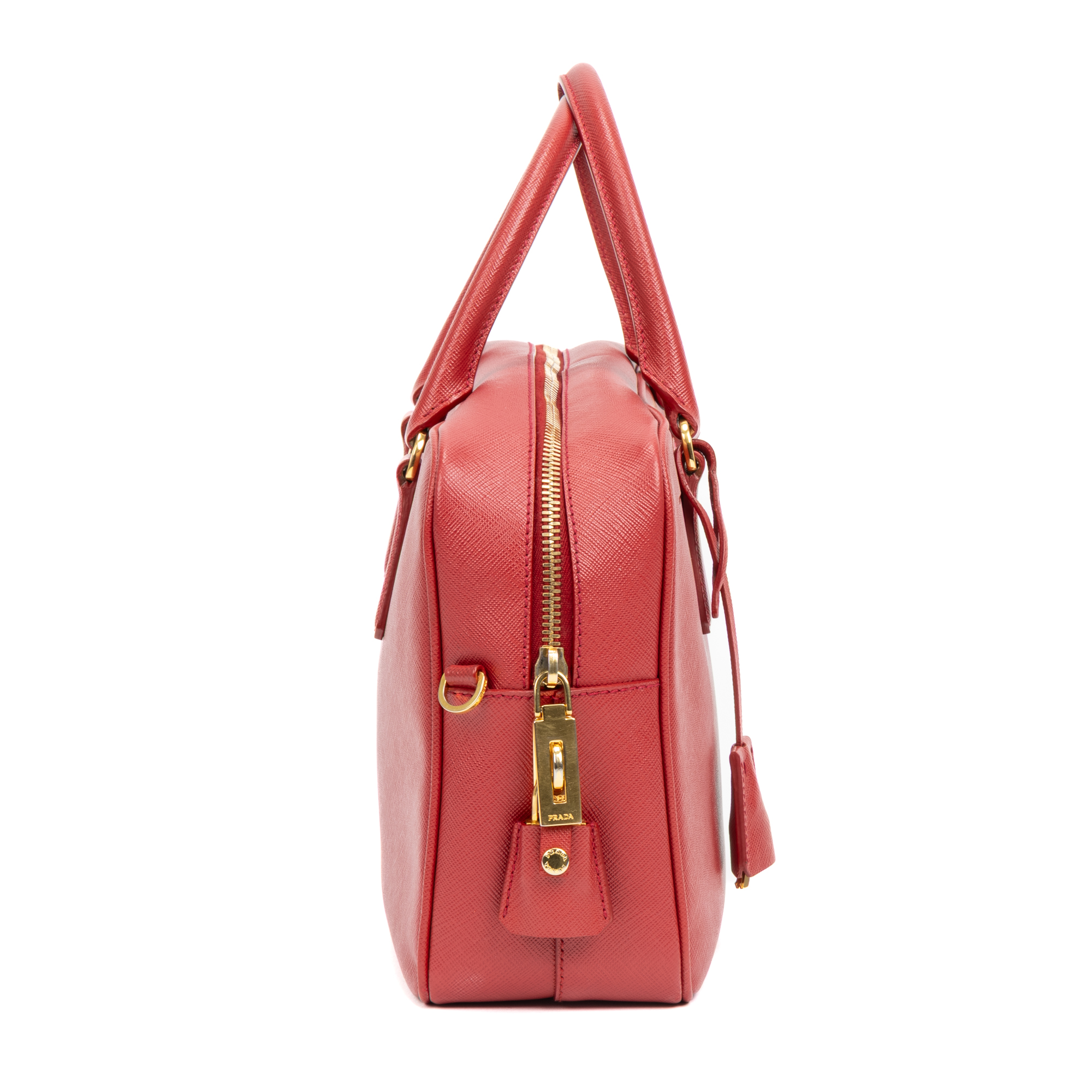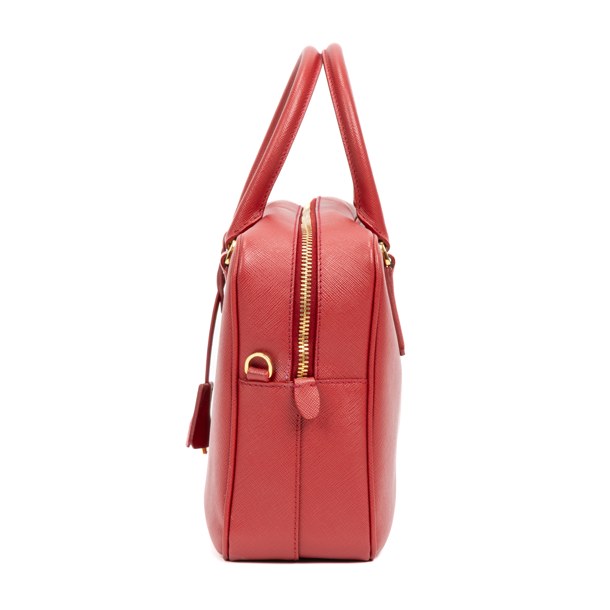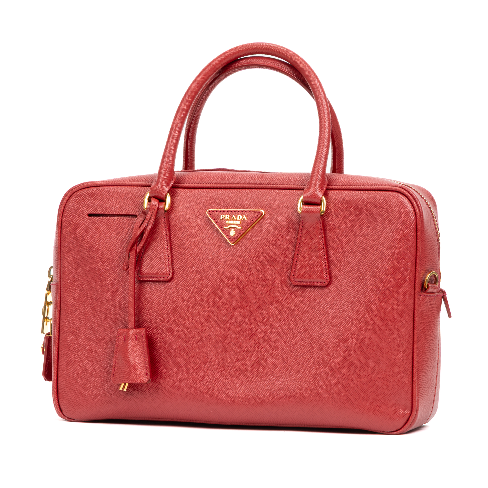 Prada Handbag Business Briefcase Medium in Red Saffiano Calfskin Leather and Gold hardware. The product is in Perfect Condition (AA).
