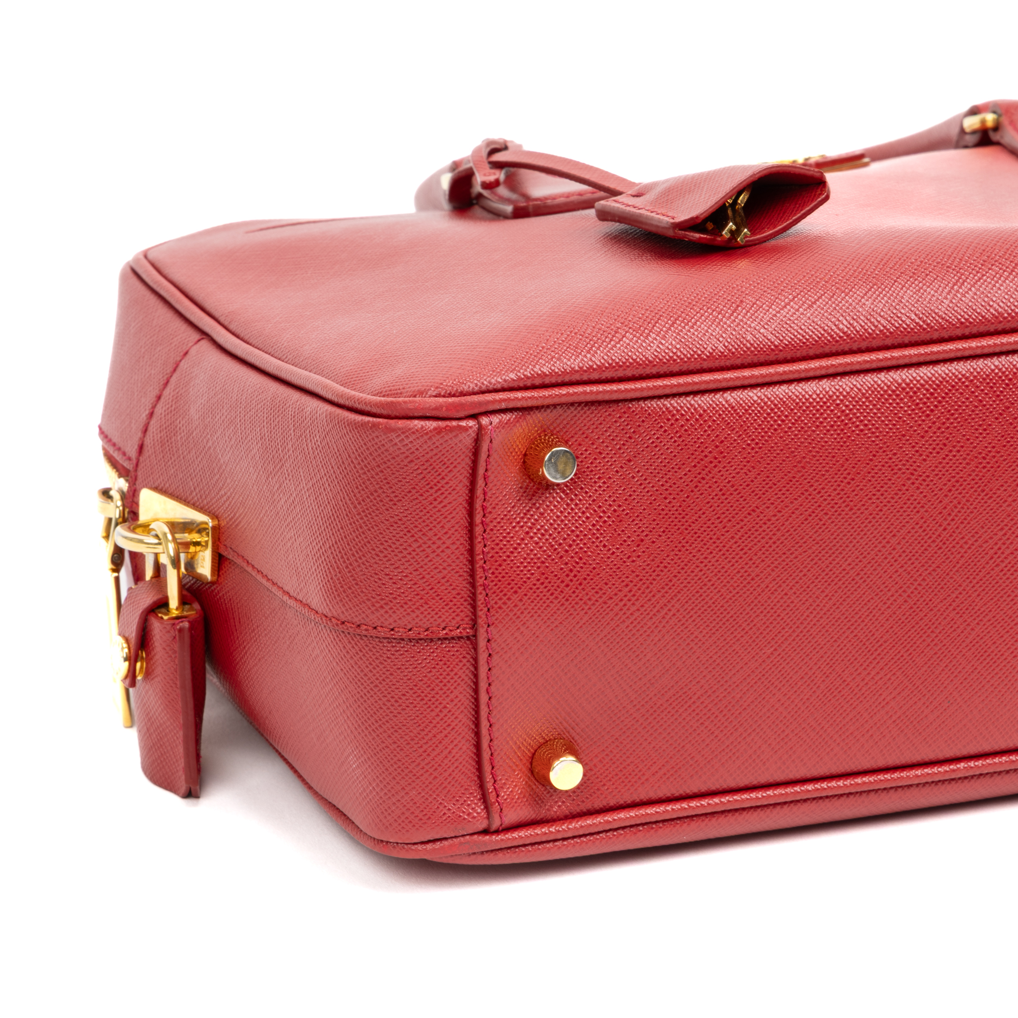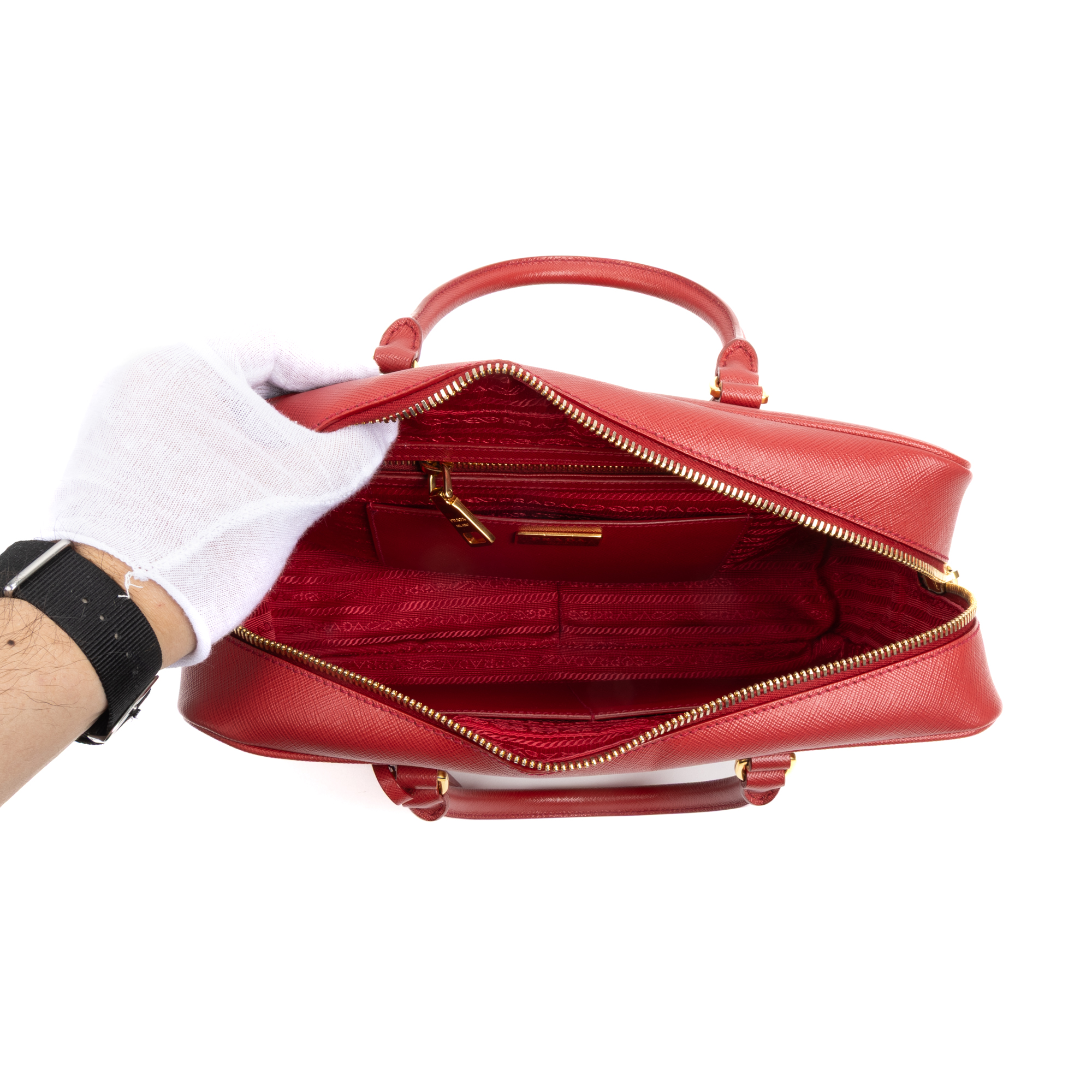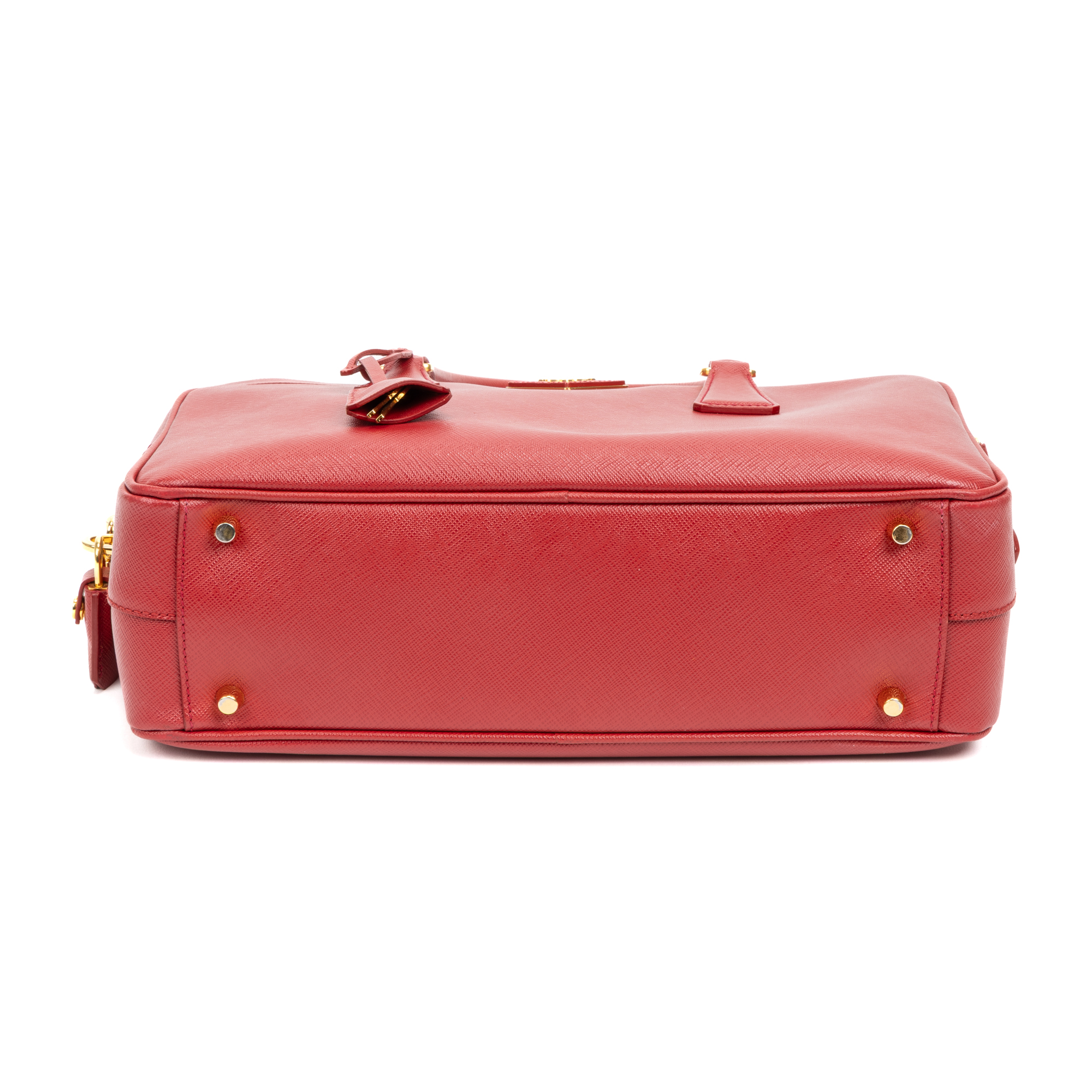 Prada Handbag Business Briefcase Medium in Red Saffiano Calfskin Leather and Gold hardware. The product is in Perfect Condition (AA).