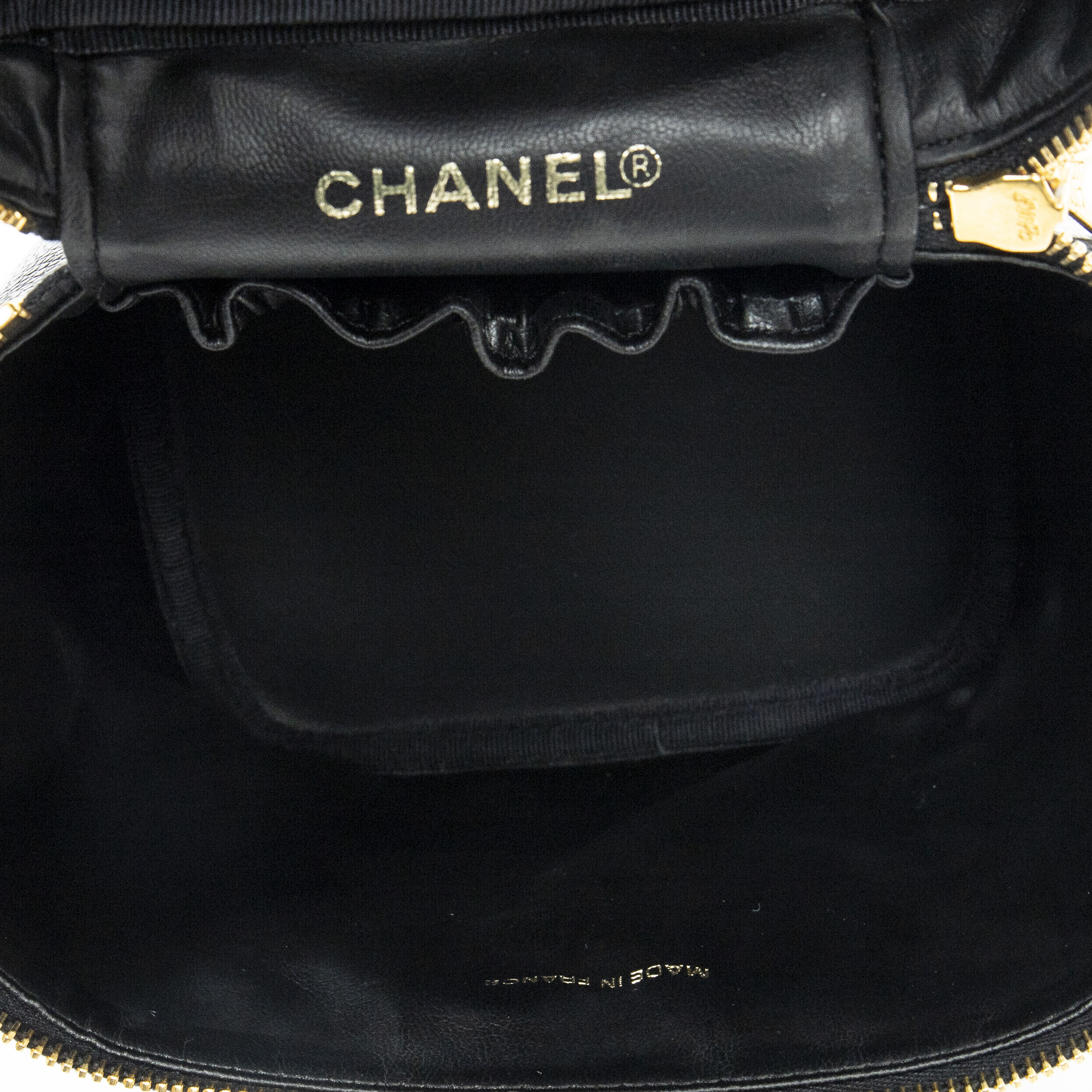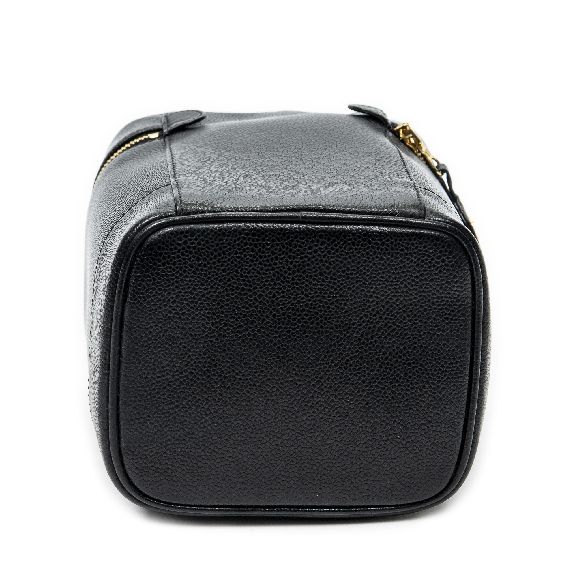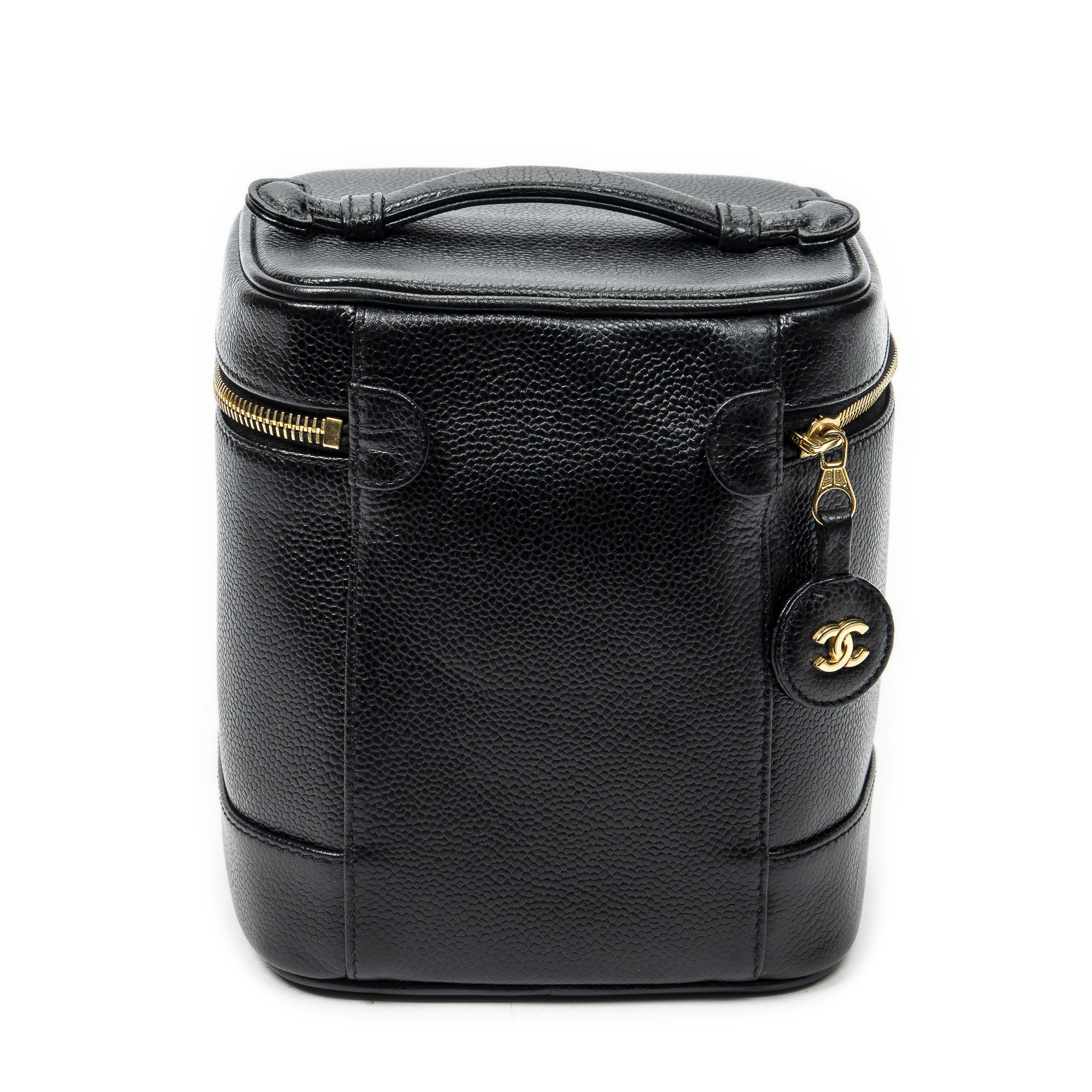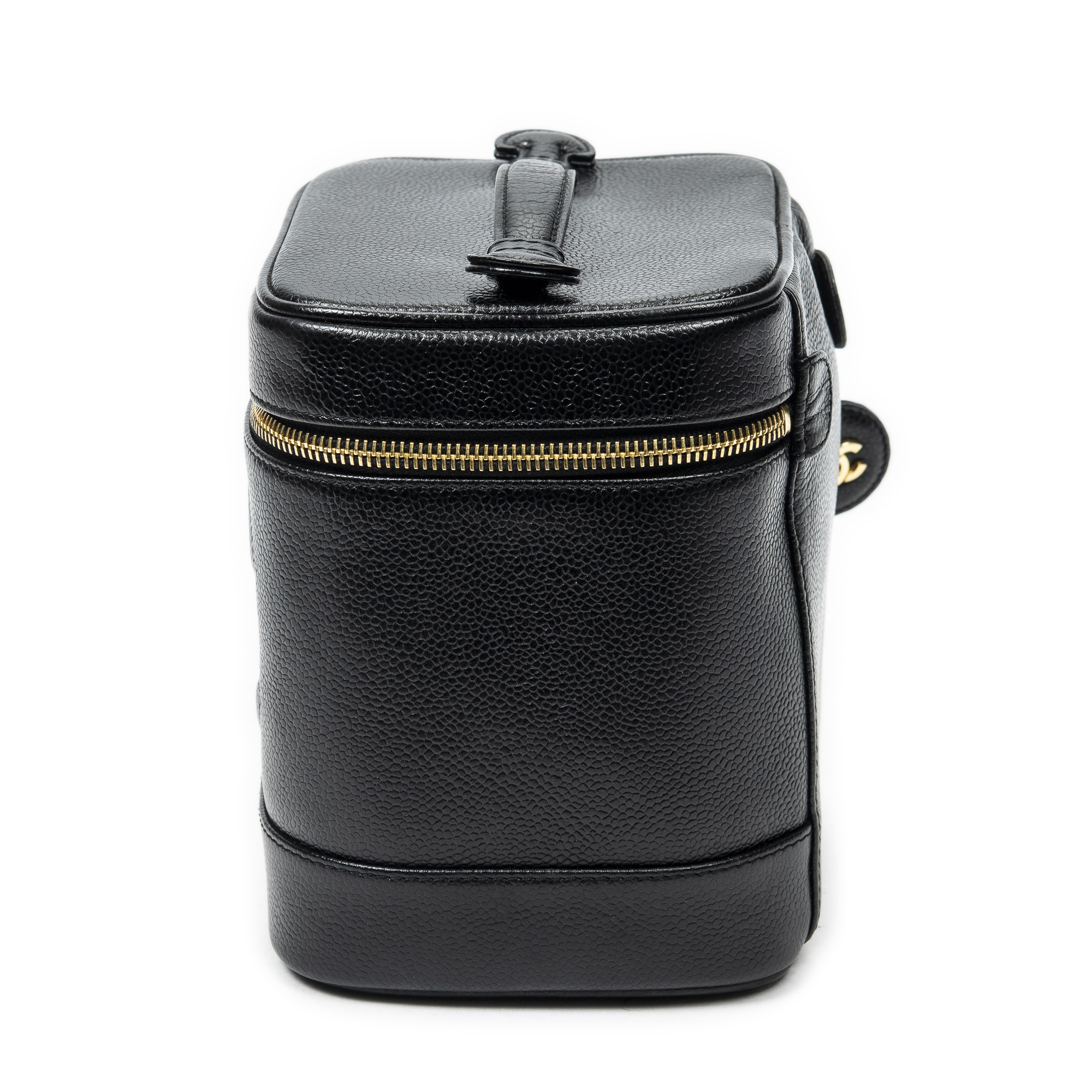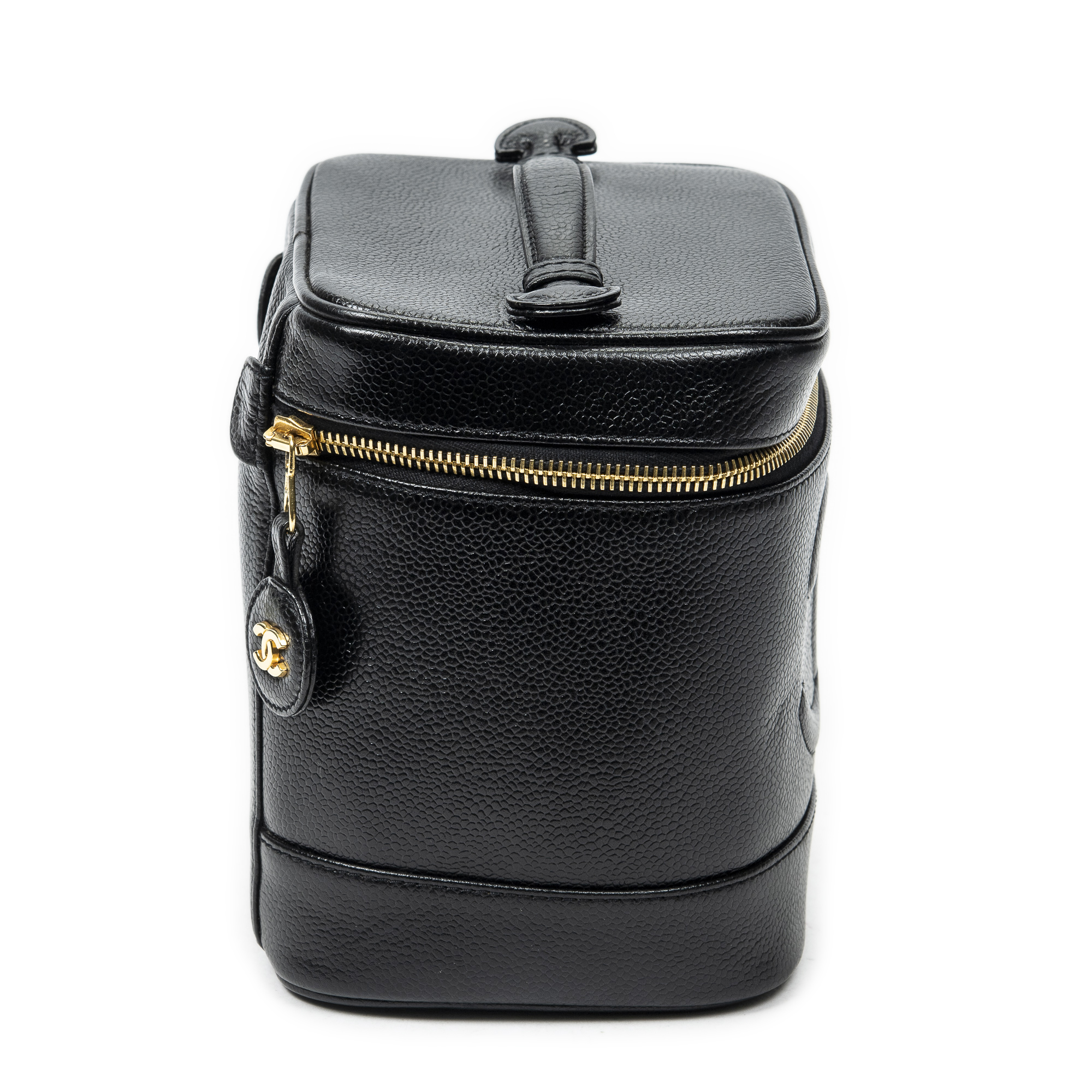 Chanel Handbag CC Tall Vanity Case in Black Caviar Leather and Gold hardware. The product is in Perfect Condition (AA).
