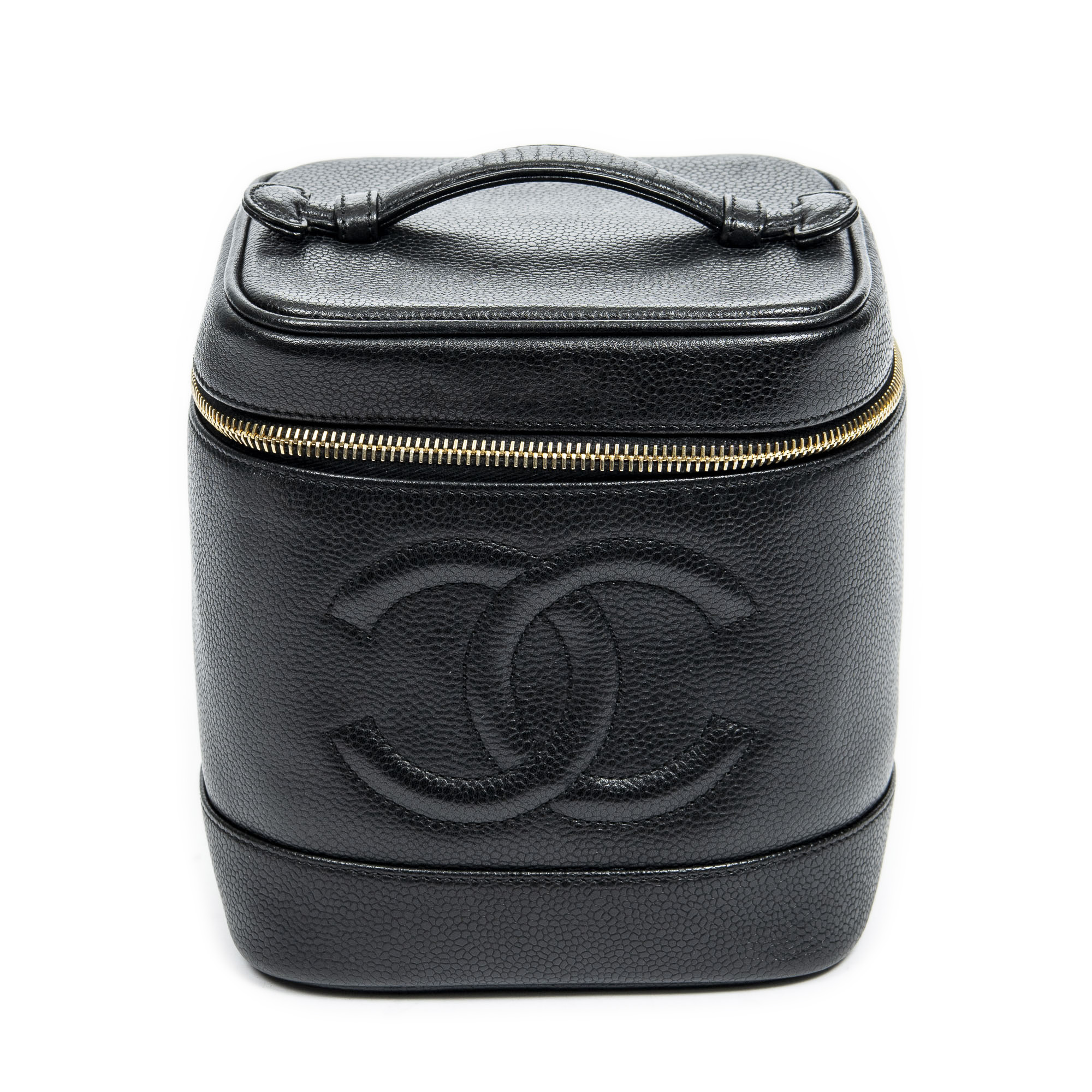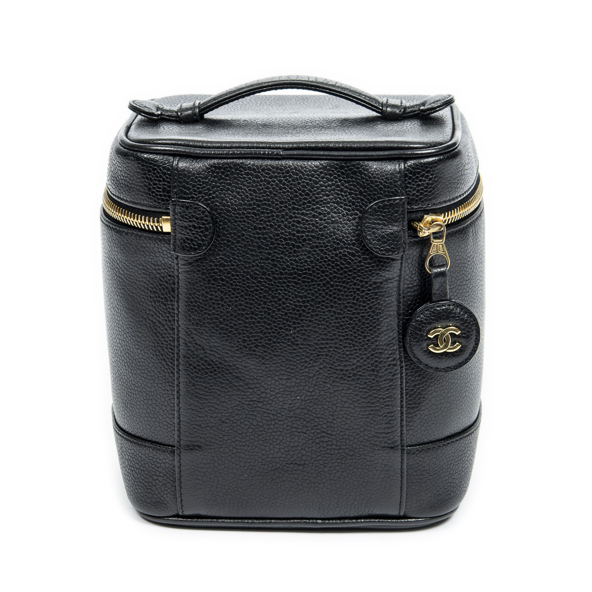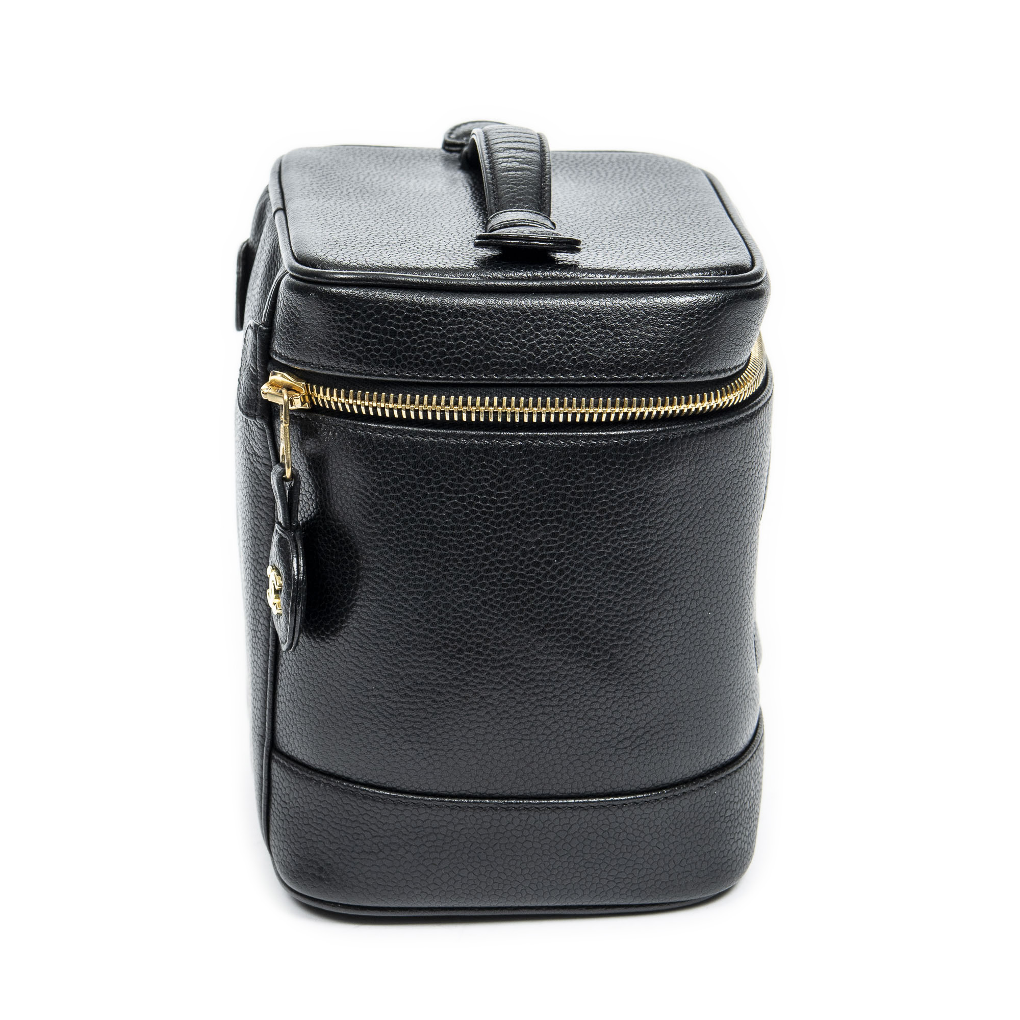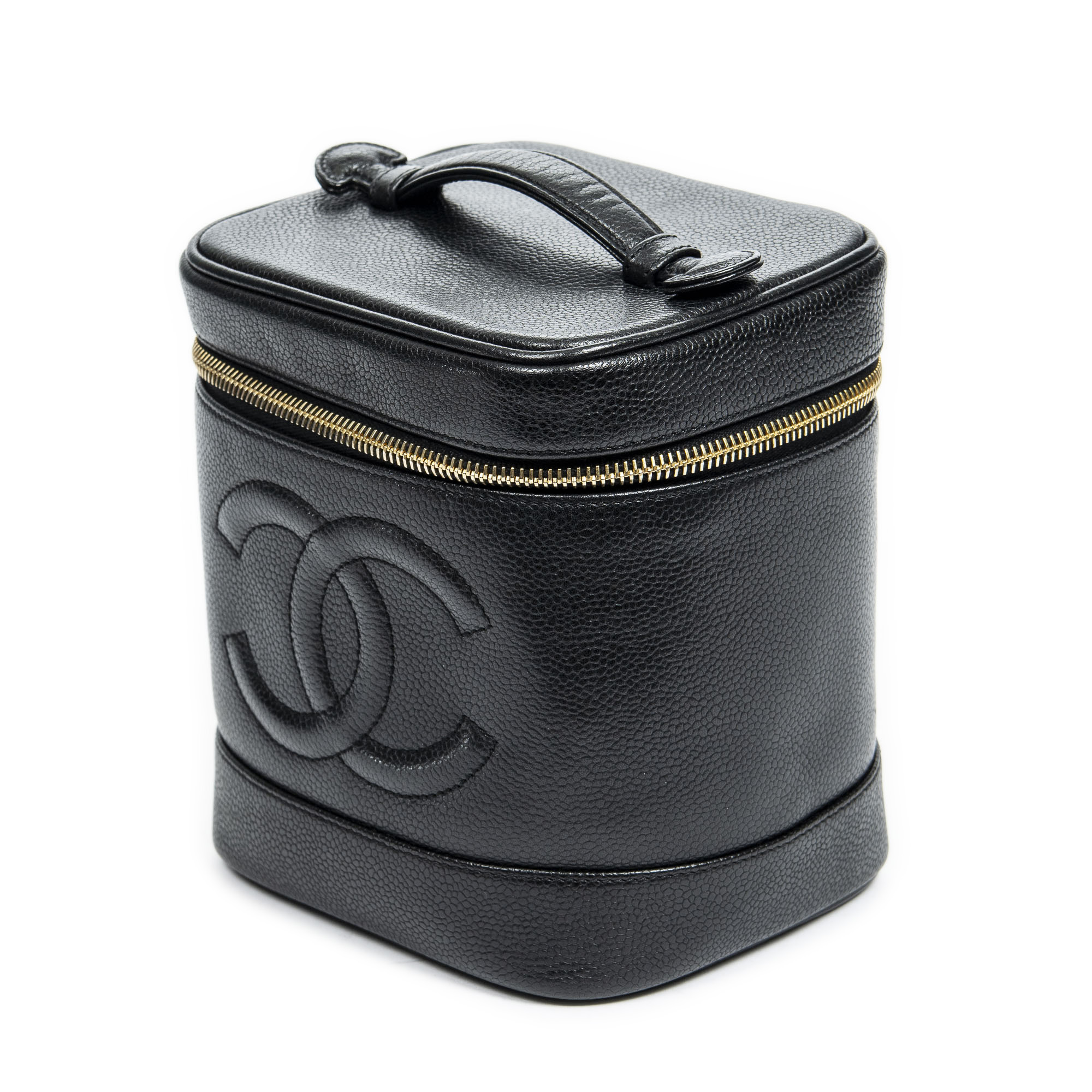 Chanel Handbag CC Timeless Tall Vanity Case in Black Caviar Leather and Gold hardware. The product is in Perfect Condition (AA).