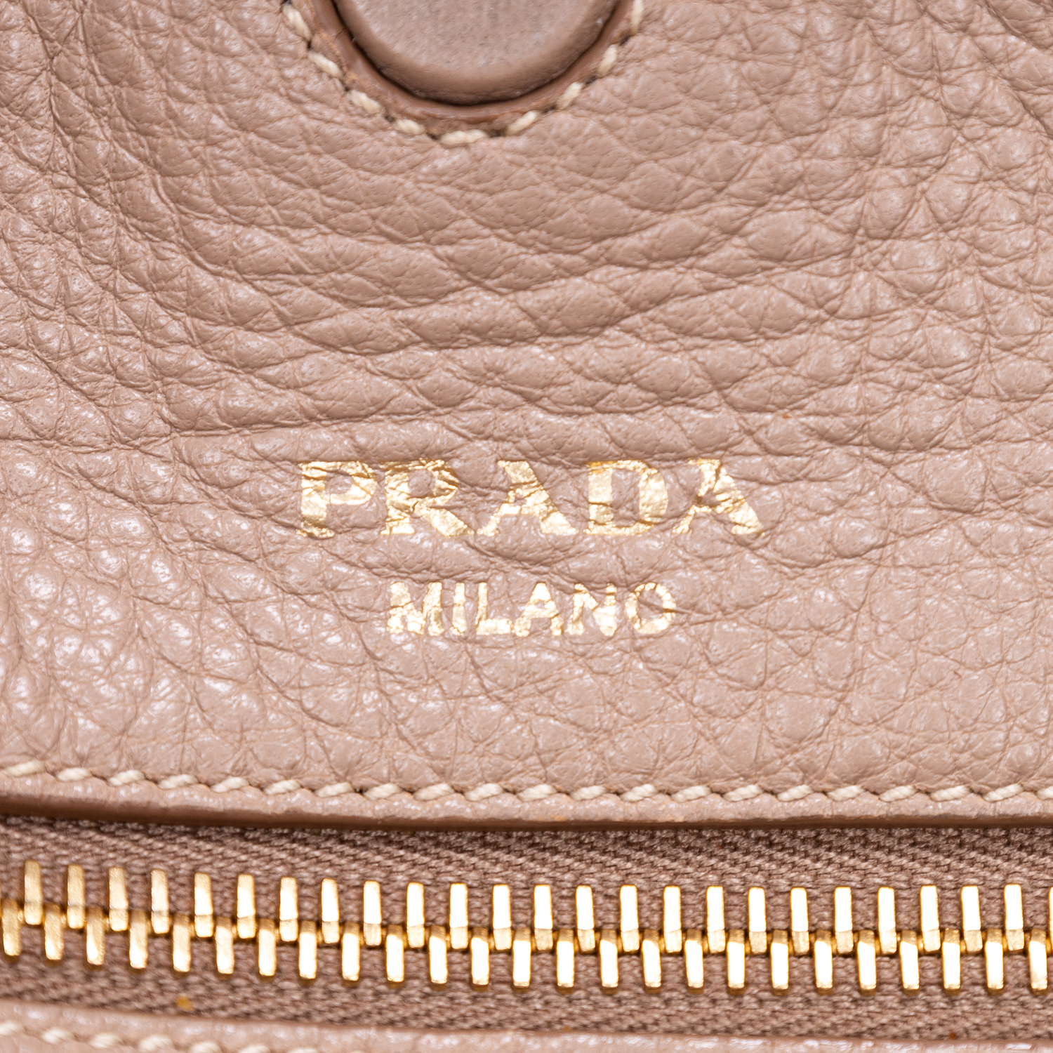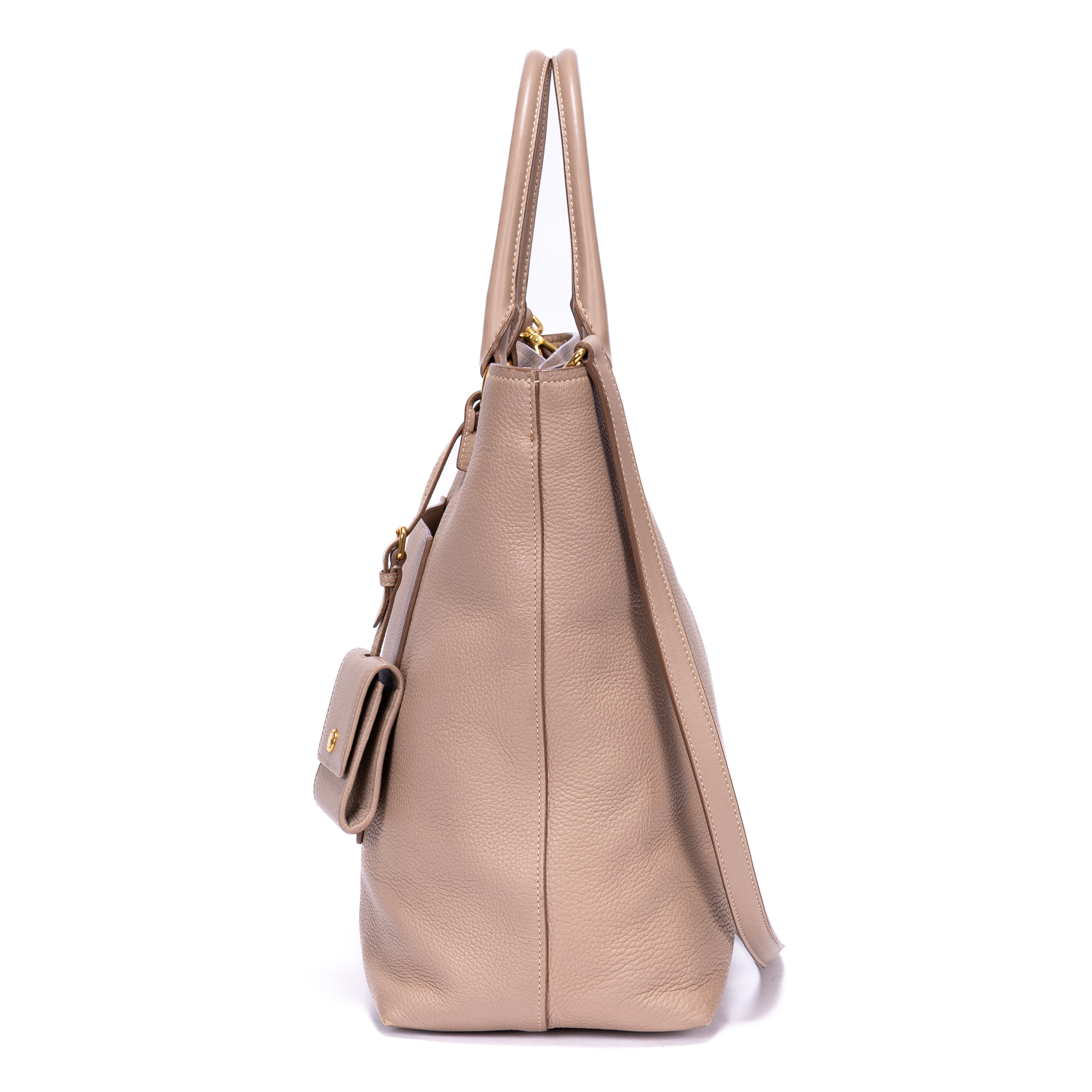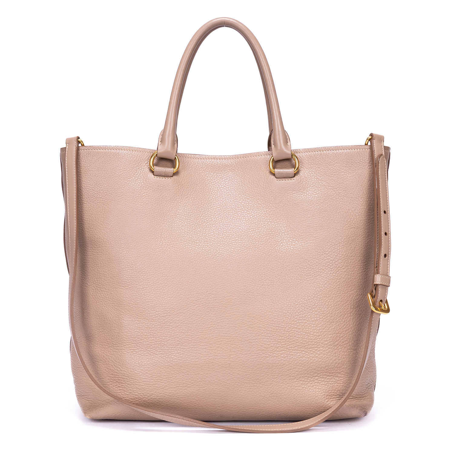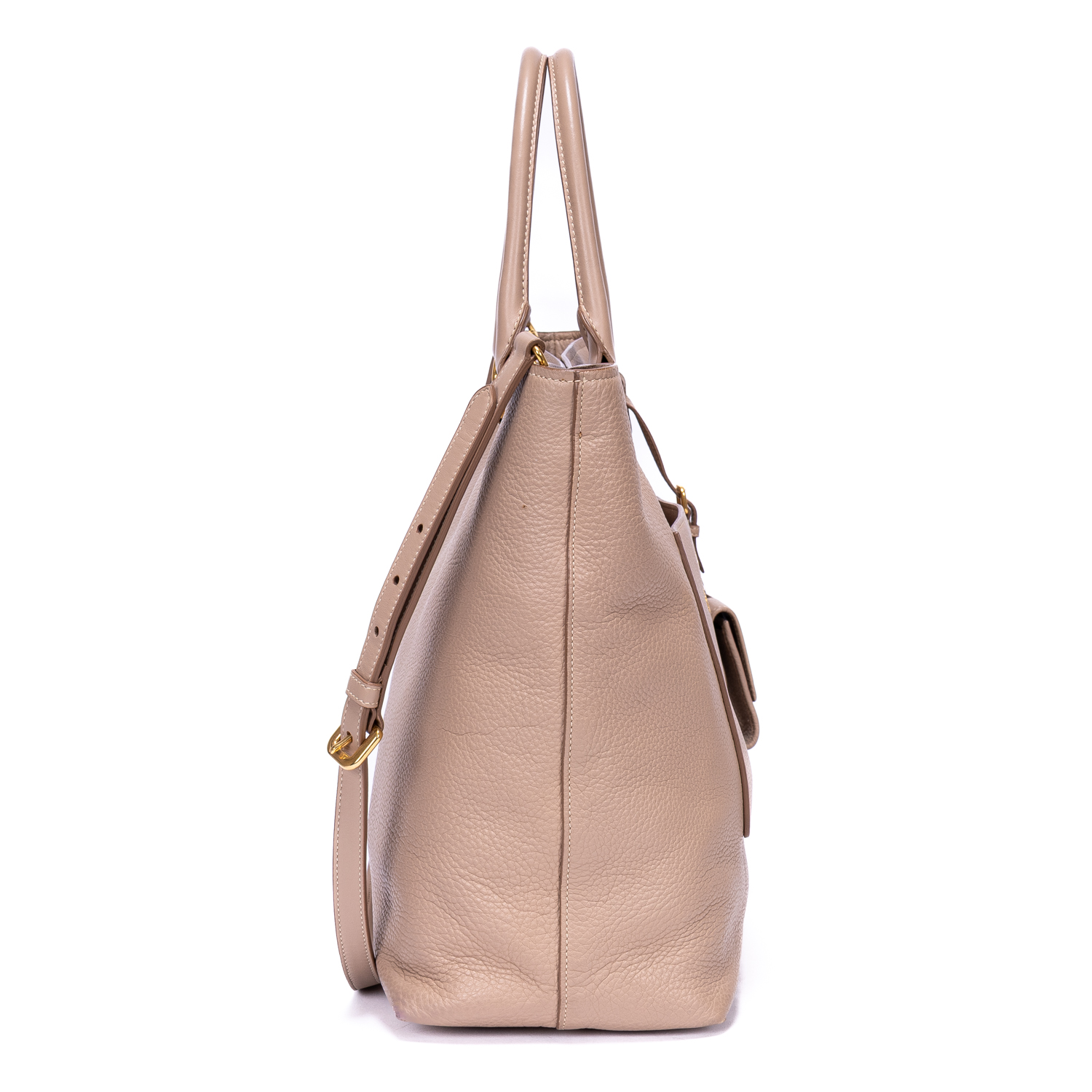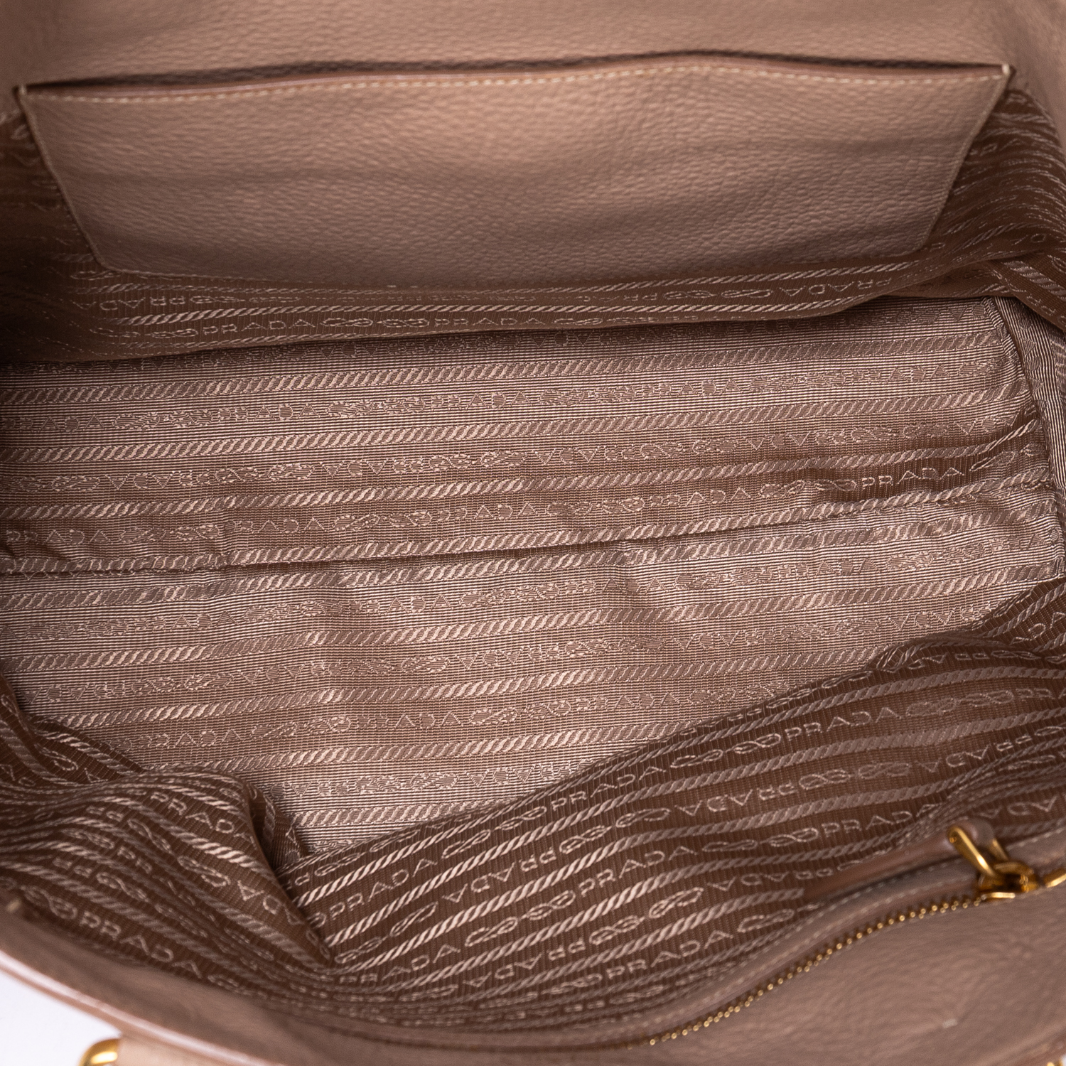 Prada Handbag Crossbody Cabas in Beige Vitello Daino Leather and Gold hardware. The product is in Excellent Condition (A).