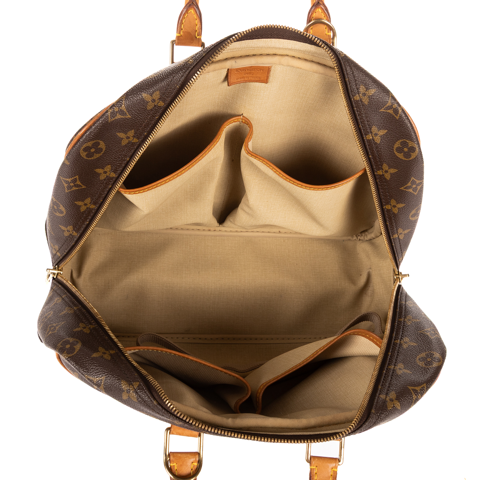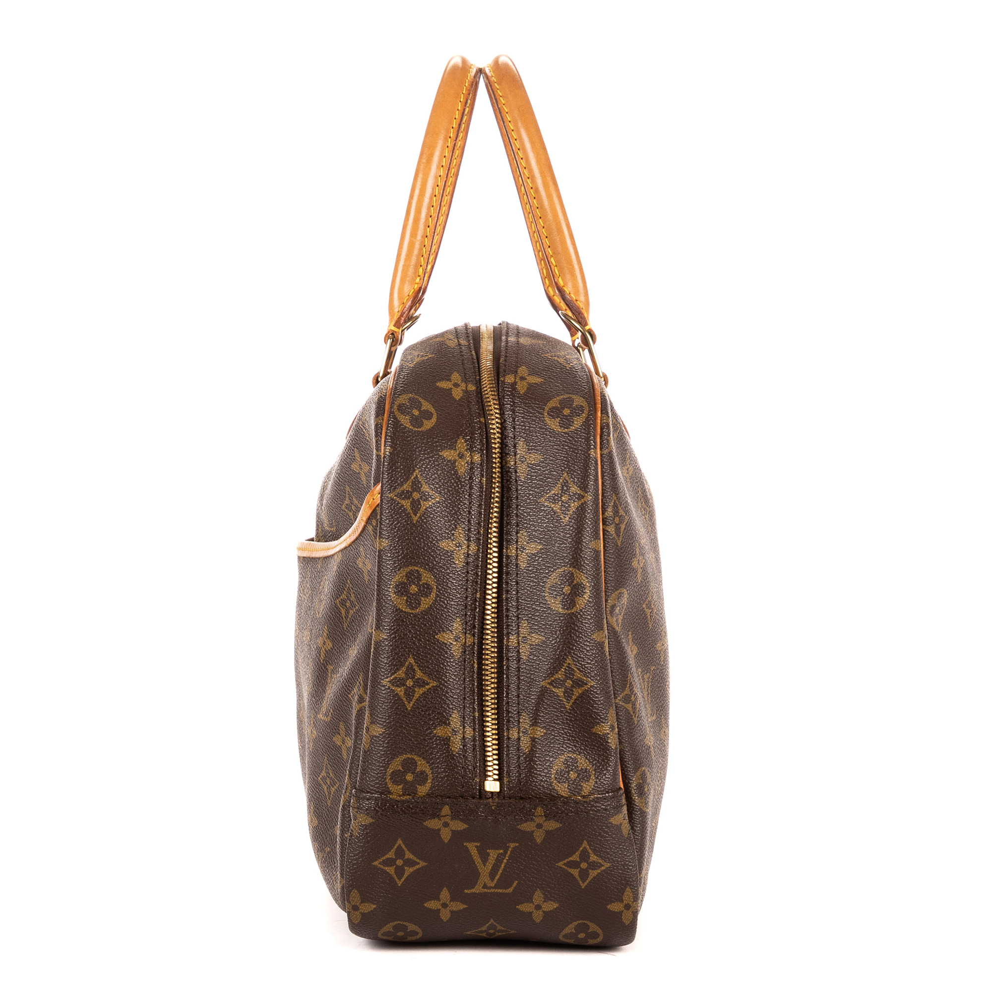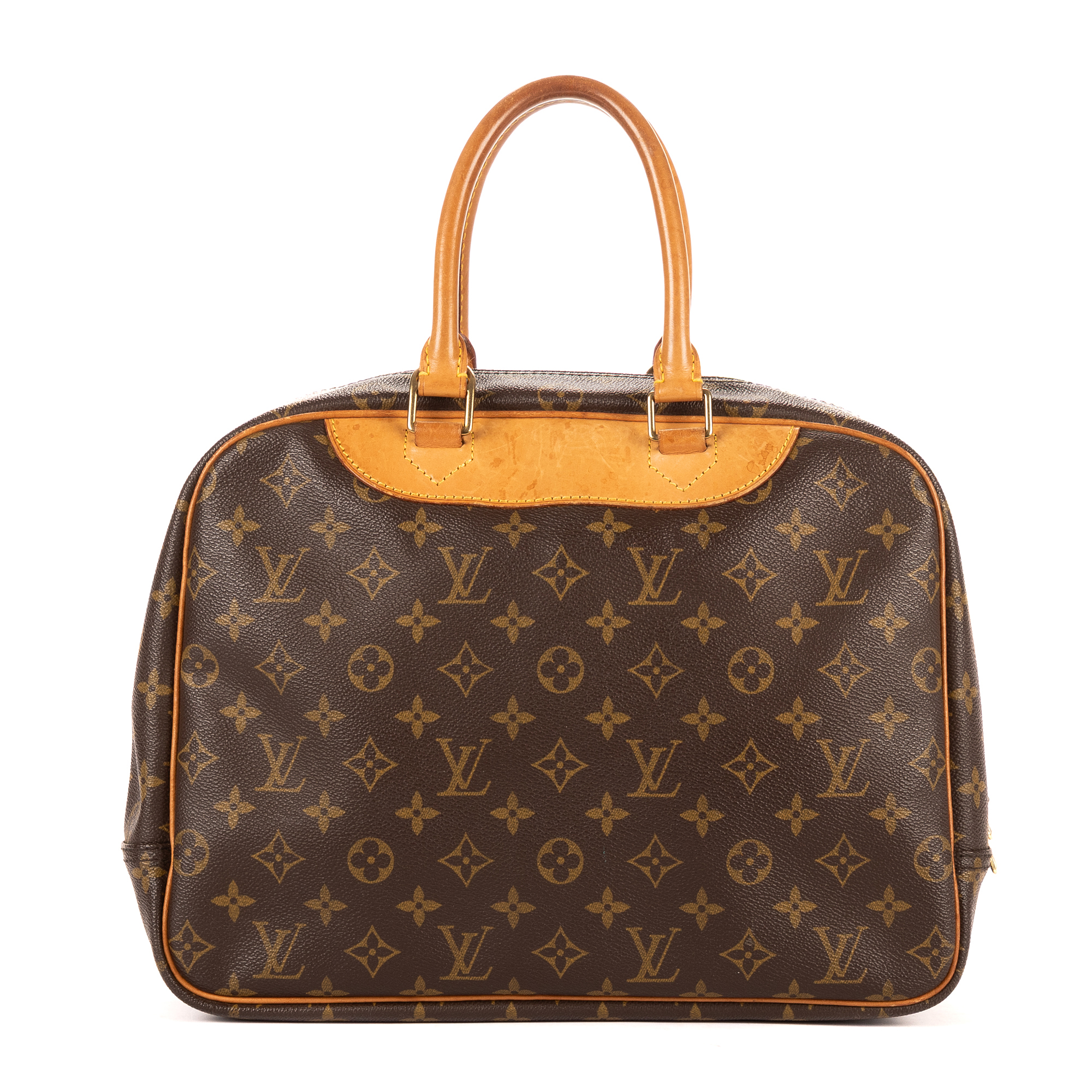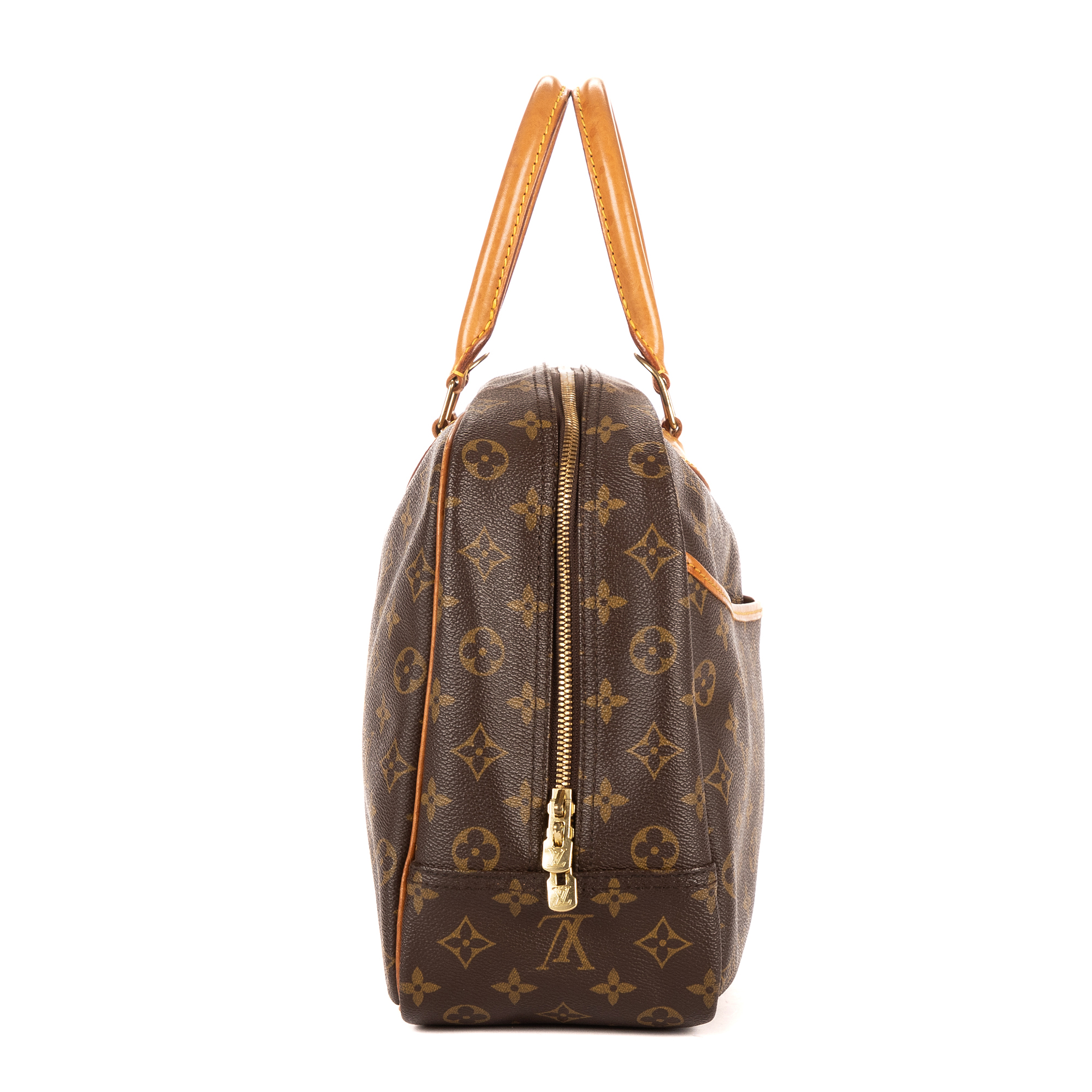 Louis Vuitton Handbag Deauville in Brown Monogram Canvas and Golden Brass hardware. The product is in Excellent Condition (A).