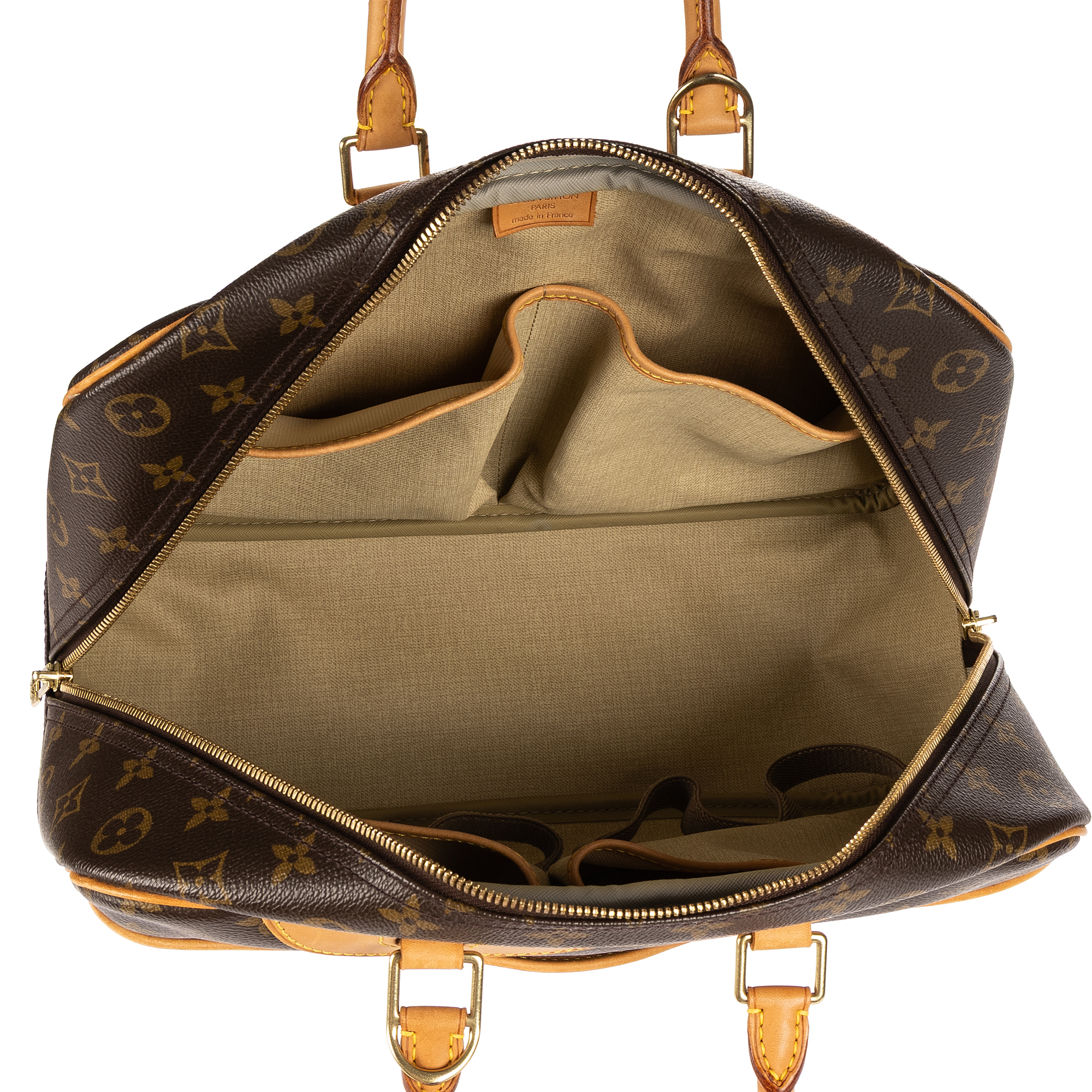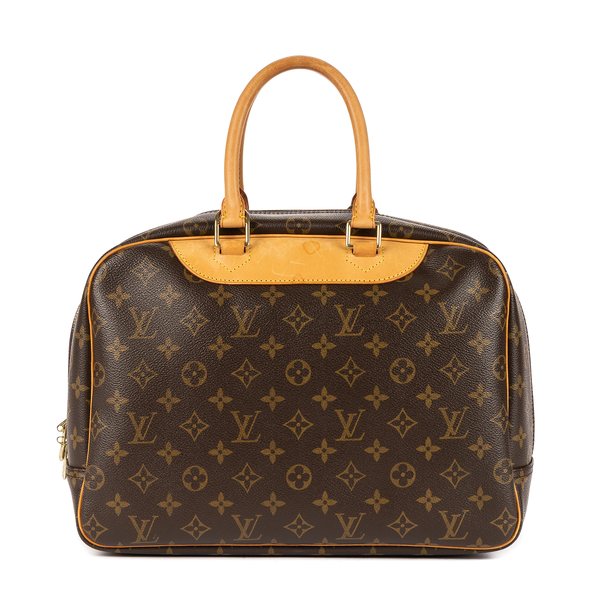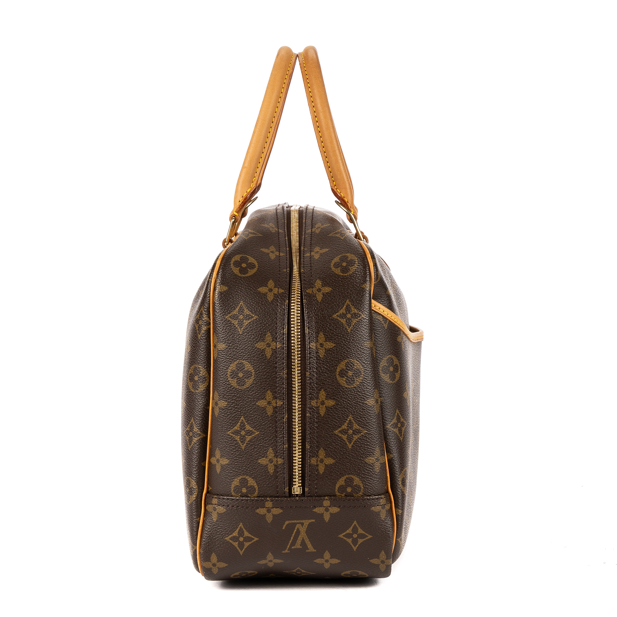 Louis Vuitton Handbag Deauville in Brown Monogram Canvas and Golden Brass hardware. The product is in Excellent Condition (A).