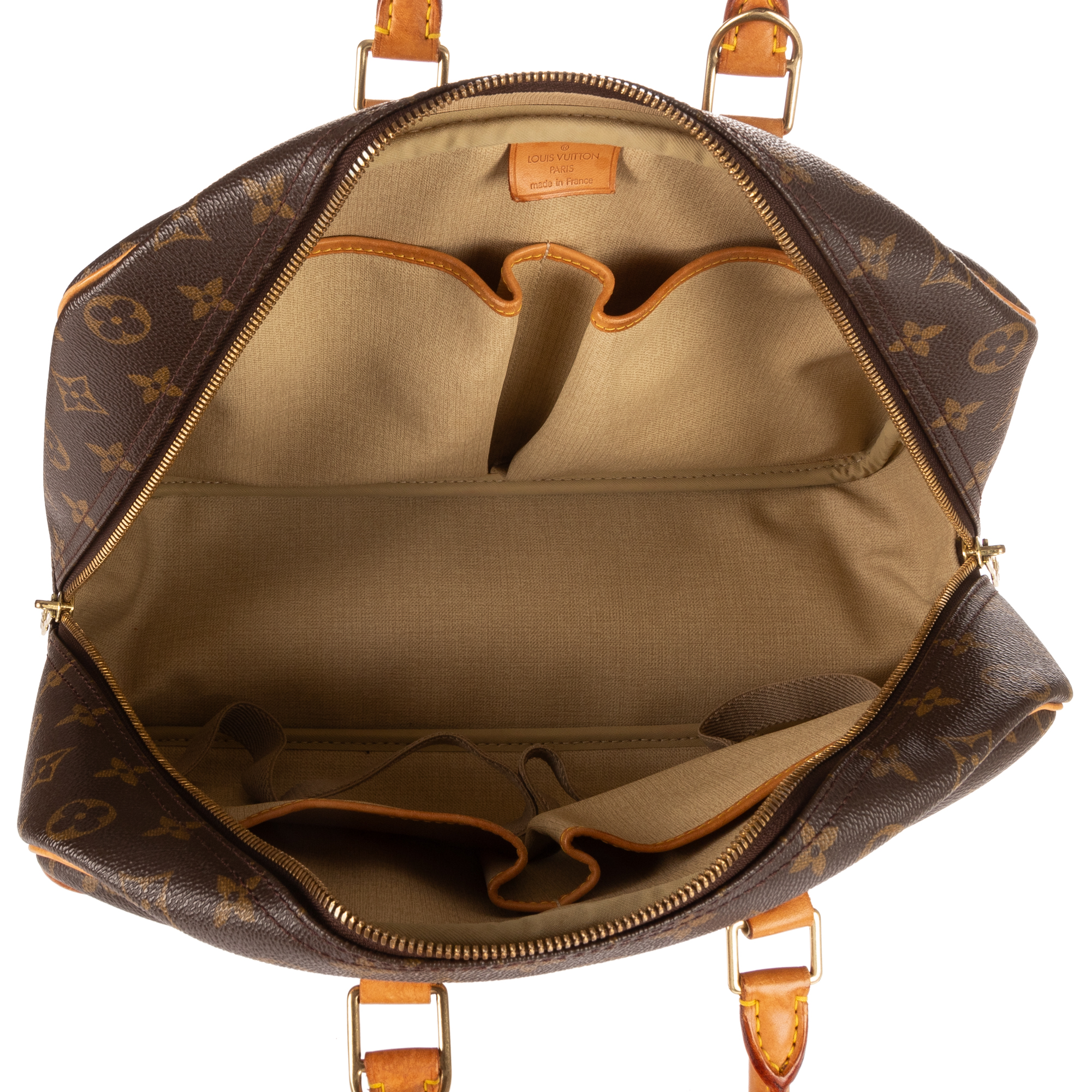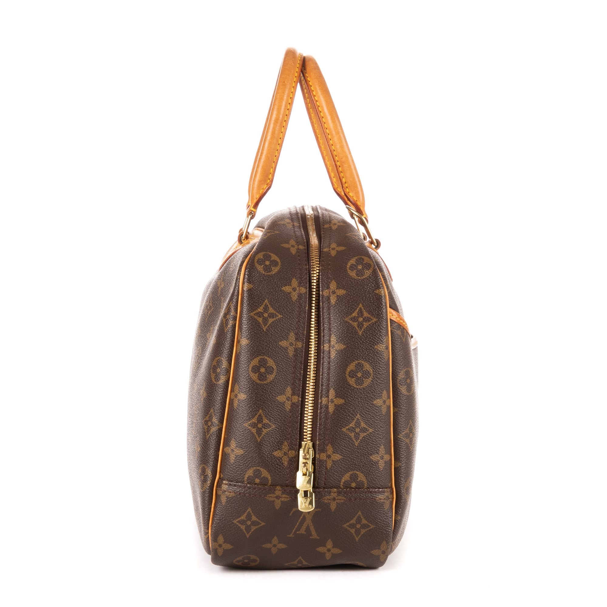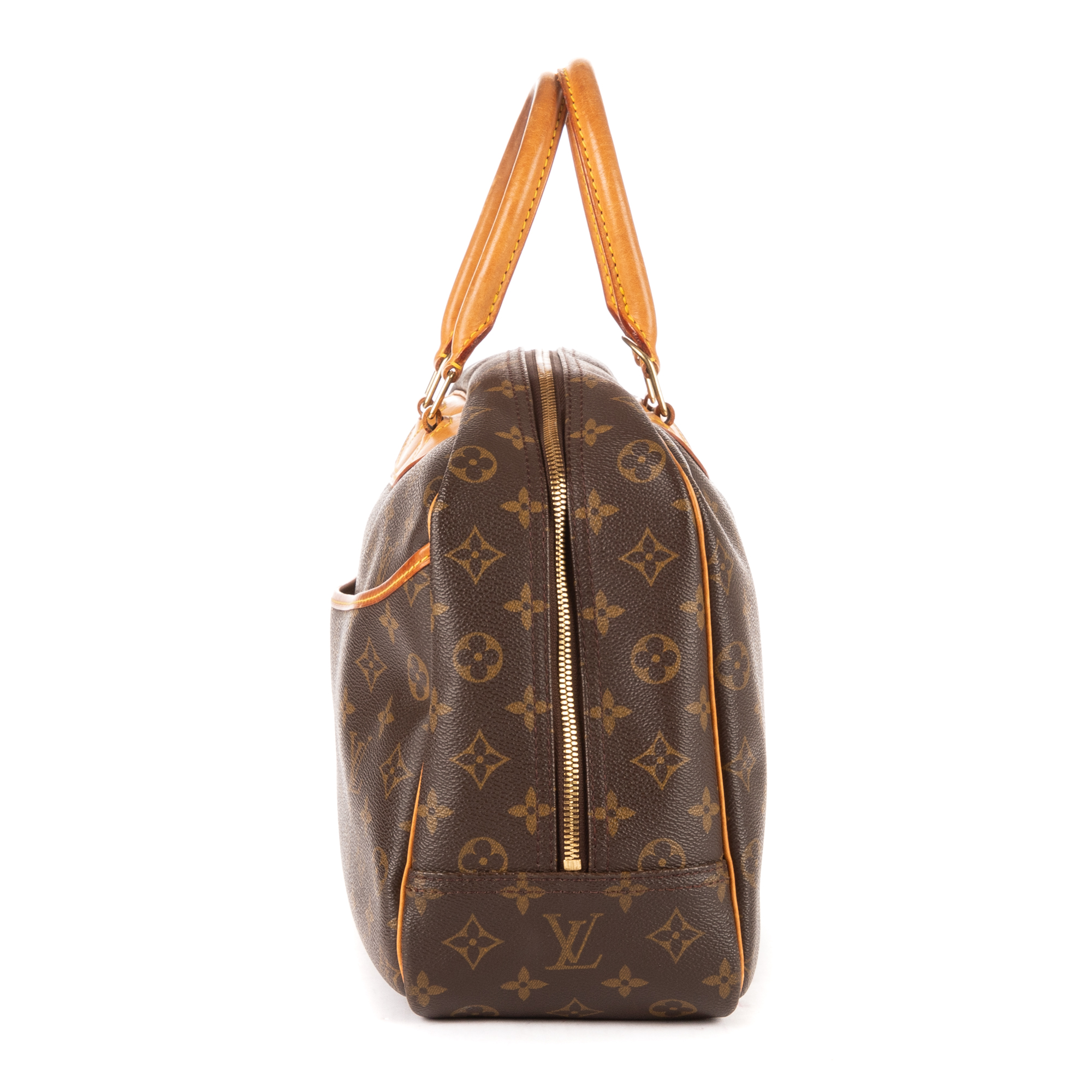Louis Vuitton Handbag Deauville in Brown Monogram and Golden Brass hardware. The product is in Excellent Condition (A).