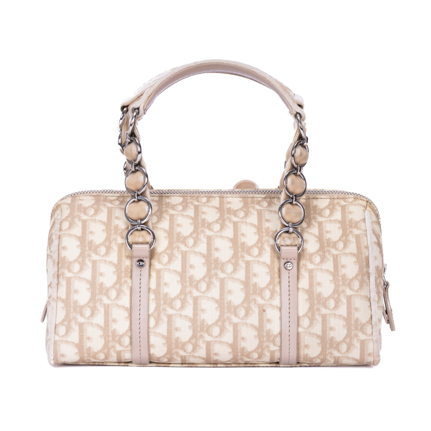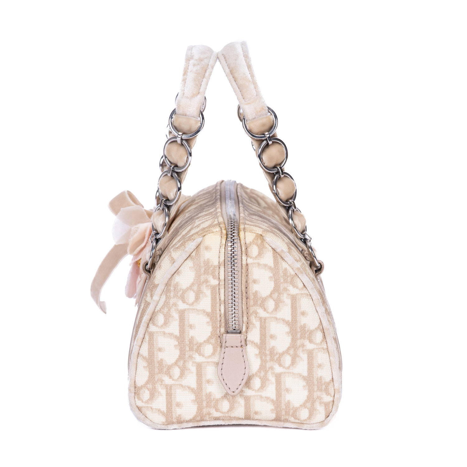 Dior Handbag Diorissimo Oblique Romantique in Beige Diorissimo Canvas and Silver hardware. The product is in Excellent Condition (A).
