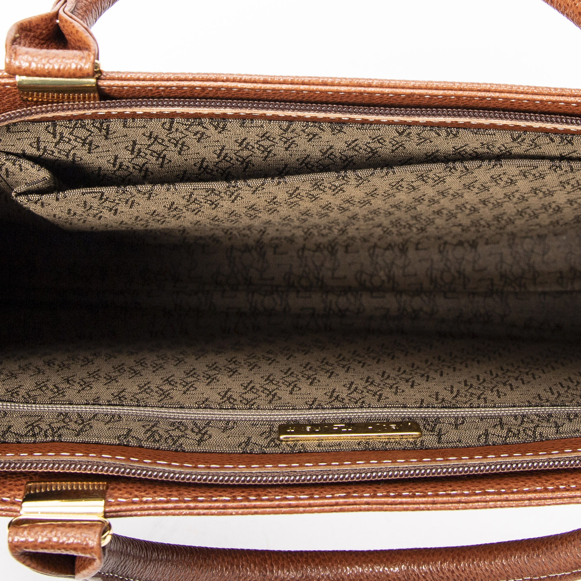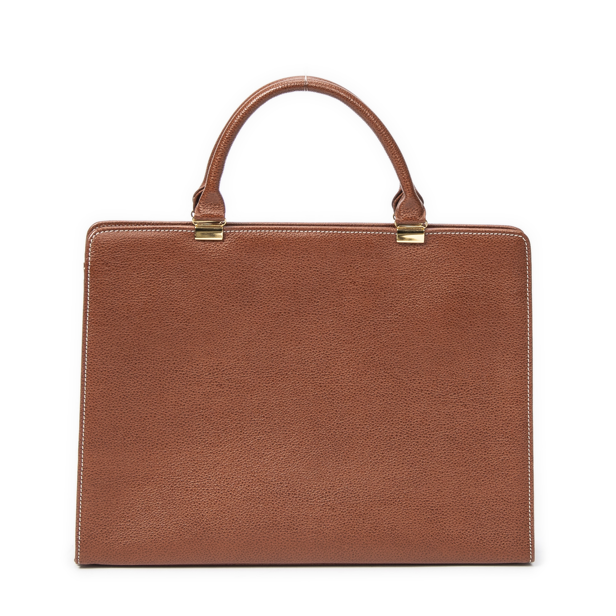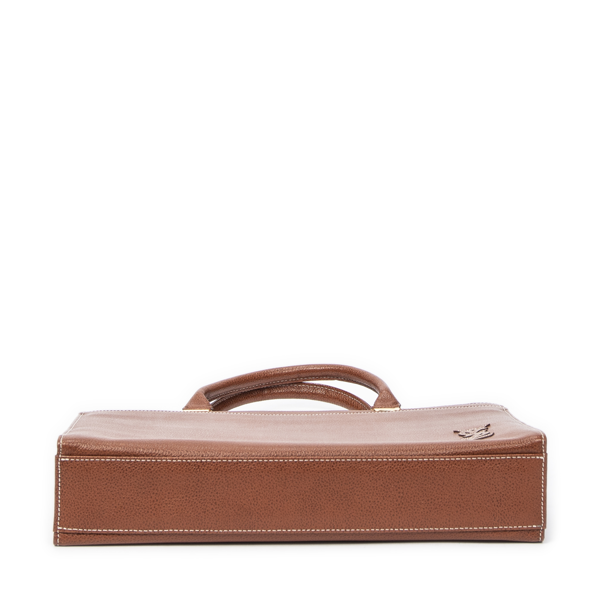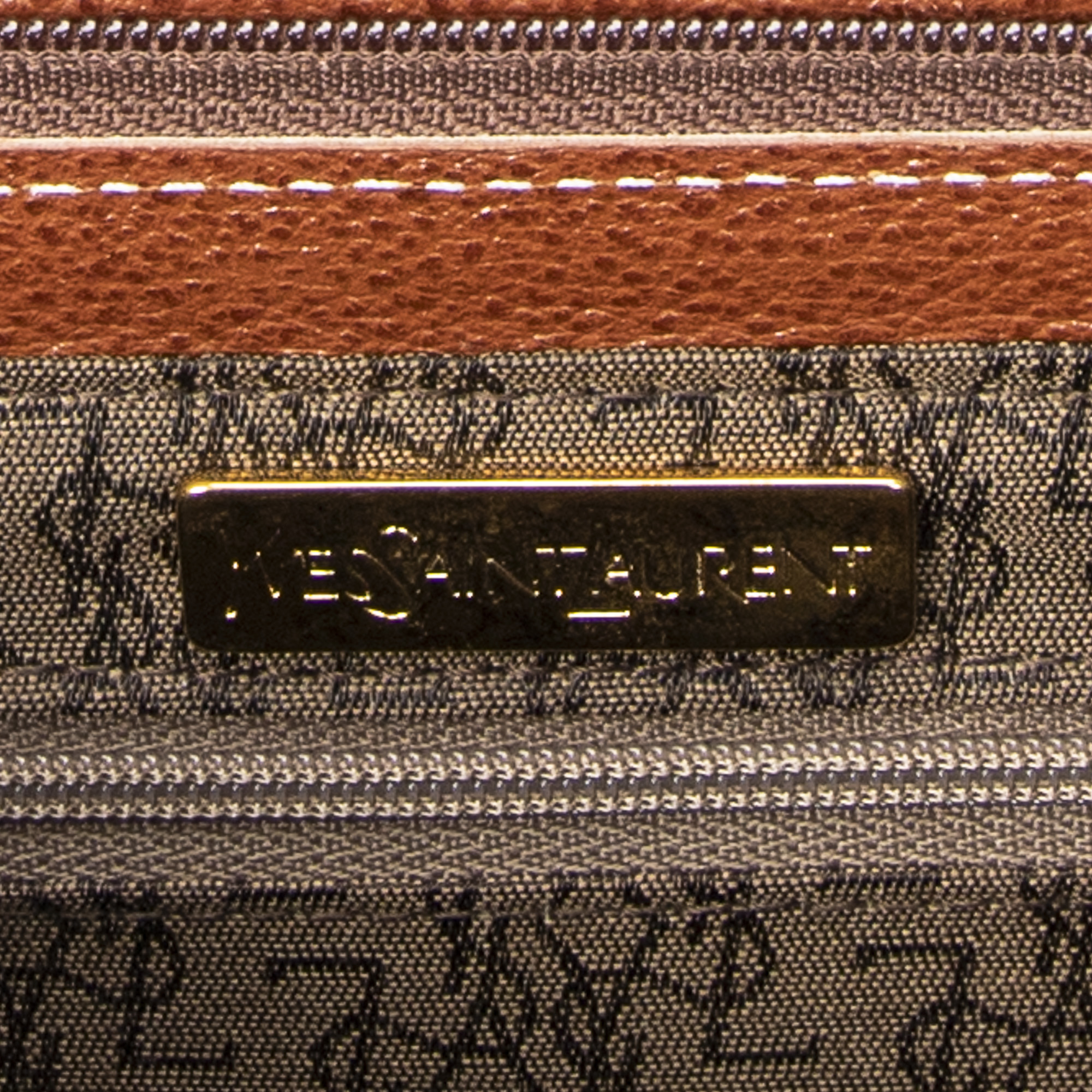 Yves Saint Laurent Handbag Document Zip Bag in Brown Grained Calfskin Leather and Gold hardware. The product is in Excellent Condition (A).