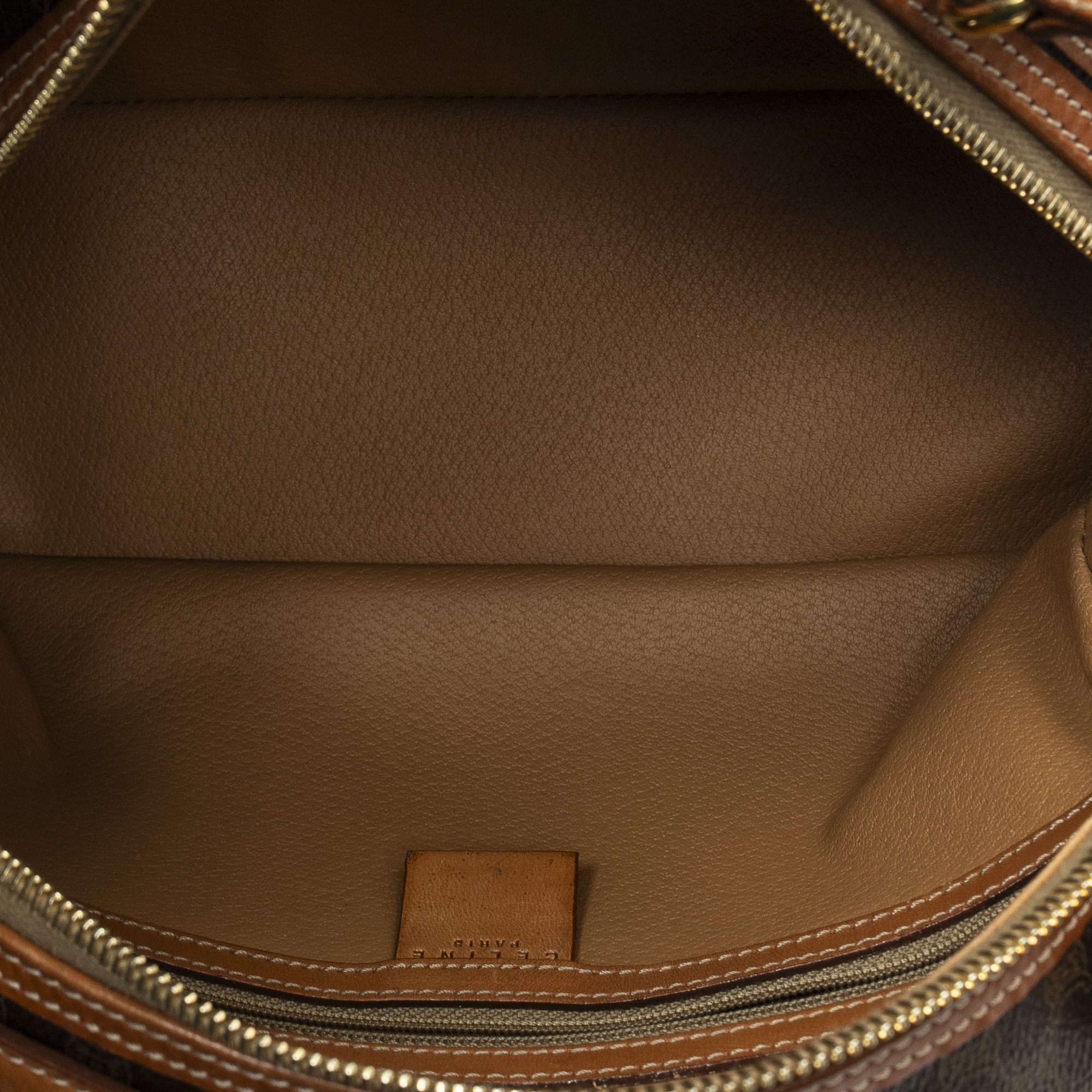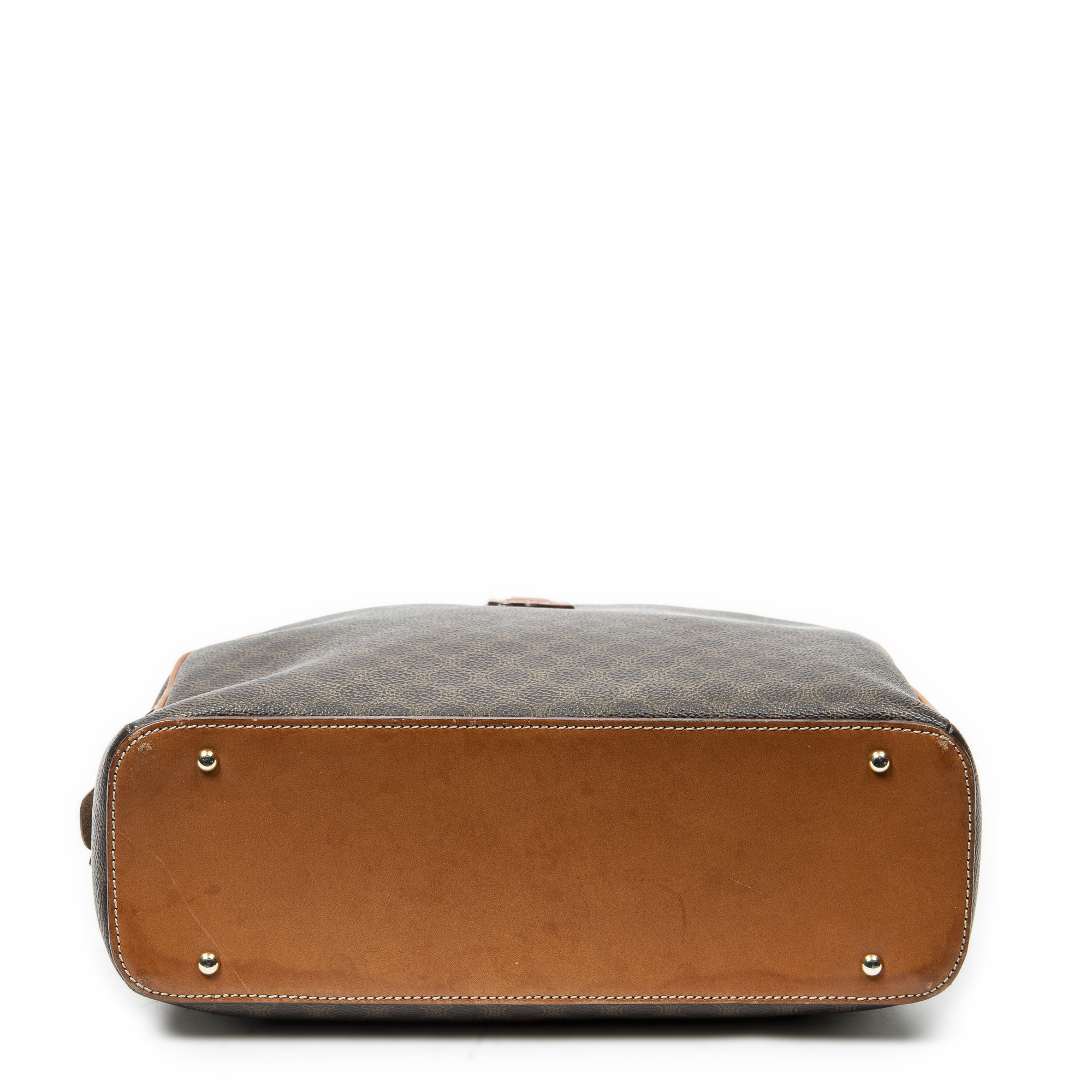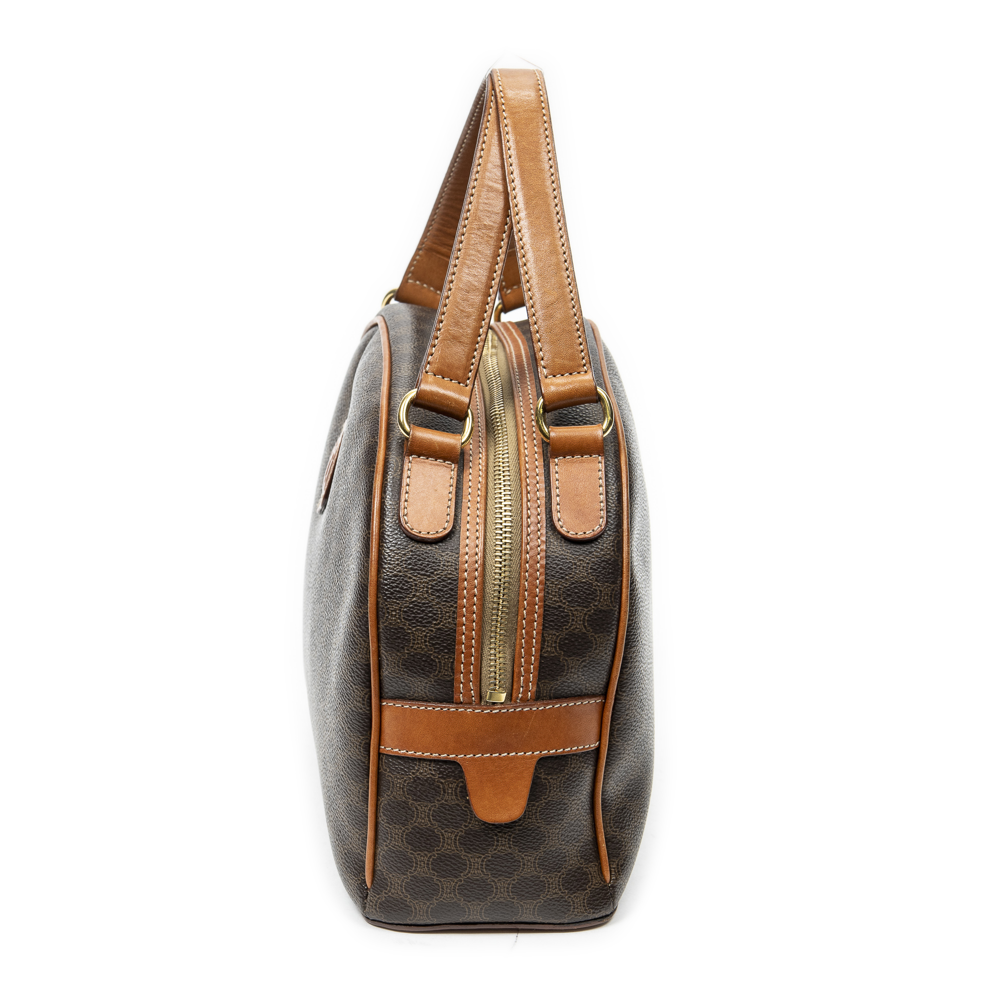 Celine Handbag Dome Top Handle in Brown Macadam Coated Canvas and Gold hardware. The product is in Very Good Condition (AB).