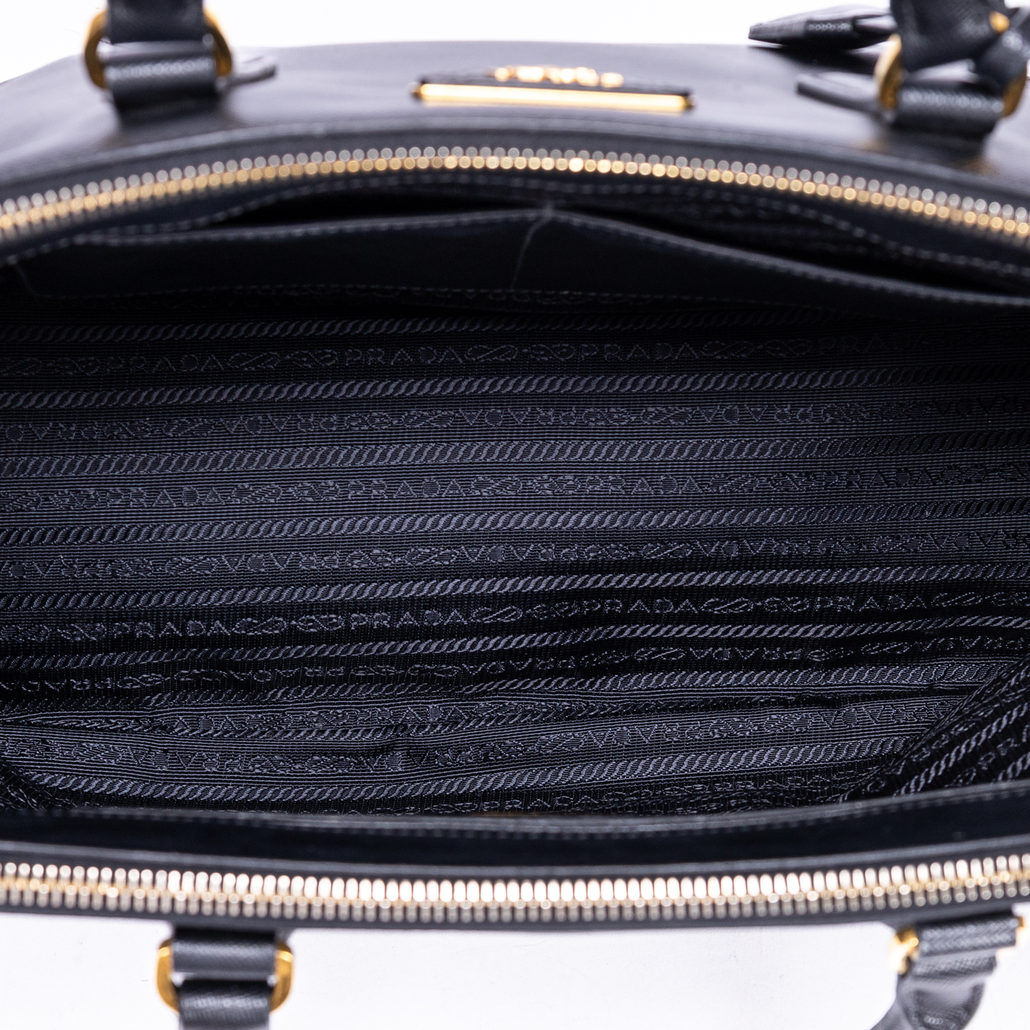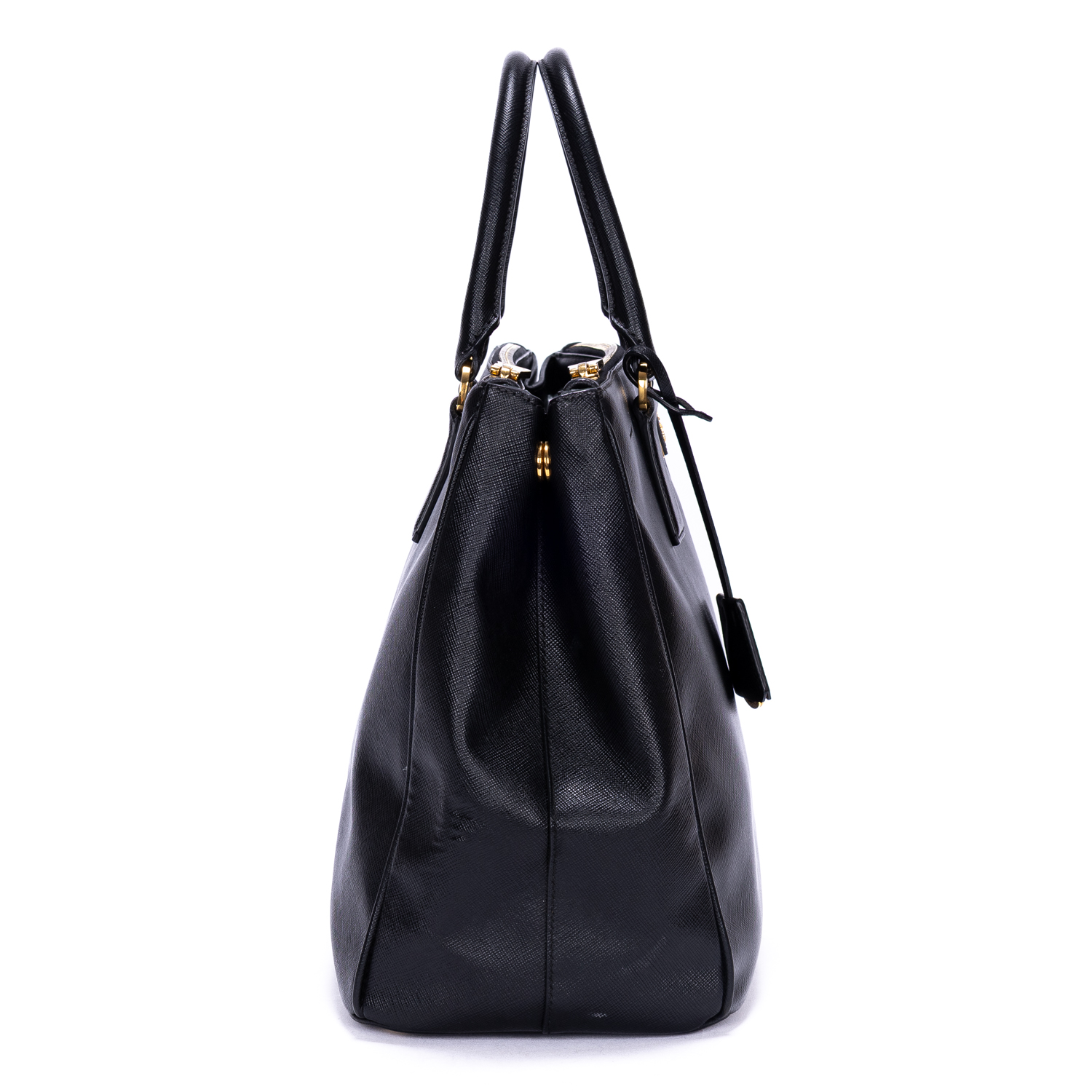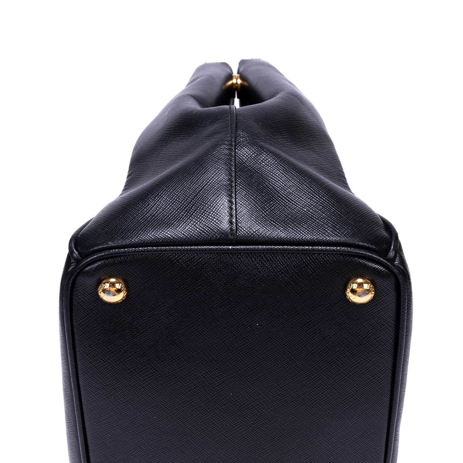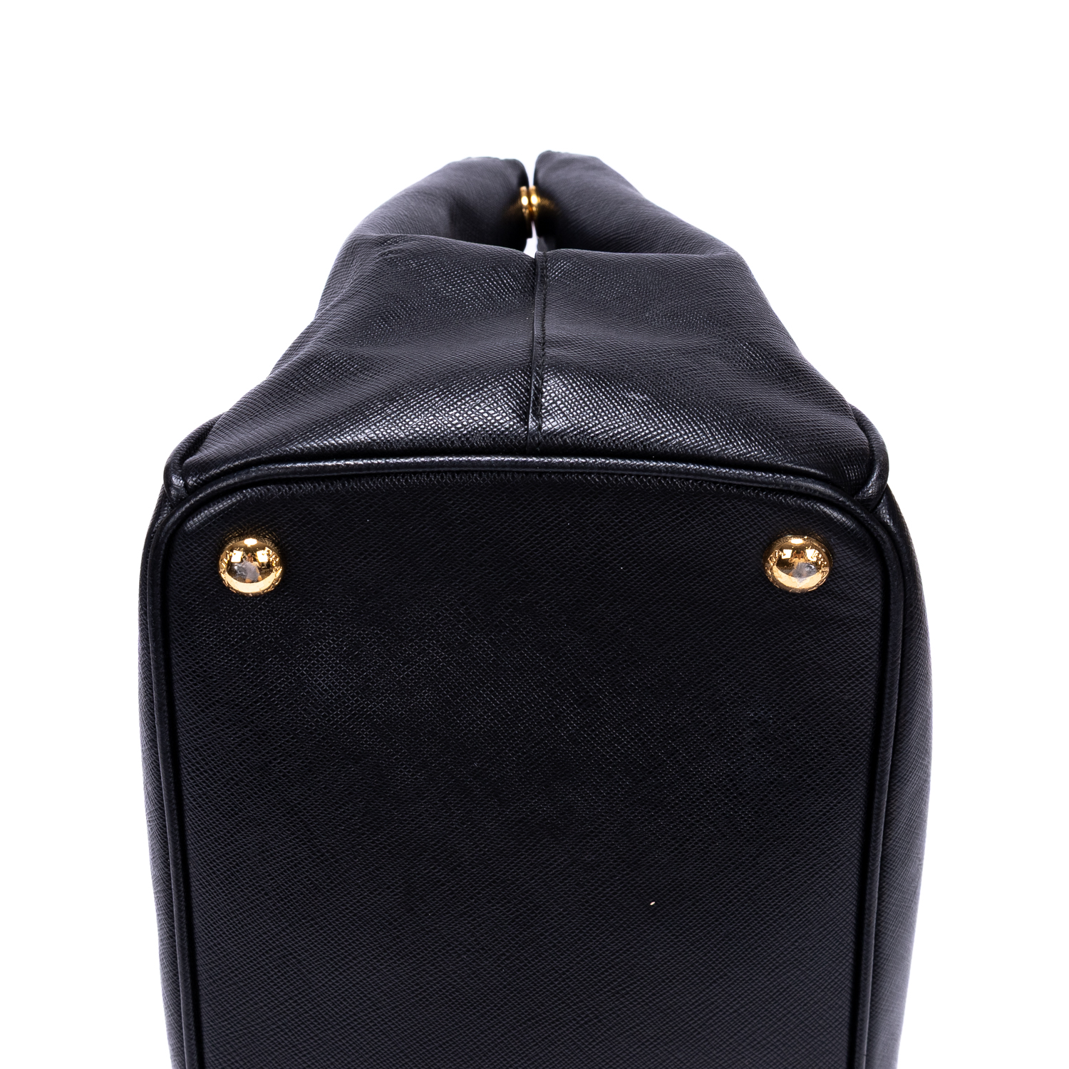 Prada Handbag Double Zip Galleria Tote in Black Saffiano Leather and Gold hardware. The product is in Perfect Condition (AA).