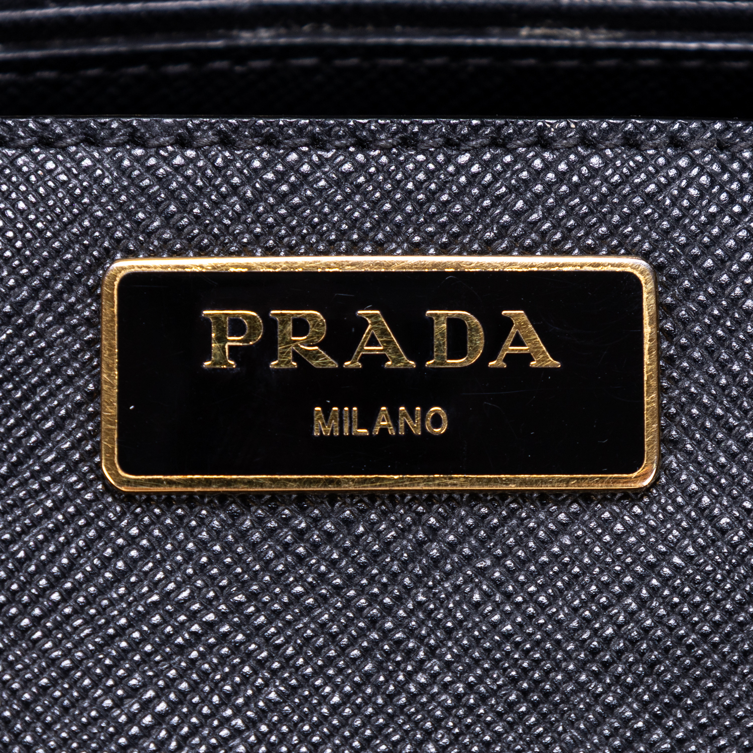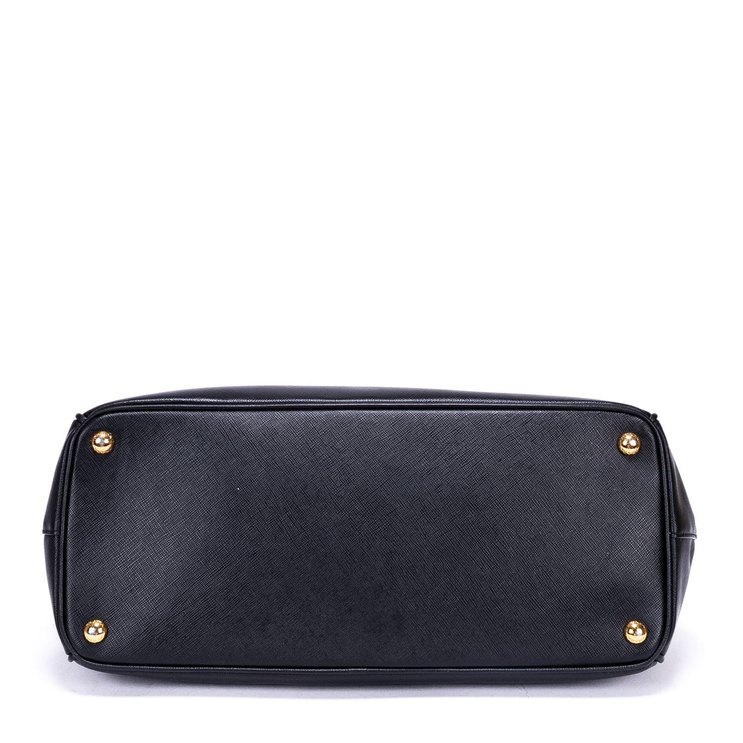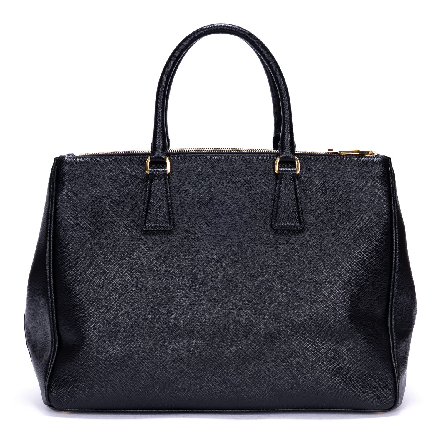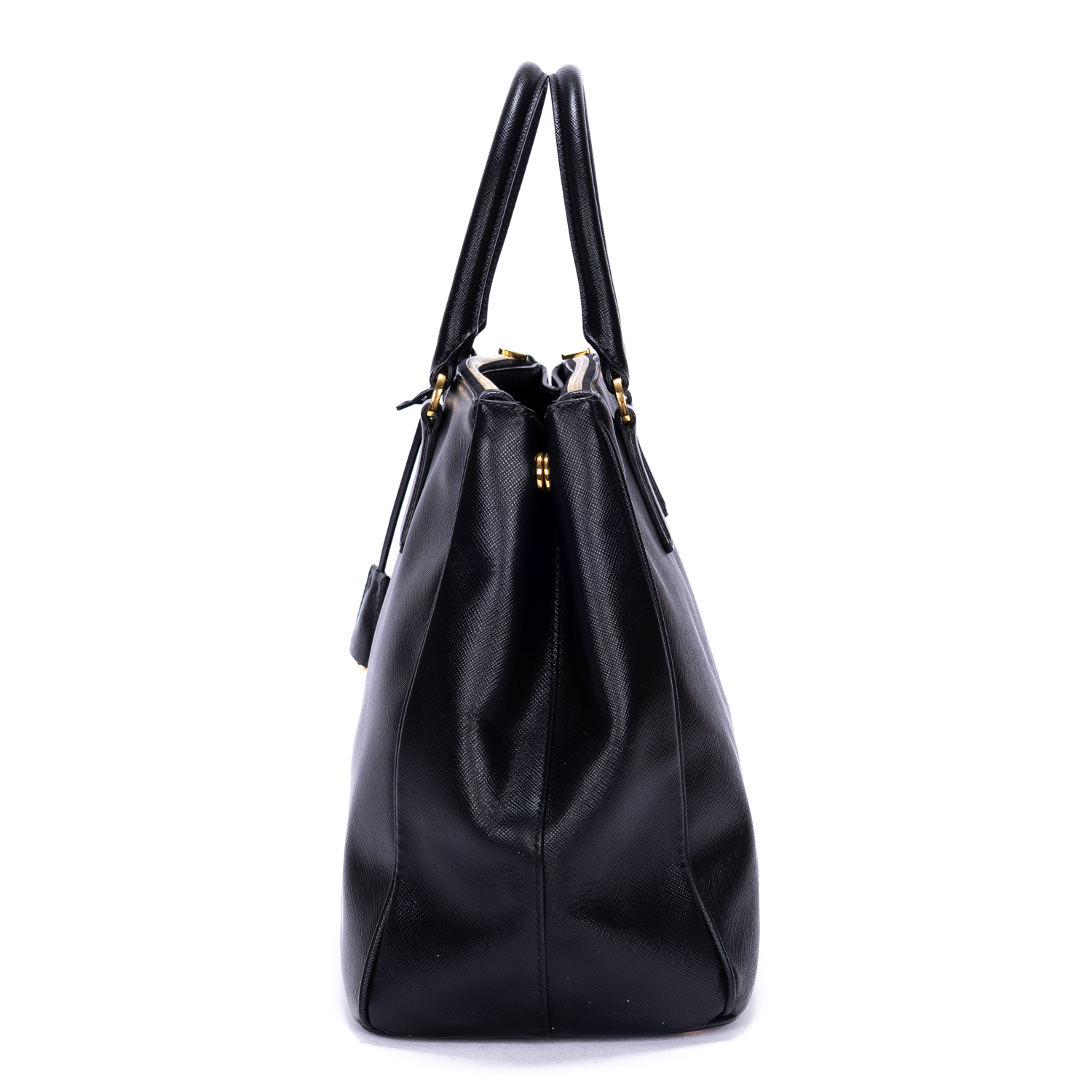 Prada Handbag Double Zip Galleria Tote in Black Saffiano Leather and Gold hardware. The product is in Perfect Condition (AA).