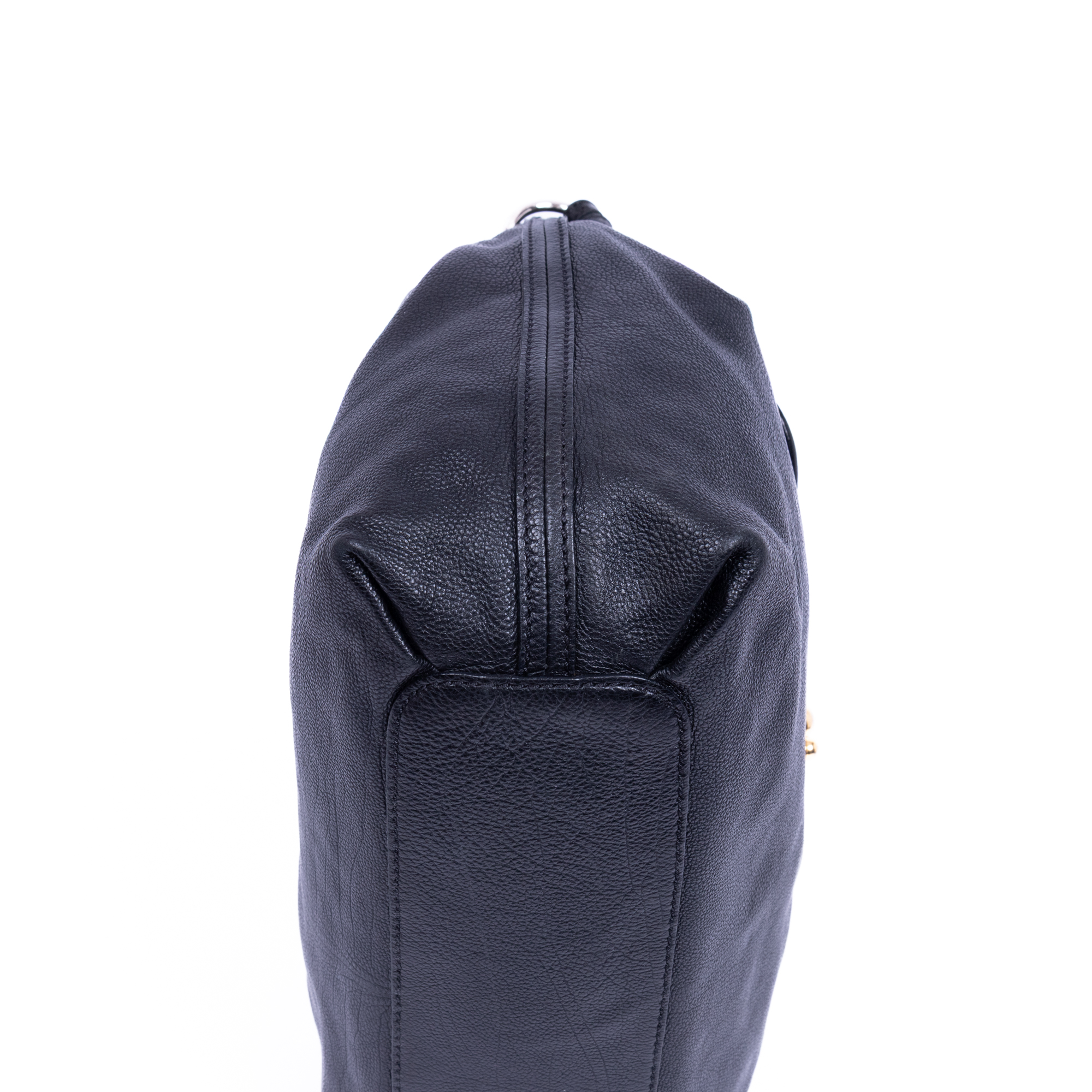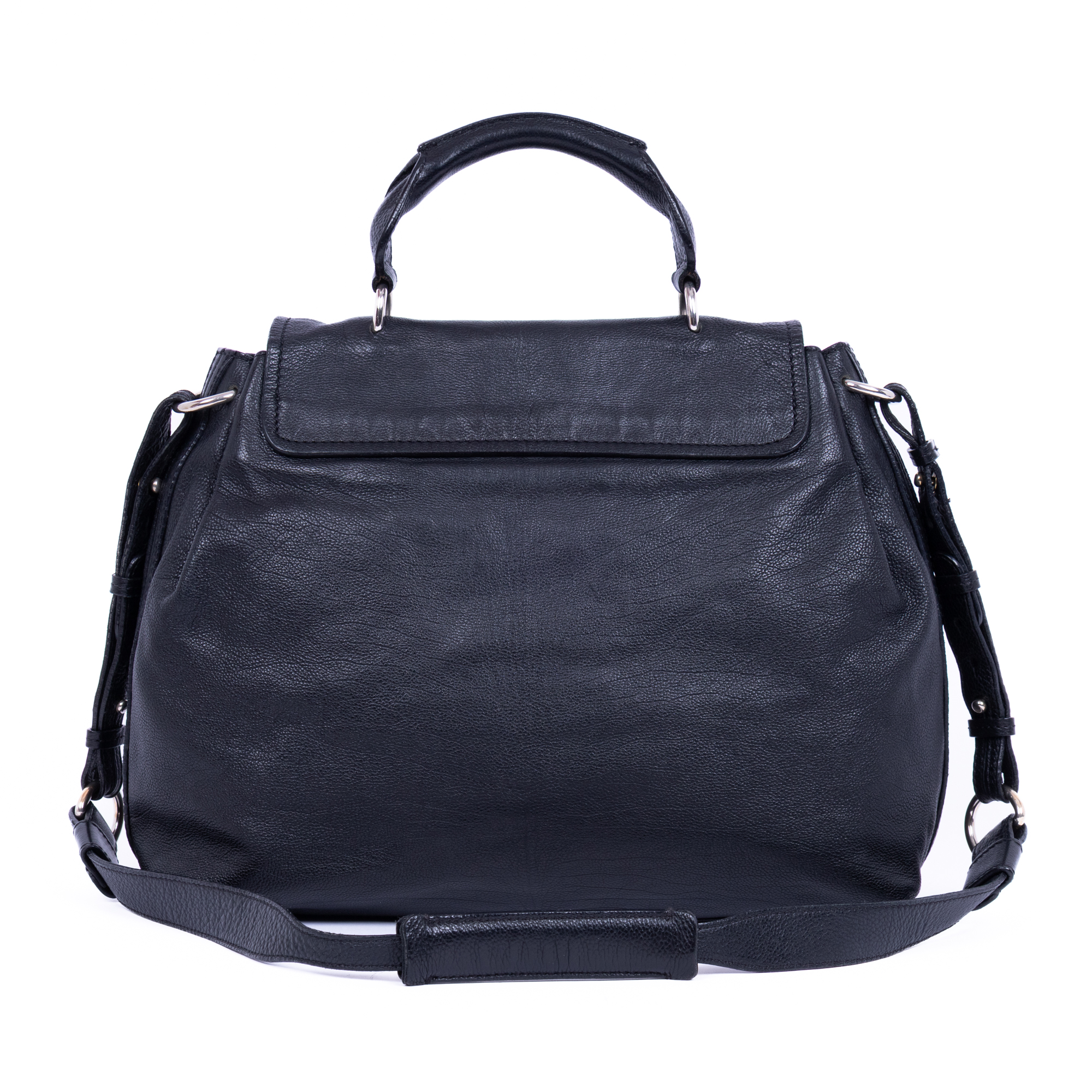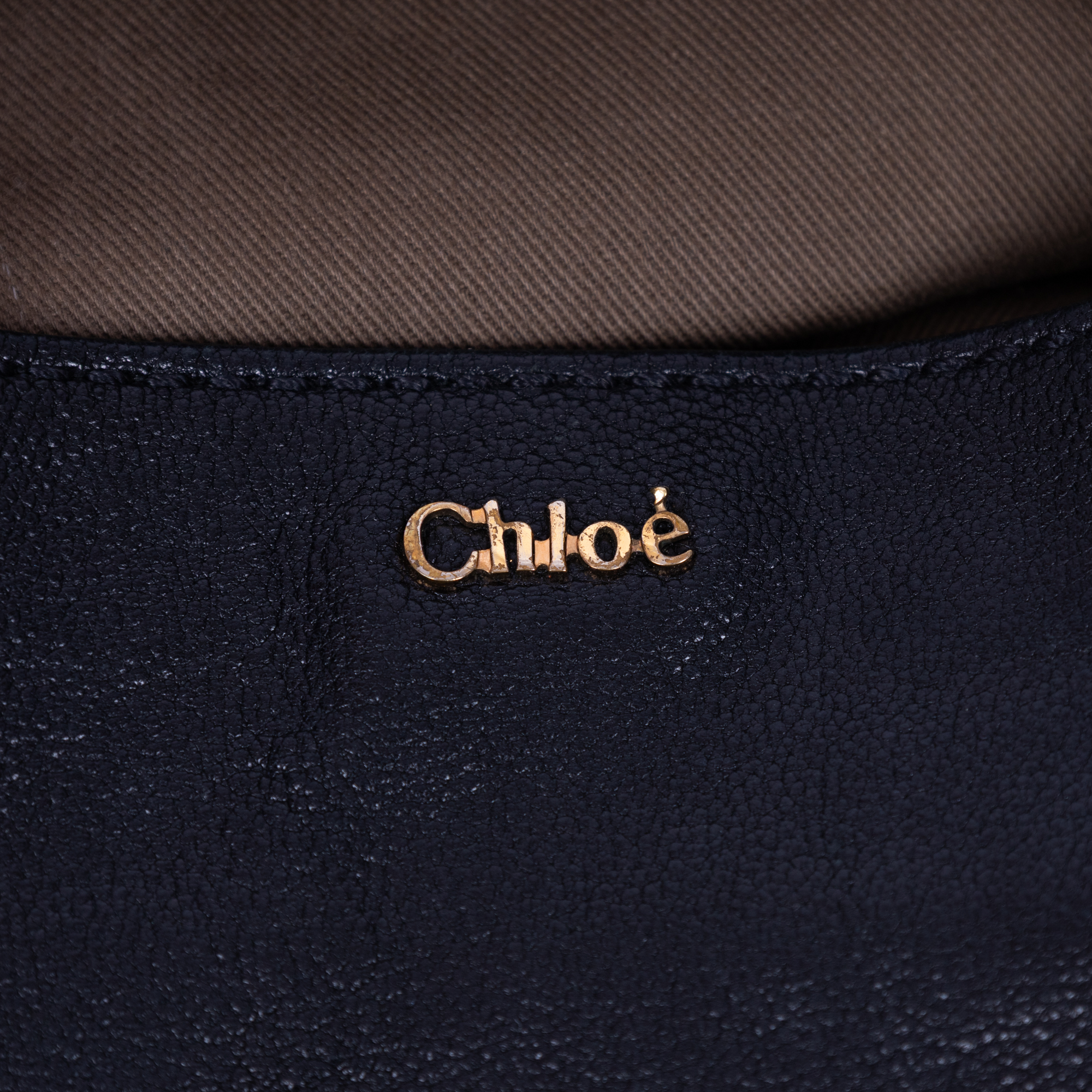 Chloé Handbag Elsie Satchel in Dark Blue Calfskin Grained Leather and Gold hardware. The product is in Excellent Condition (A).