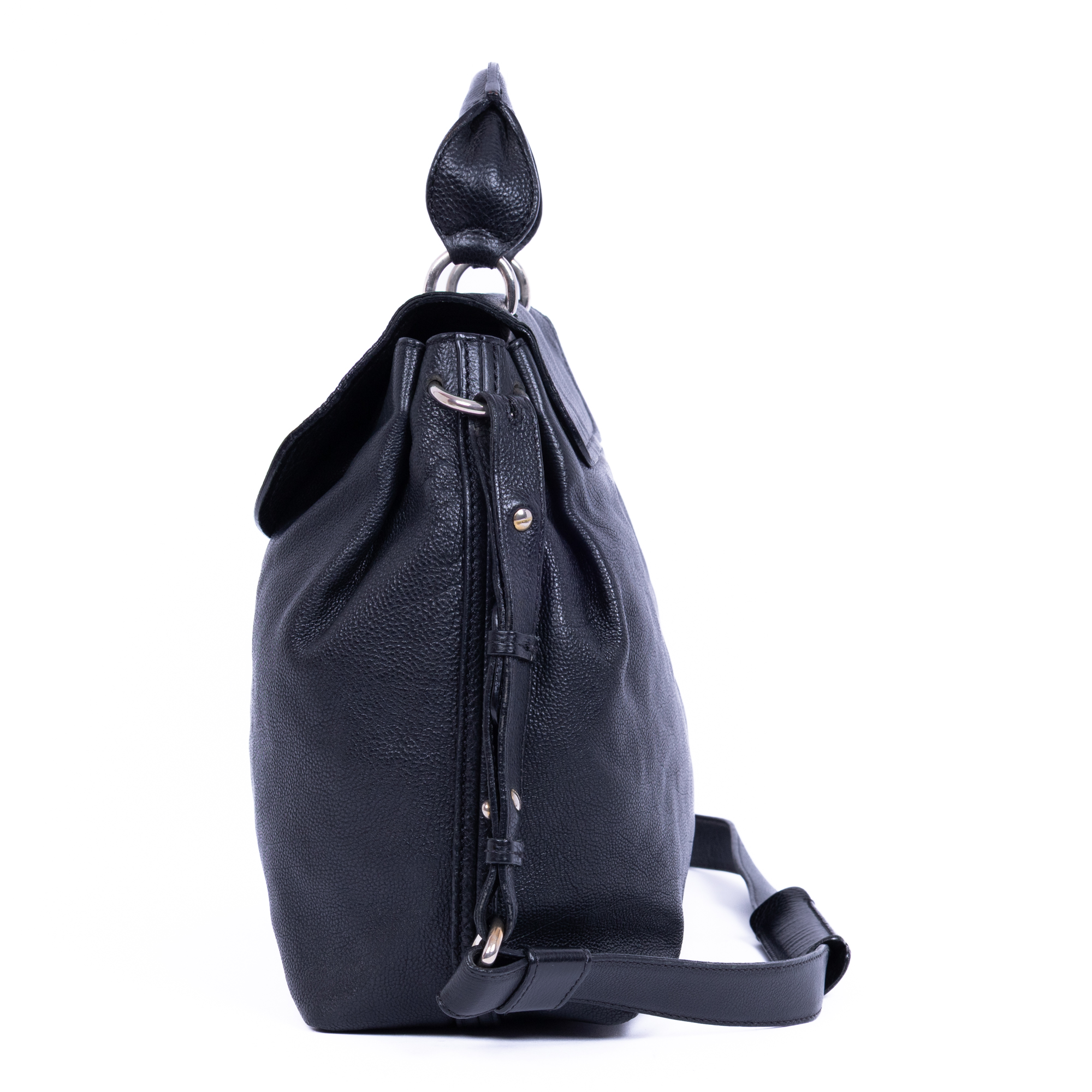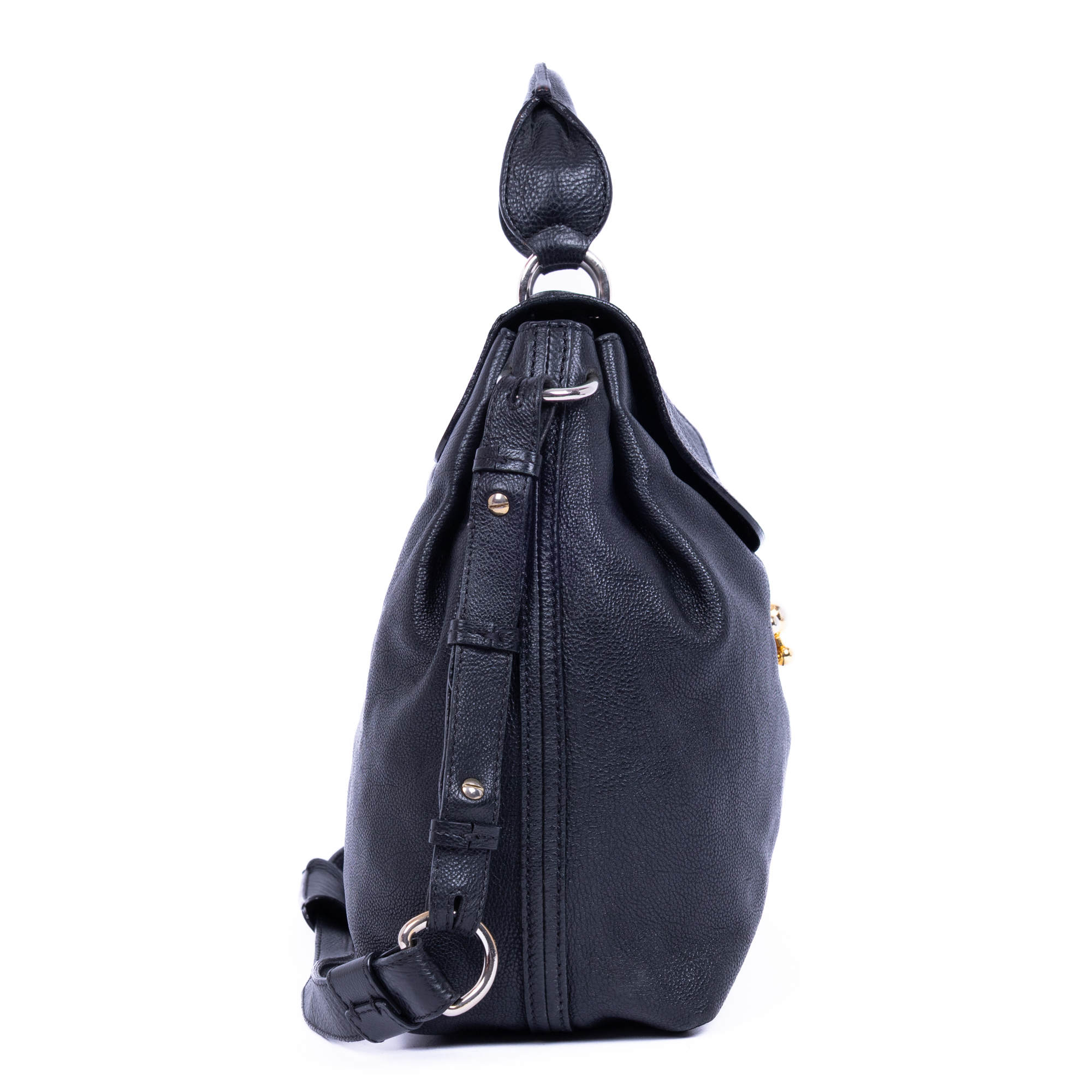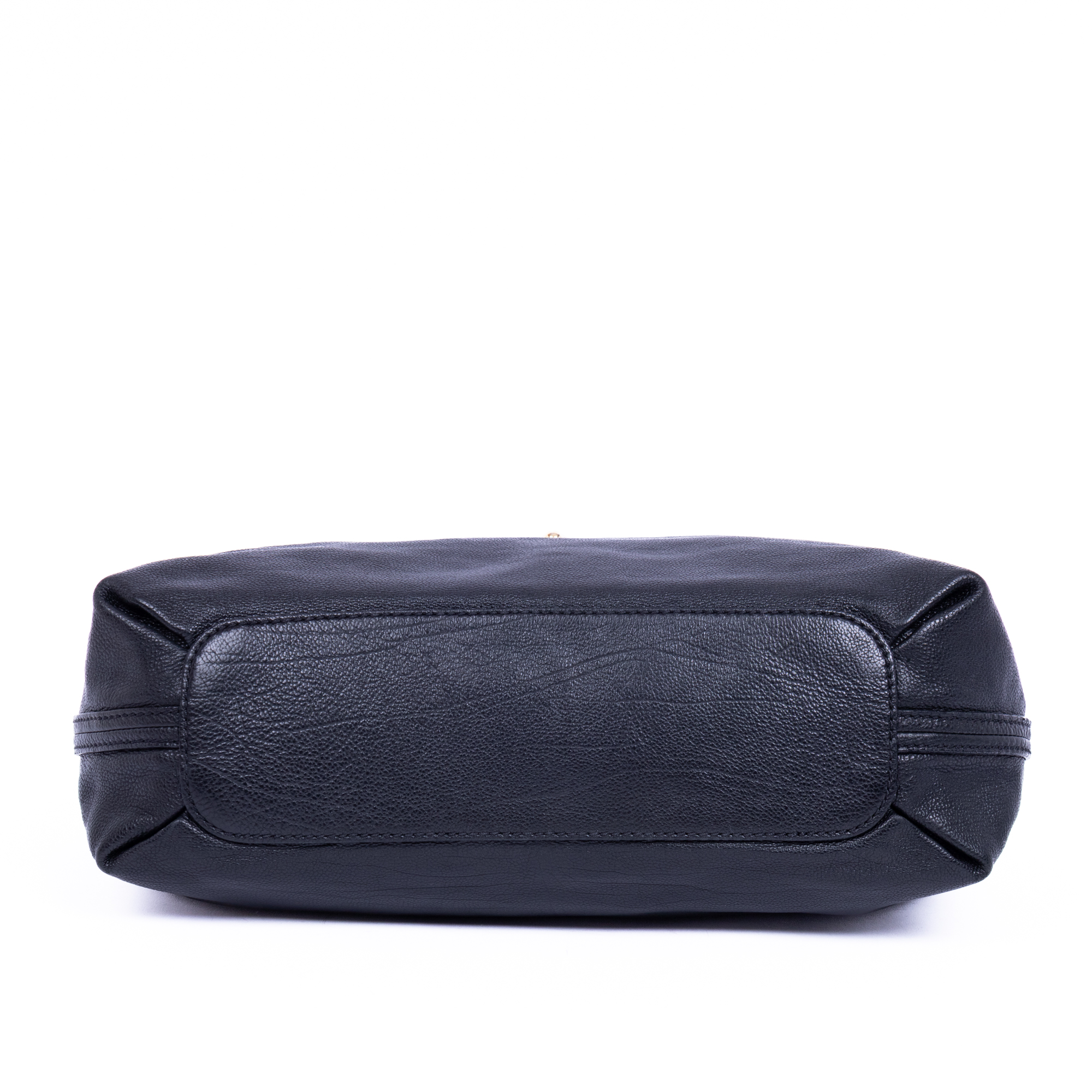 Chloé Handbag Elsie Satchel in Dark Blue Calfskin Grained Leather and Gold hardware. The product is in Excellent Condition (A).