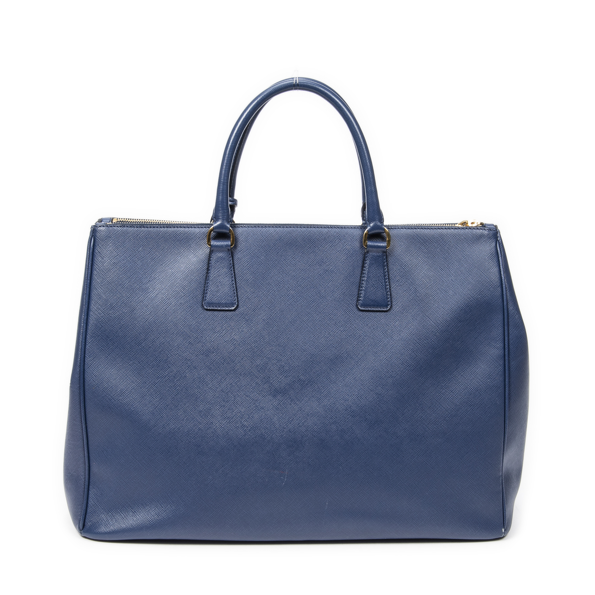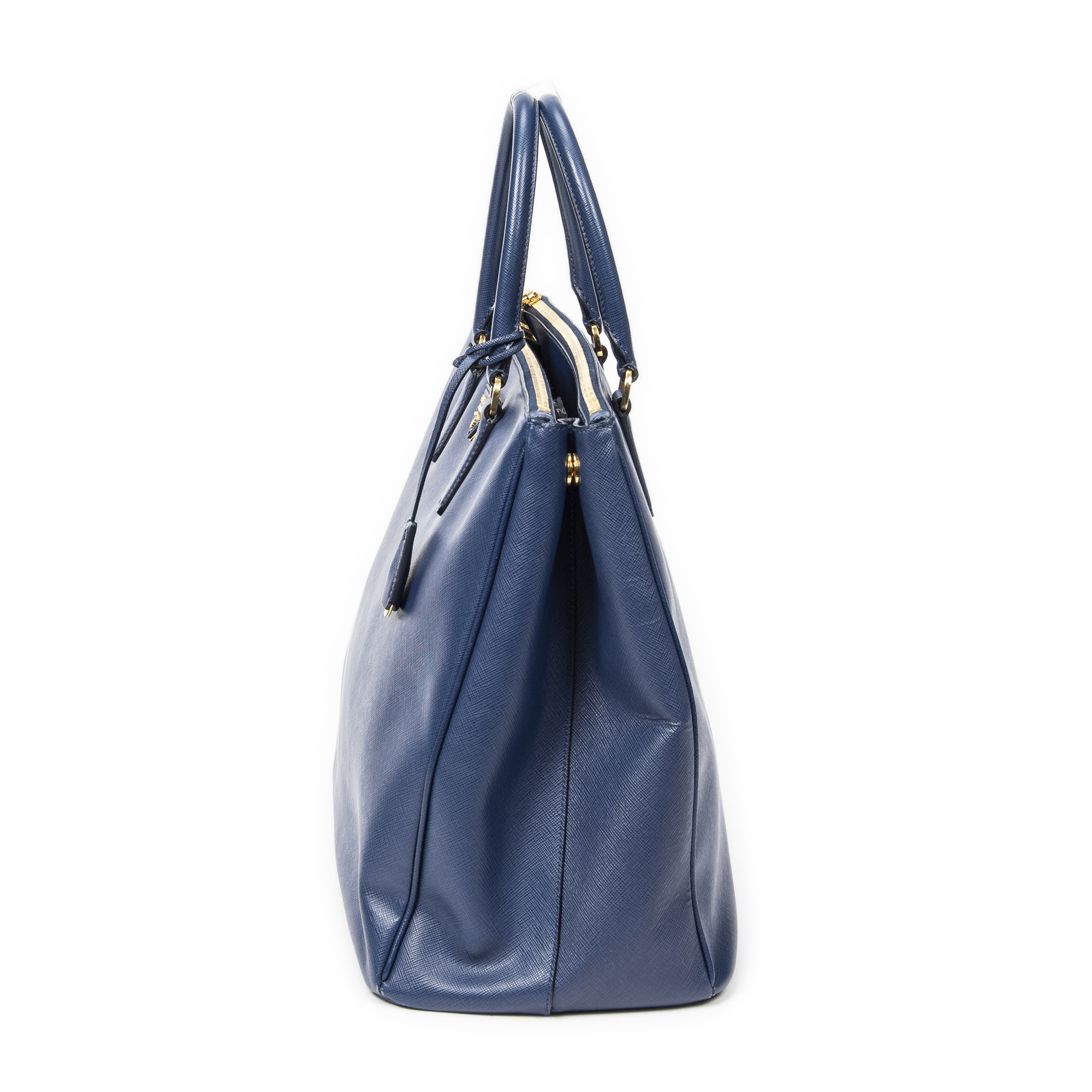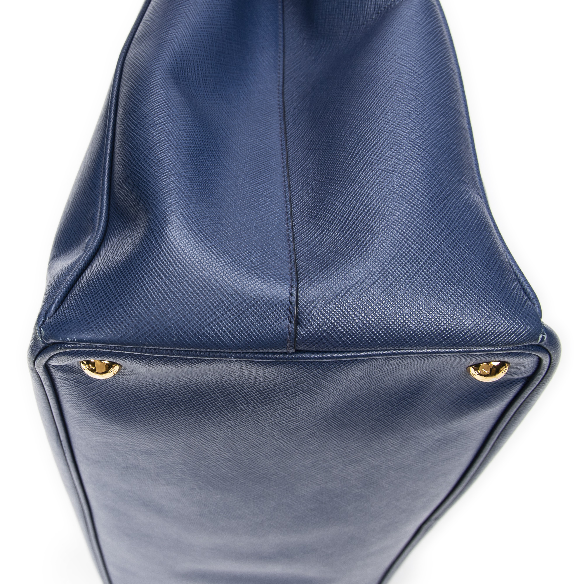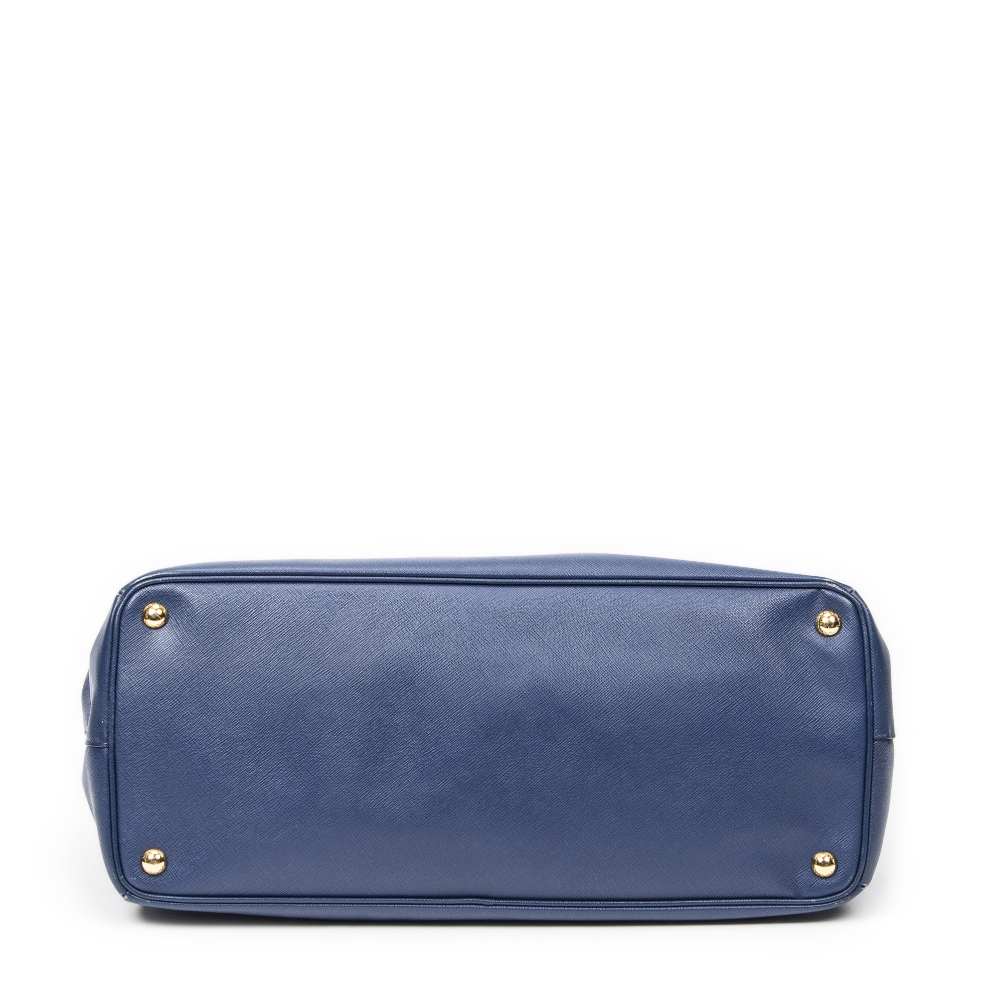 Prada Handbag Extra Large Galleria Double Zip Tote in Blue Saffiano Leather and Gold hardware. The product is in Excellent Condition (A).