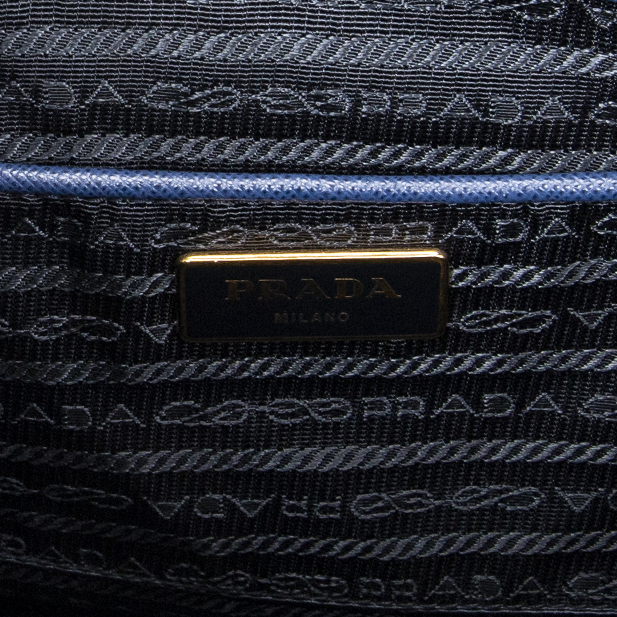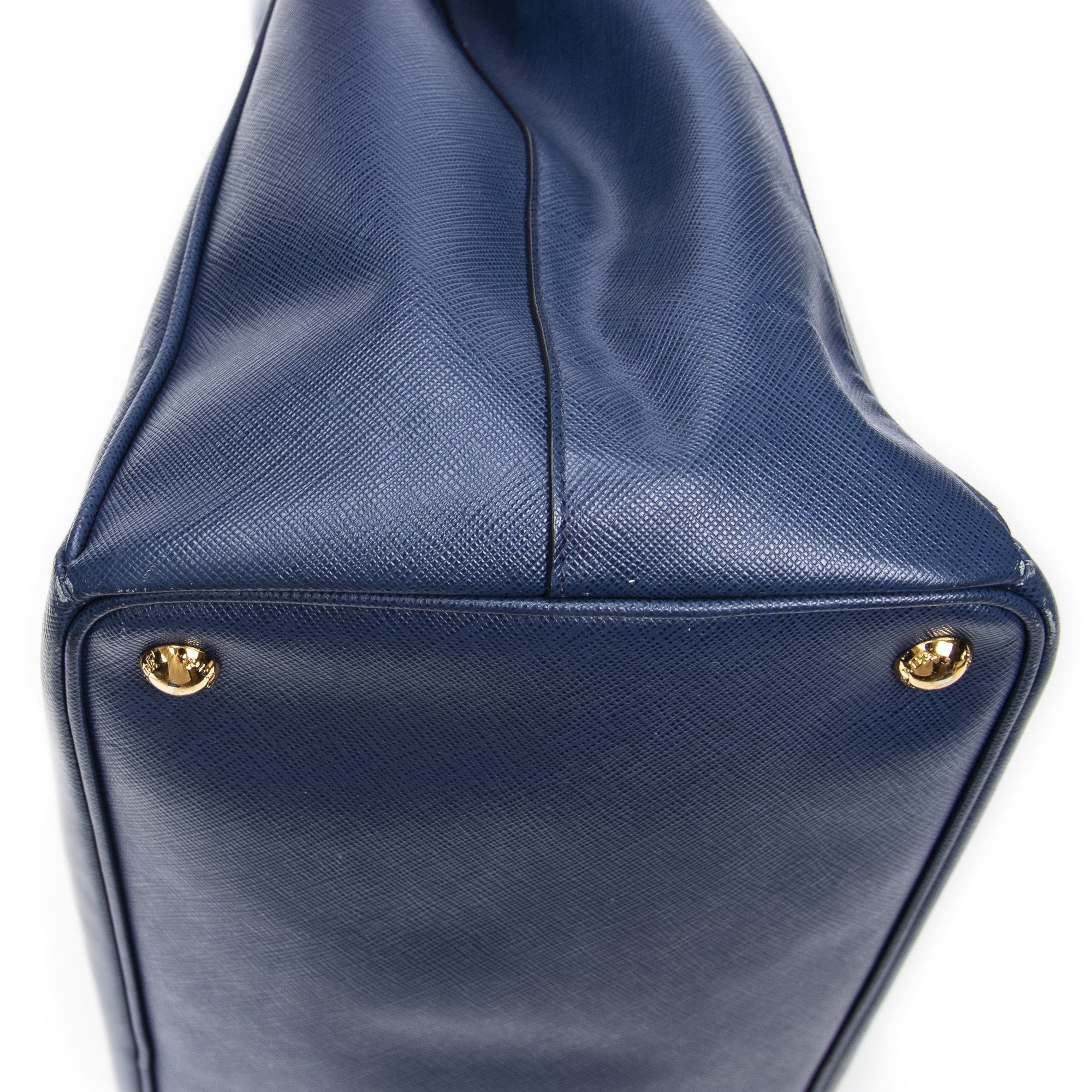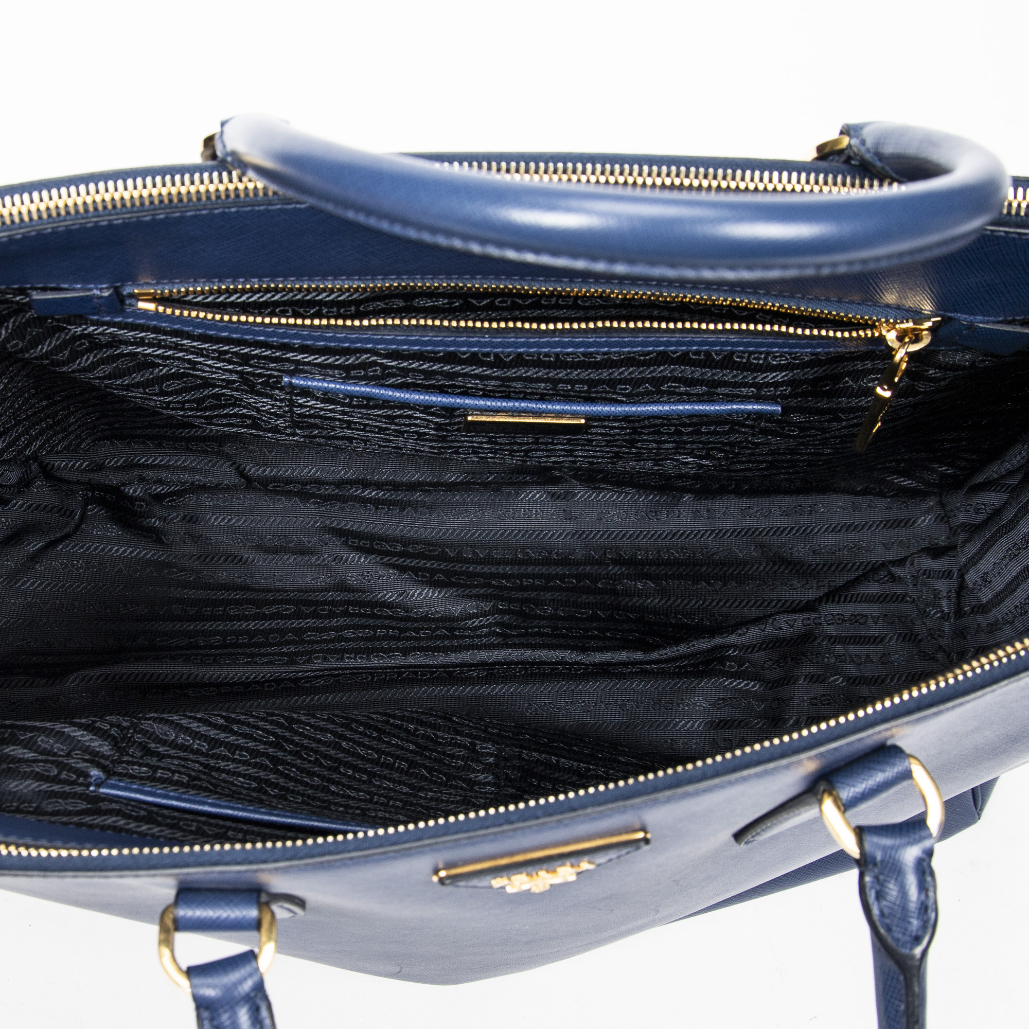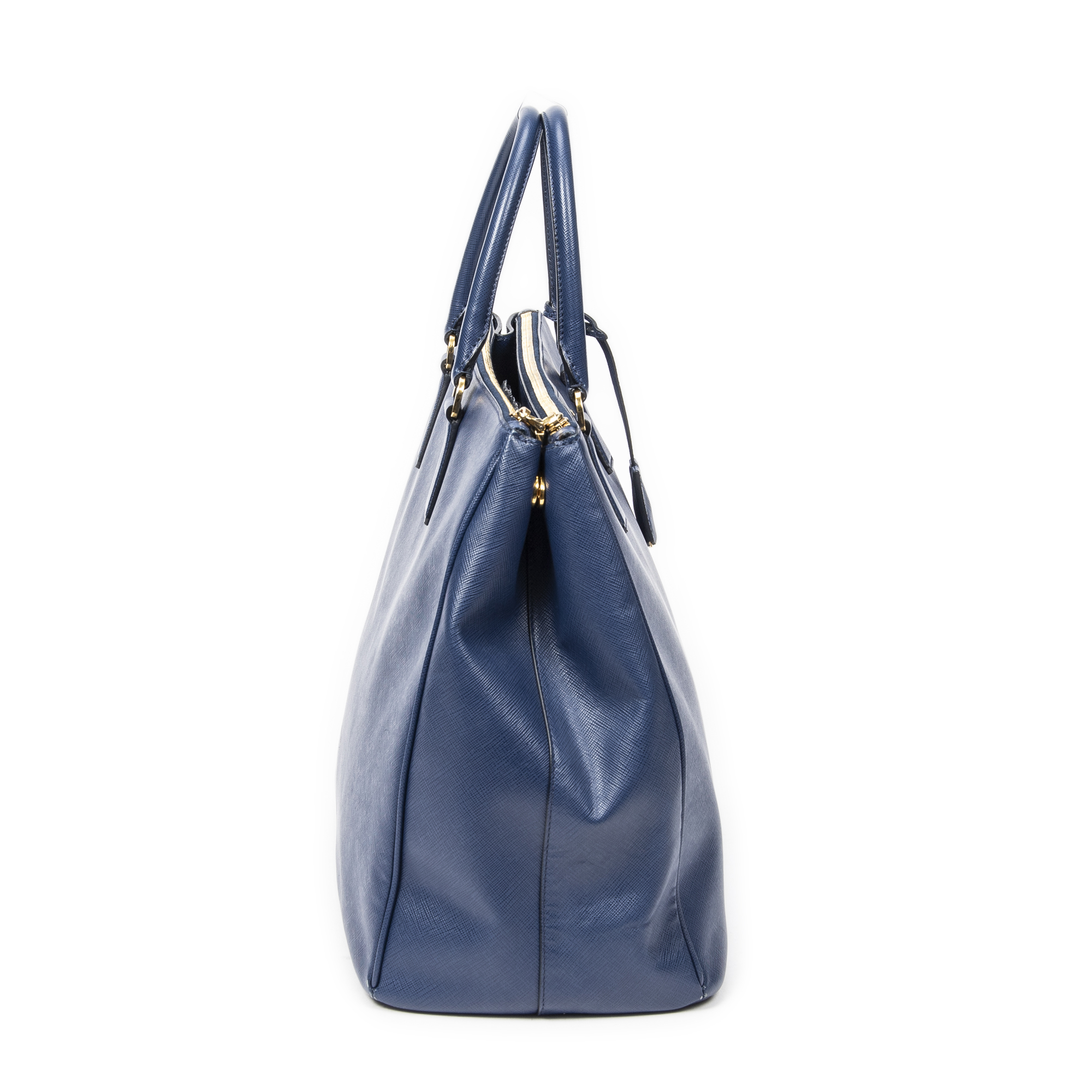 Prada Handbag Extra Large Galleria Double Zip Tote in Blue Saffiano Leather and Gold hardware. The product is in Excellent Condition (A).