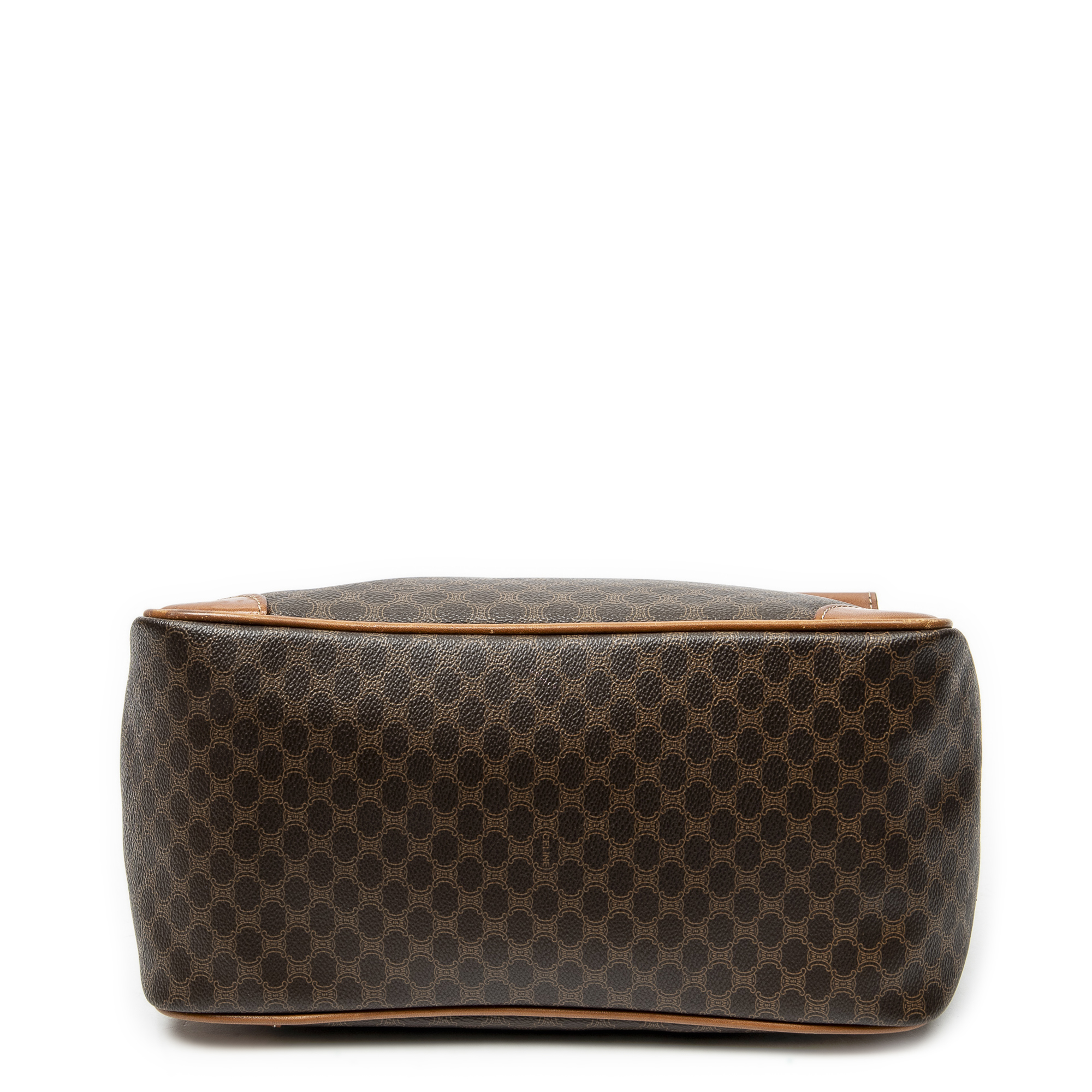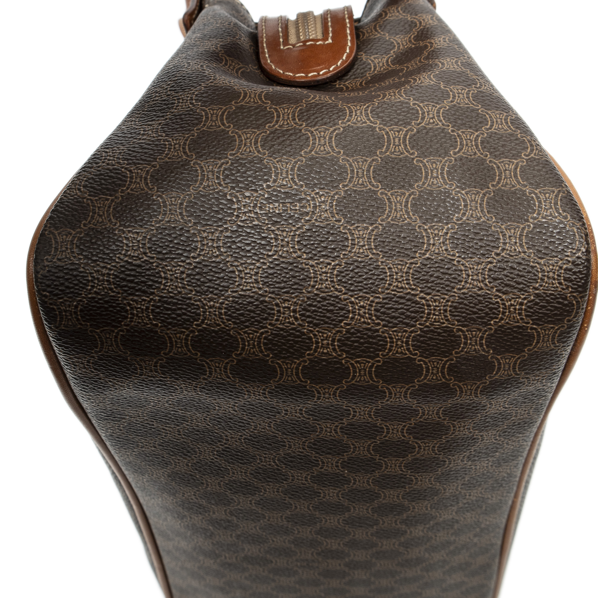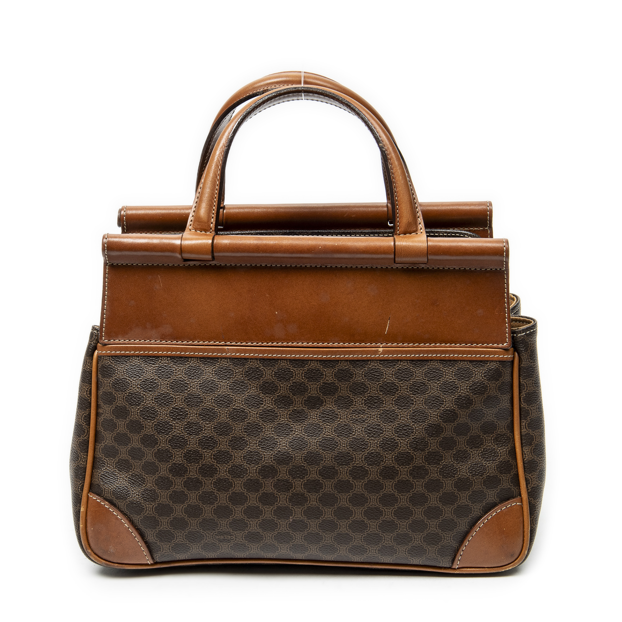 Celine Handbag Frame Buckle Tote in Brown Macadam Coated Canvas and Gold hardware. The product is in Very Good Condition (AB).