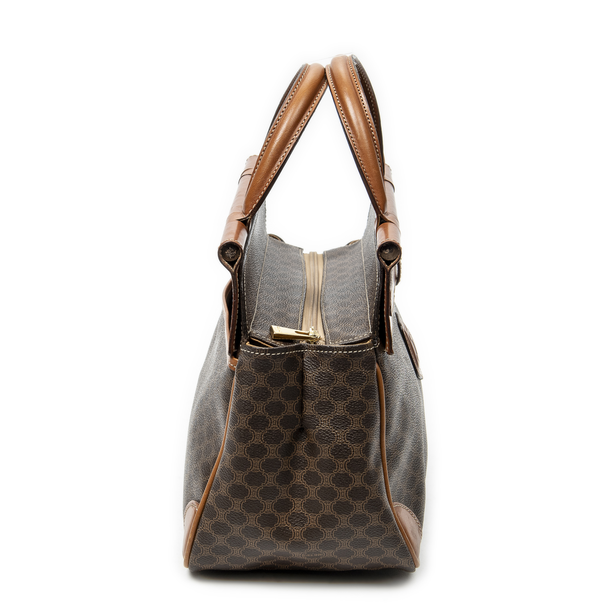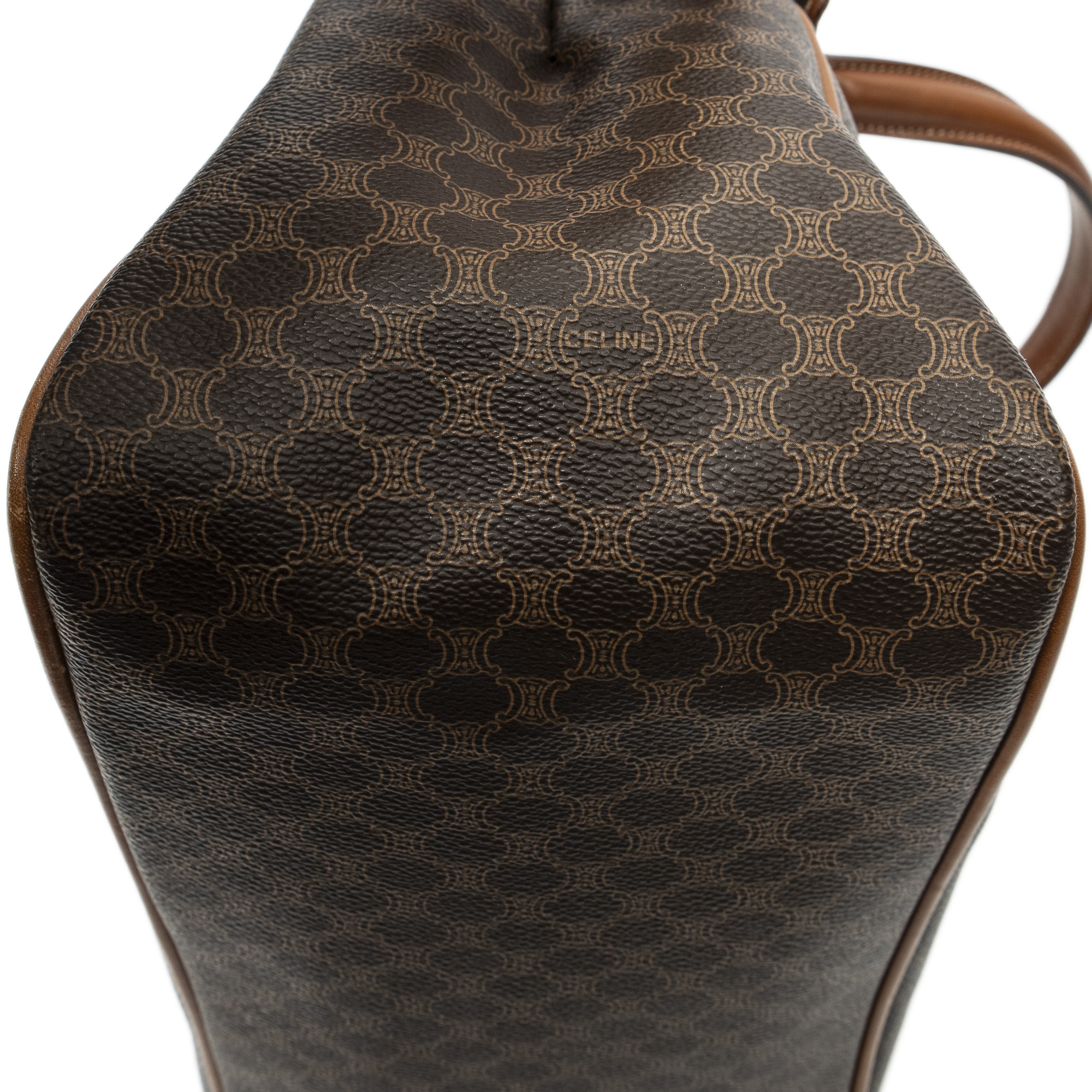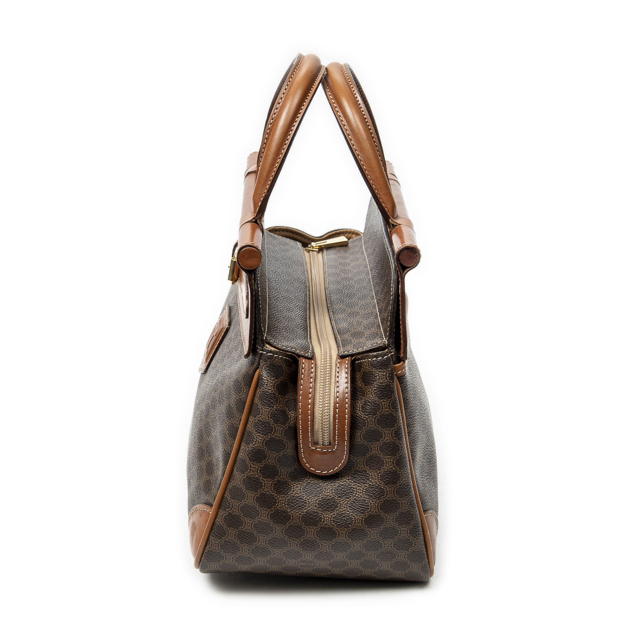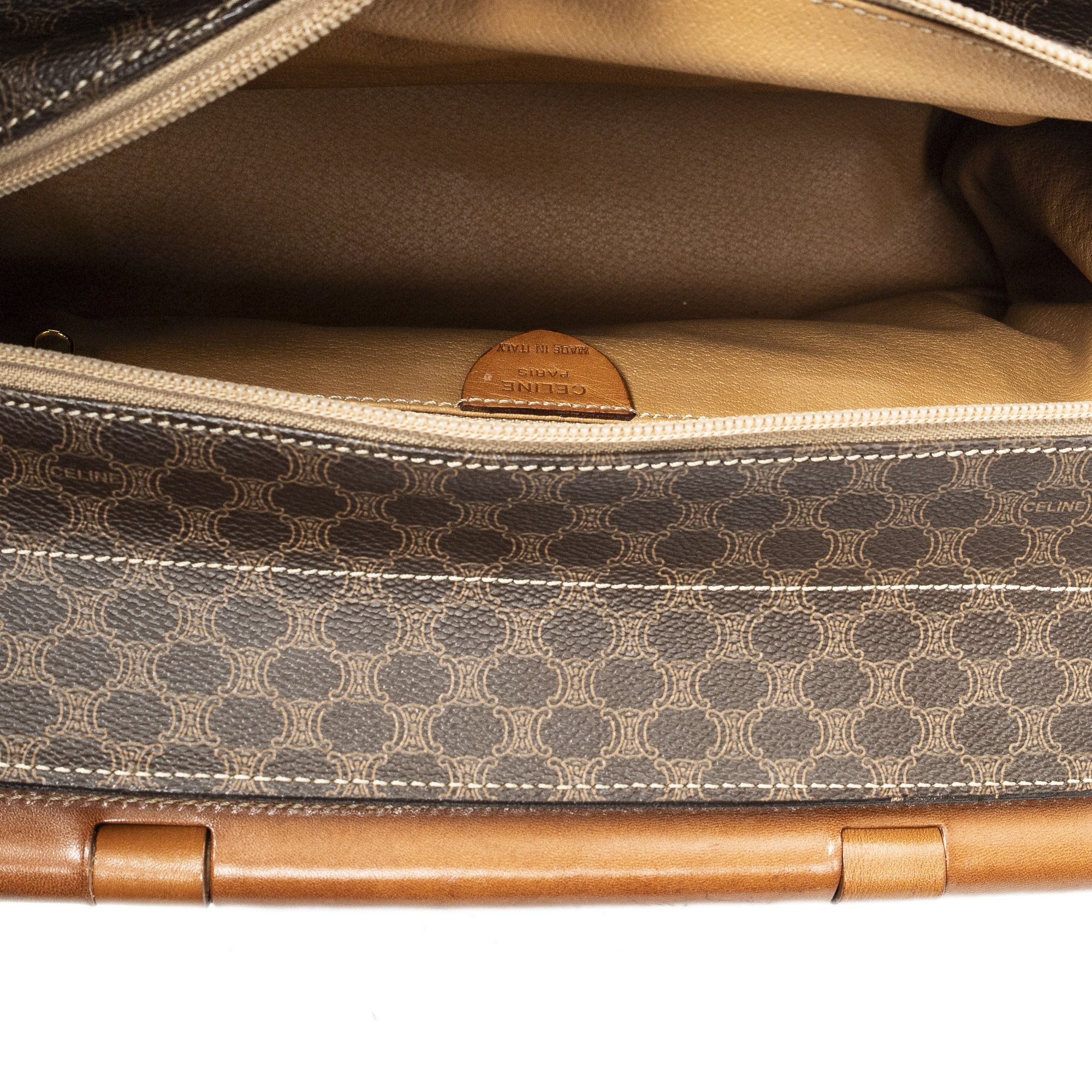 Celine Handbag Frame Buckle Tote in Brown Macadam Coated Canvas and Gold hardware. The product is in Very Good Condition (AB).