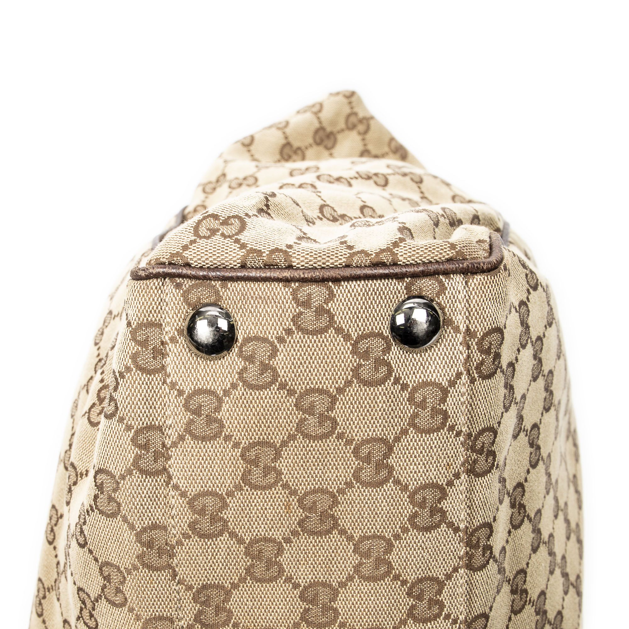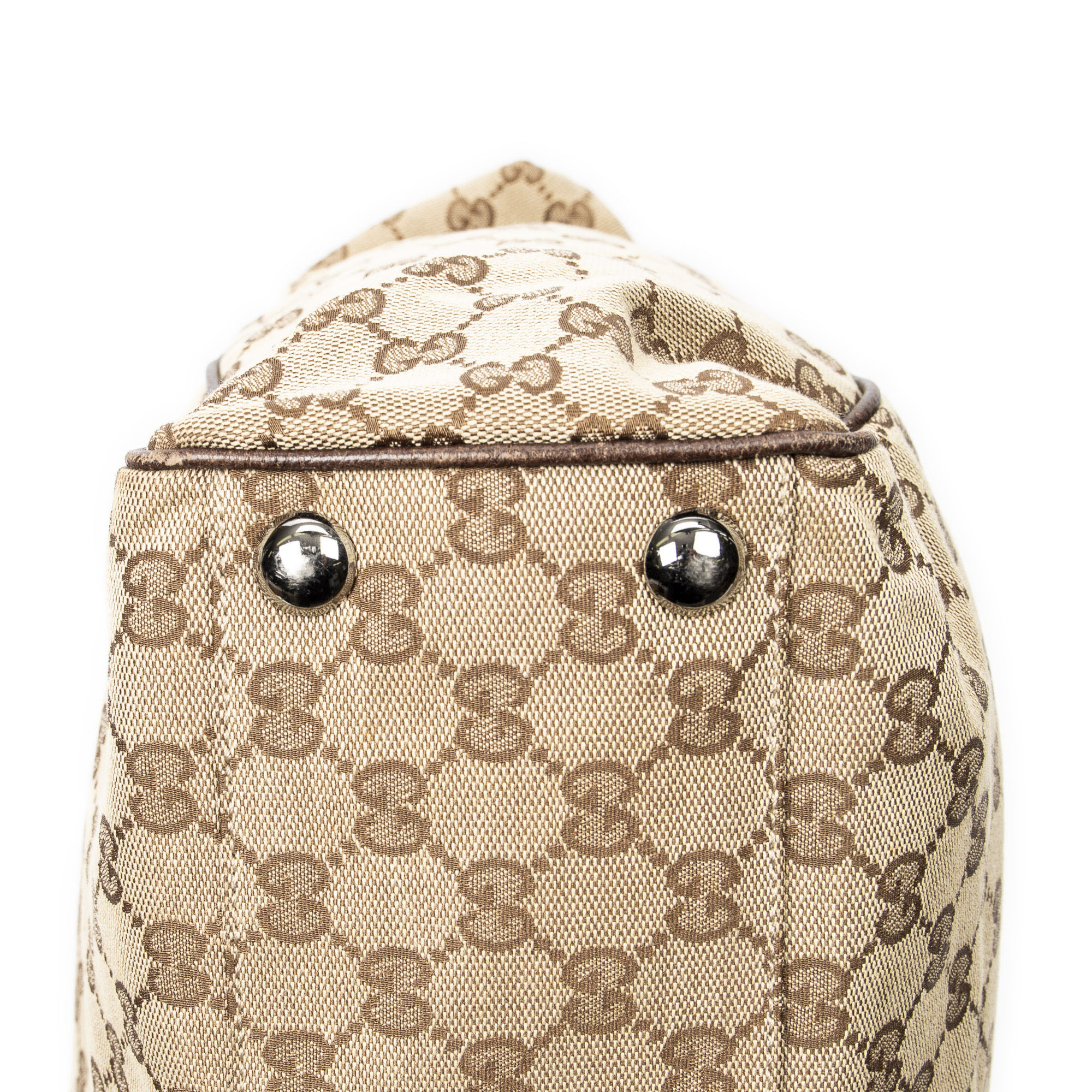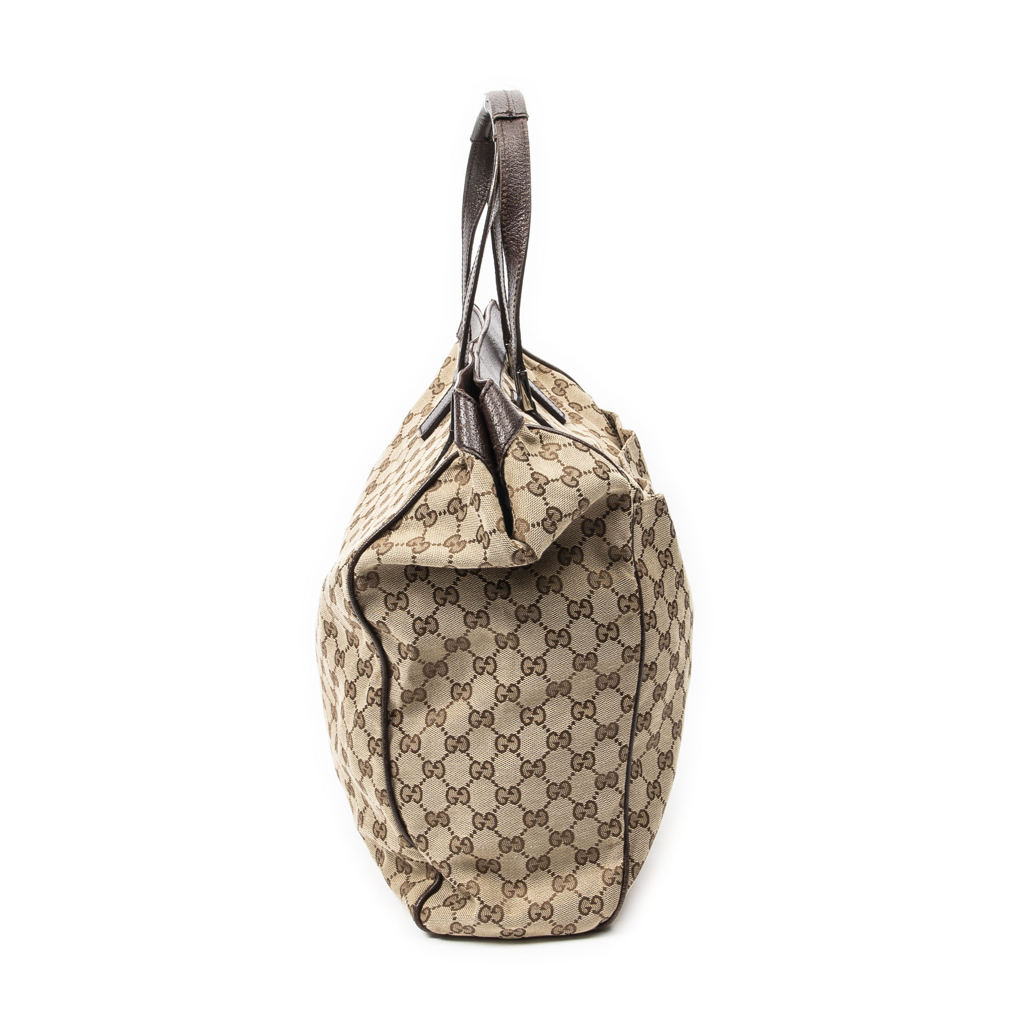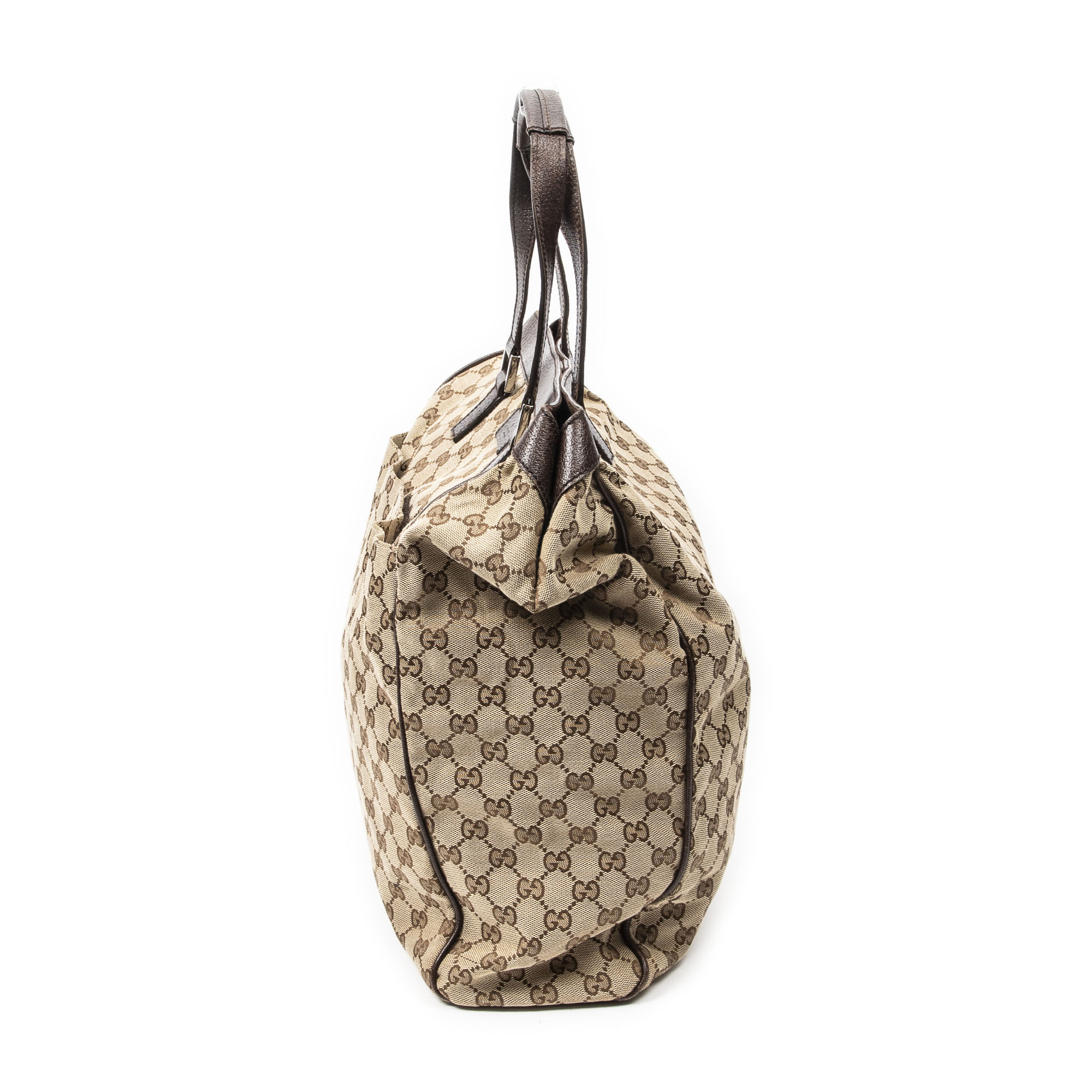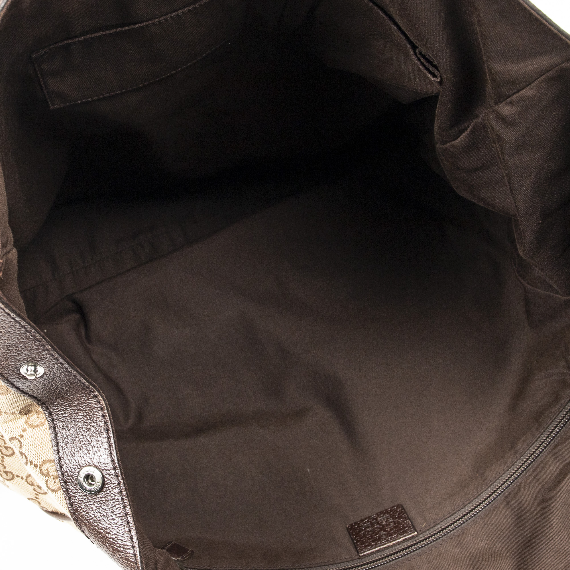 Gucci Handbag Front Pocket Shopping Tote in Brown/Beige Monogrammed Canvas and Silver hardware. The product is in Excellent Condition (A).