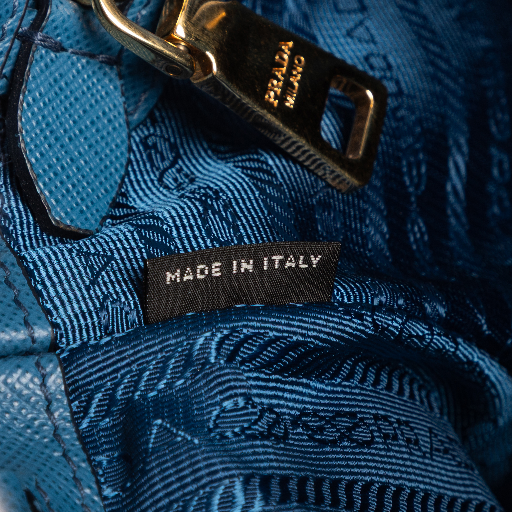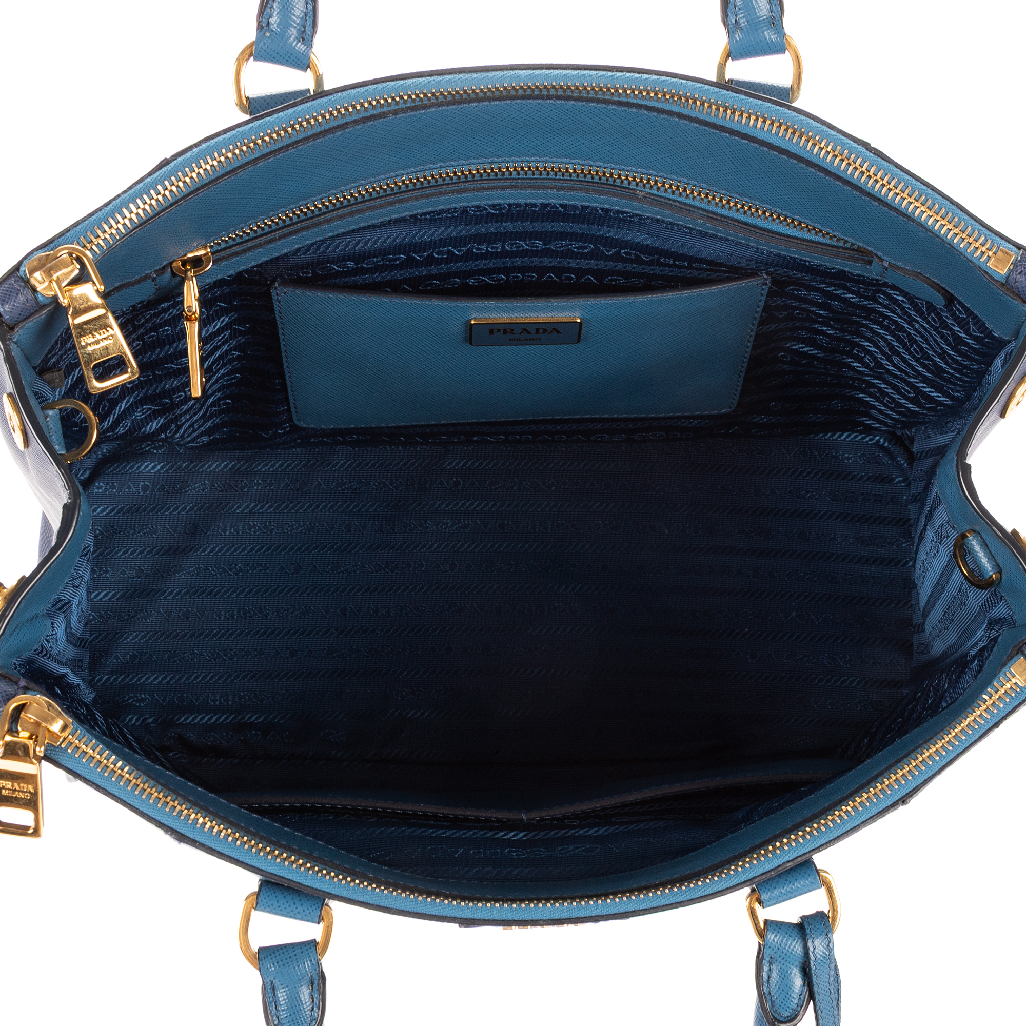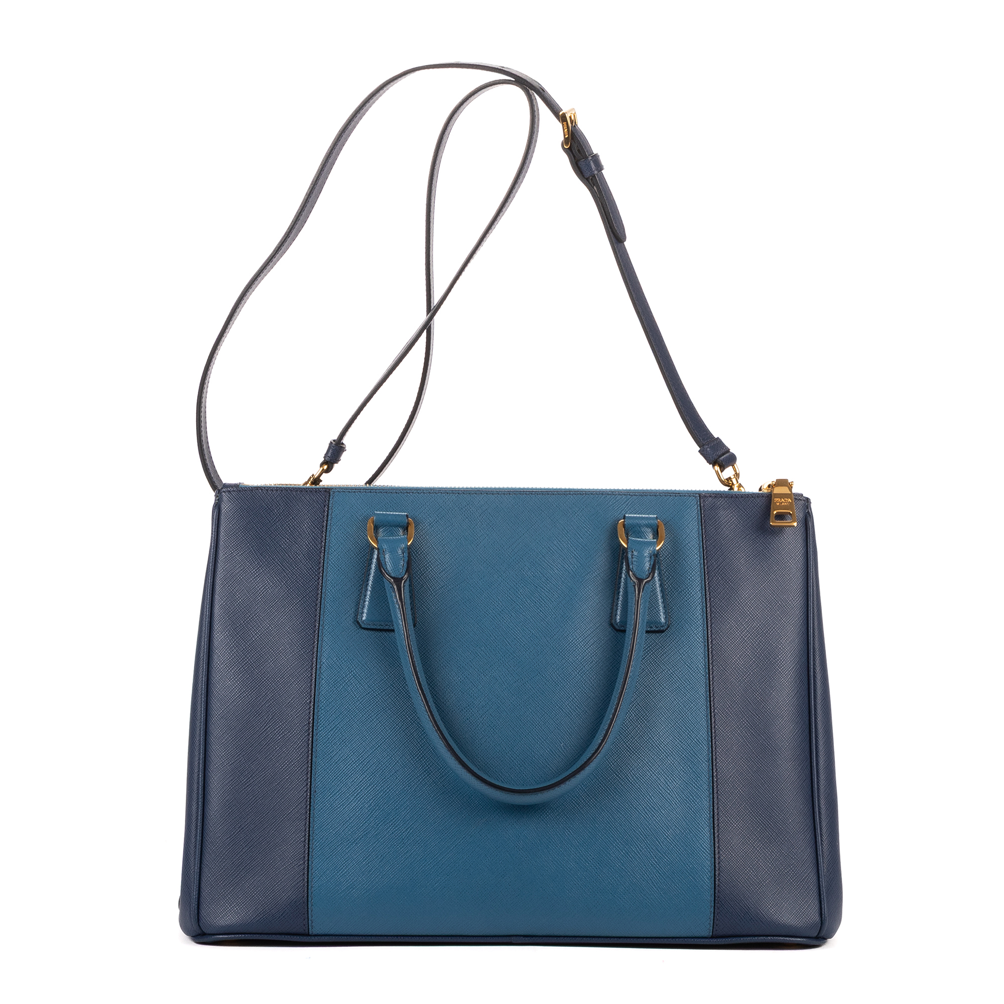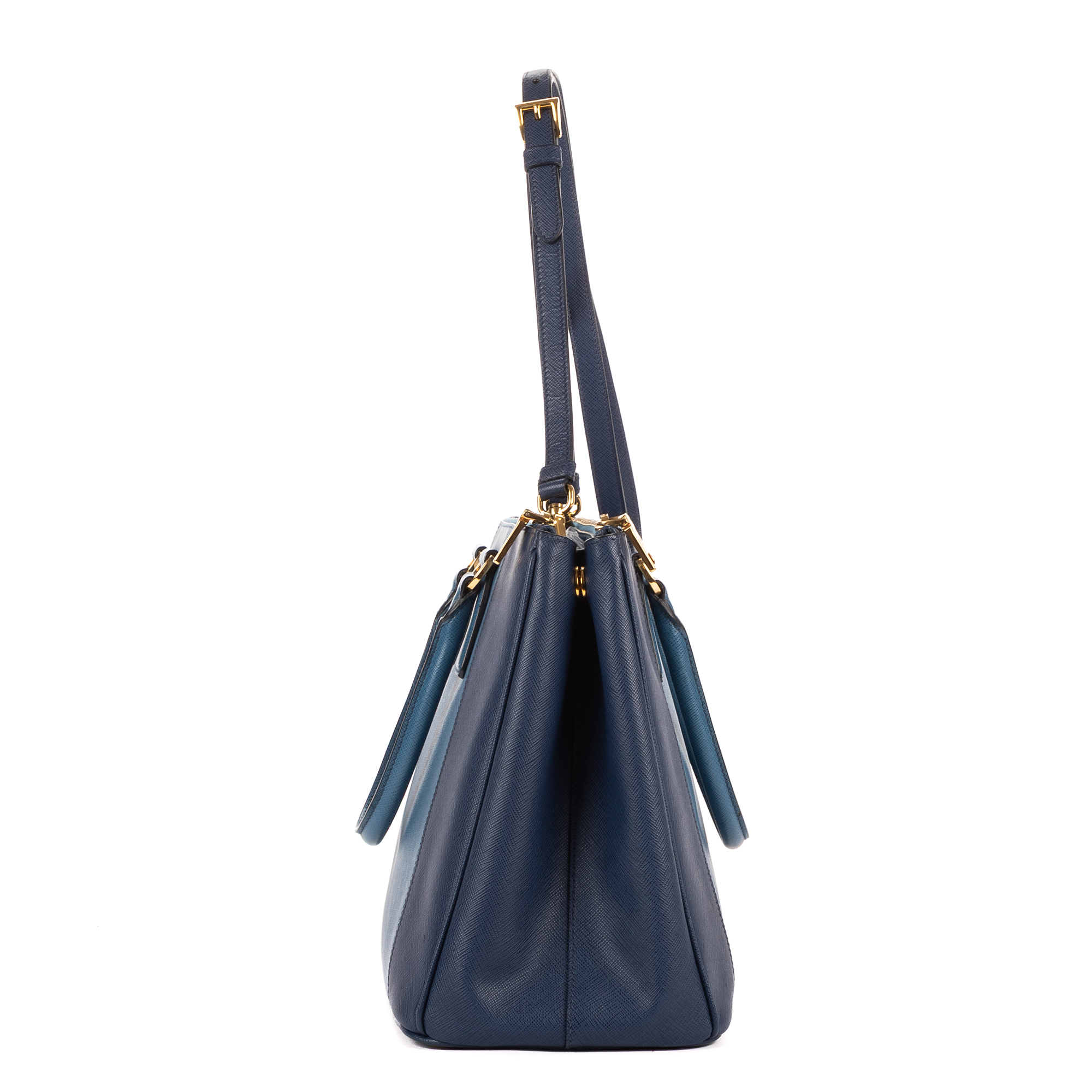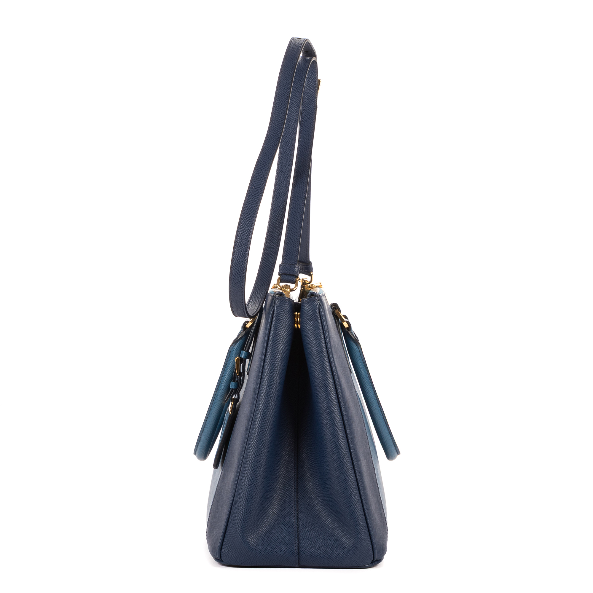 Prada Handbag Galleria Medium in Navy/Blue Saffiano and Gold hardware. The product is in Perfect Condition (AA).