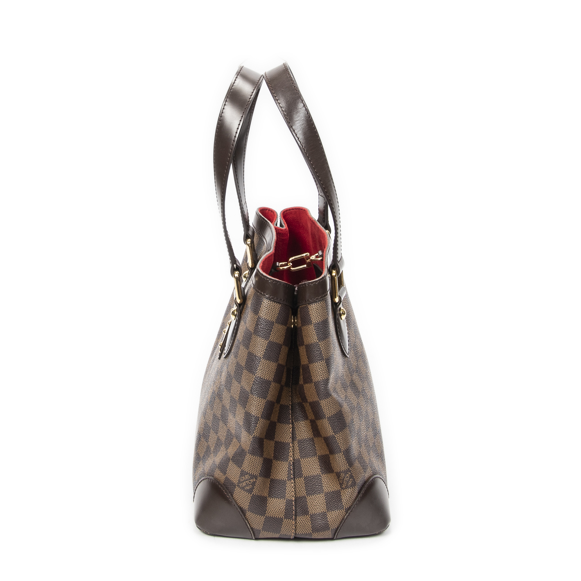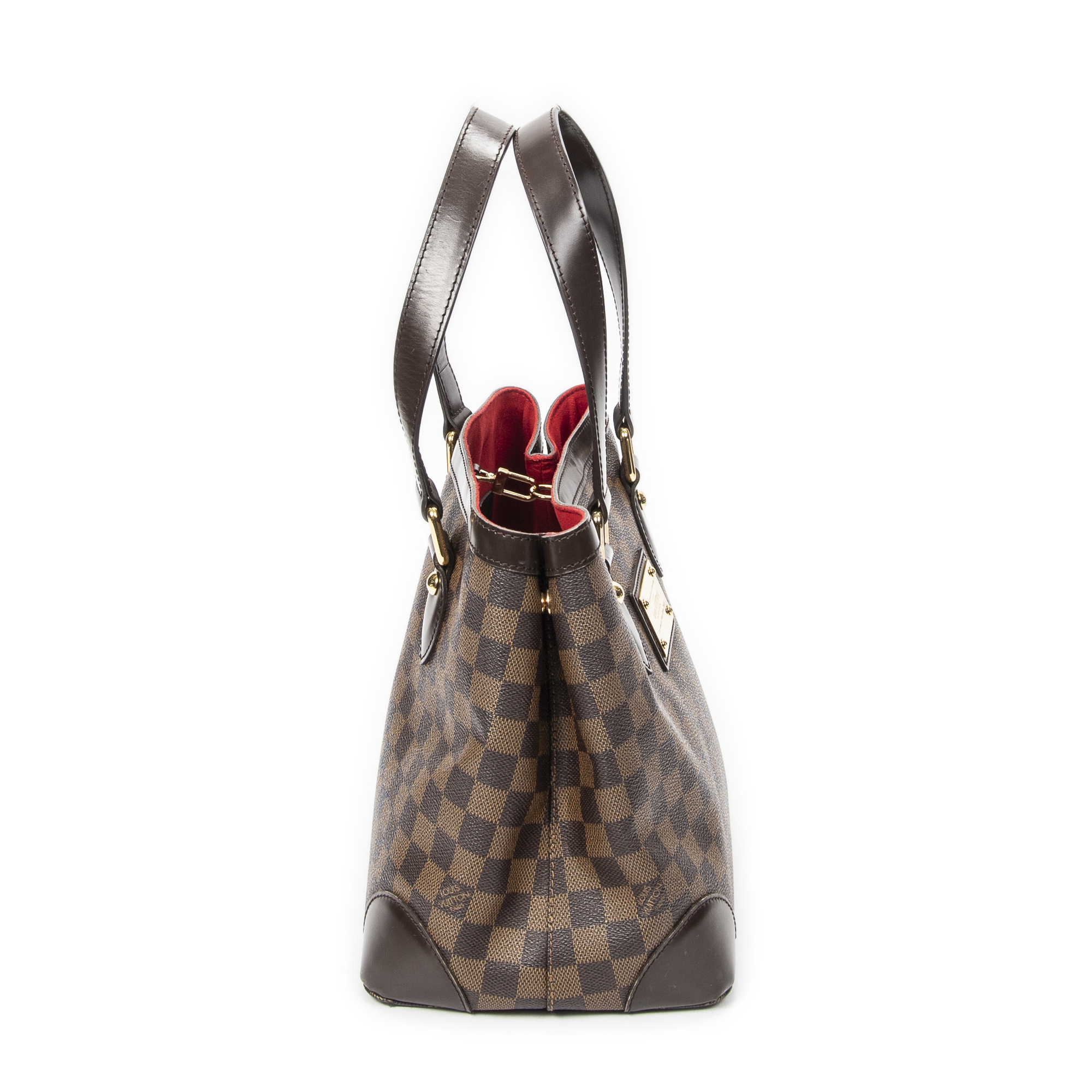 Louis Vuitton Handbag Hampstead PM in Brown Damier Ebene and Golden Brass hardware. The product is in Excellent Condition (A).