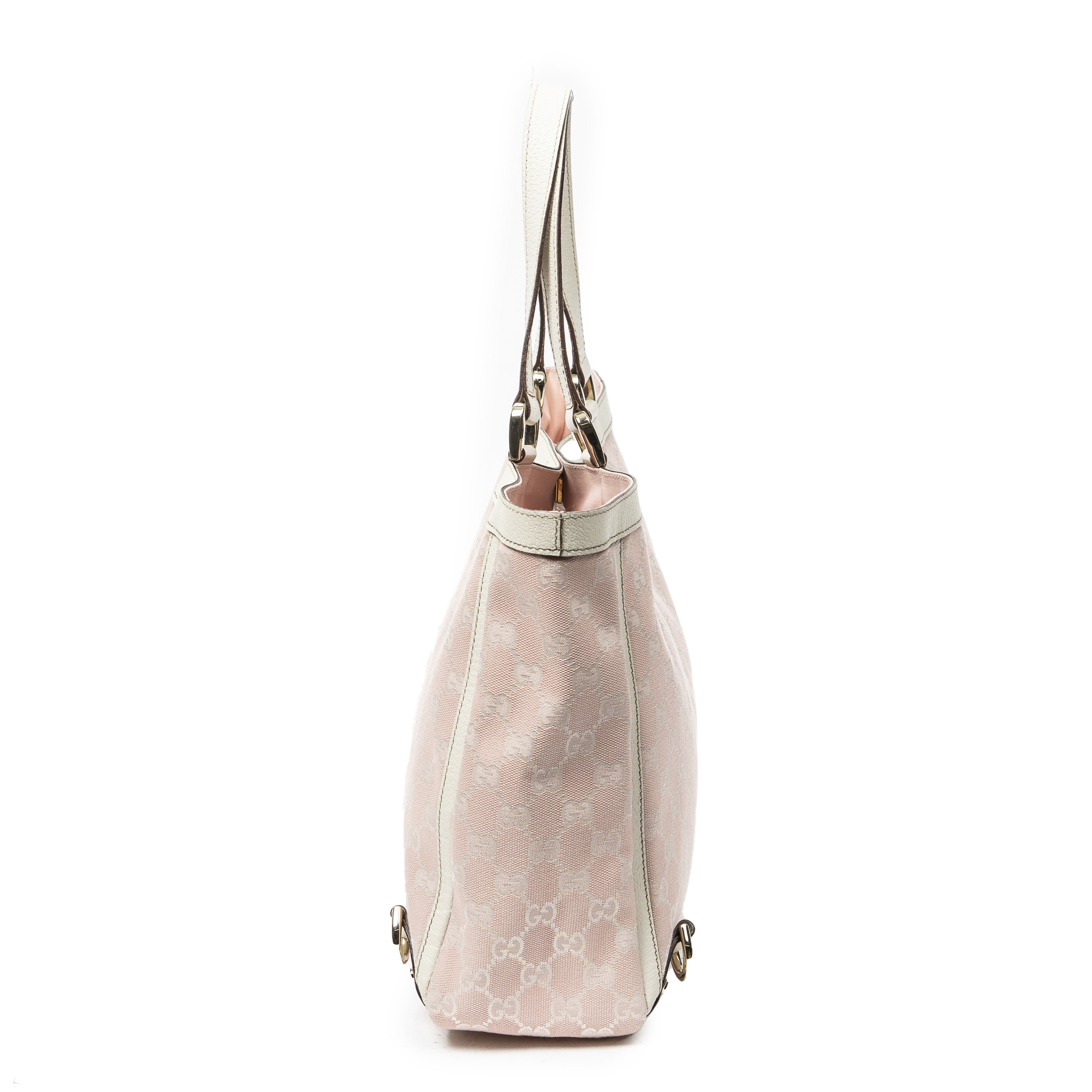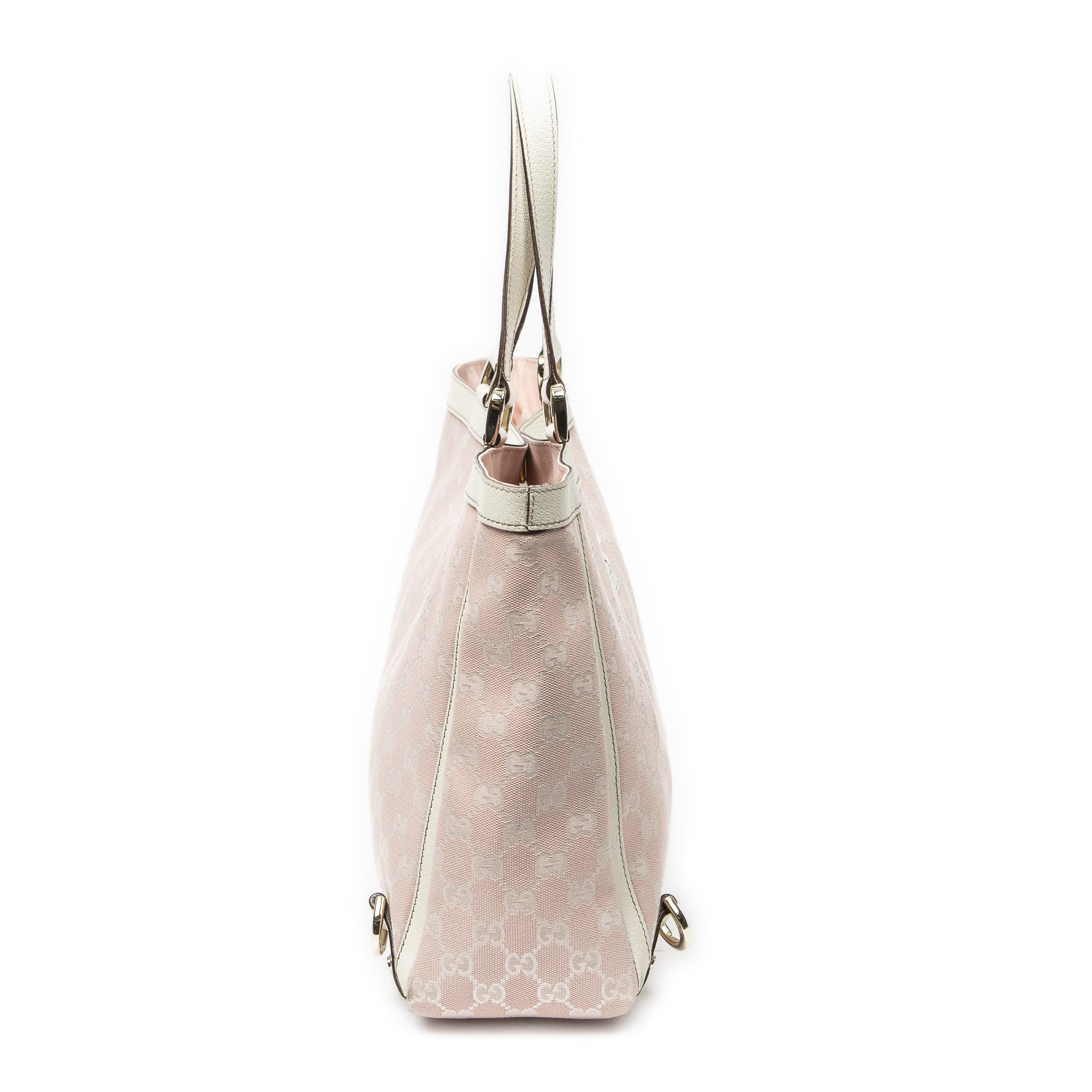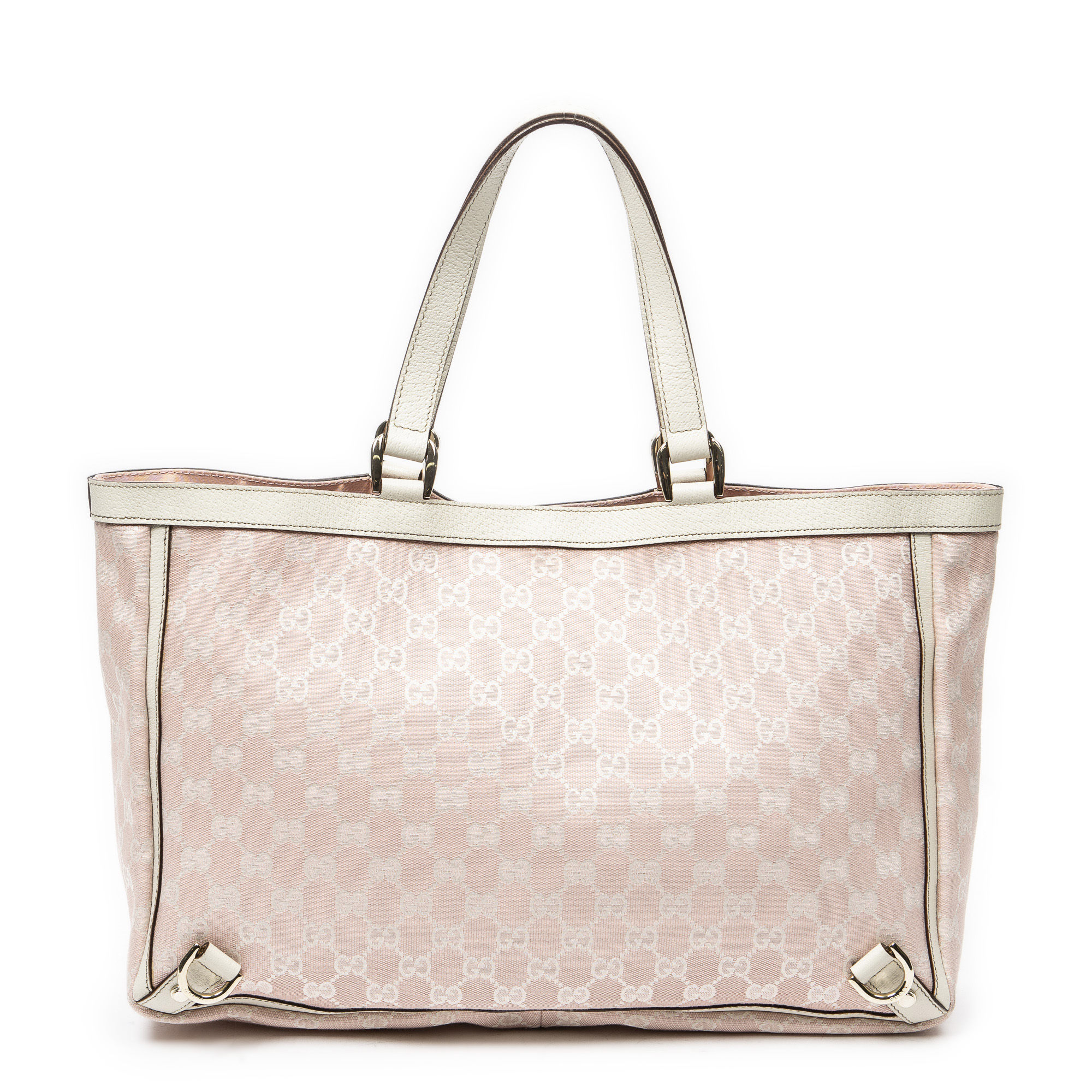 Gucci Handbag Large Abbey D-Ring Tote in Pink/Ivory Monogrammed Canvas and Gold hardware. The product is in Excellent Condition (A).