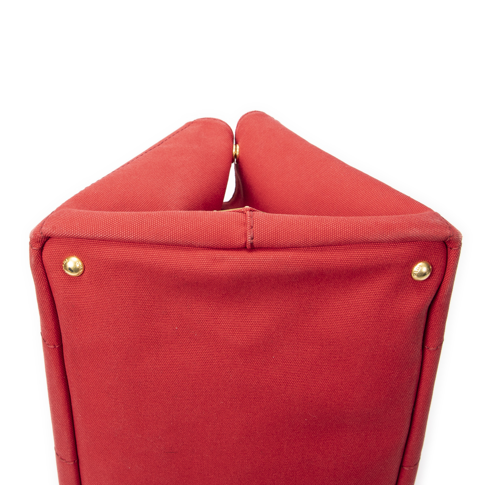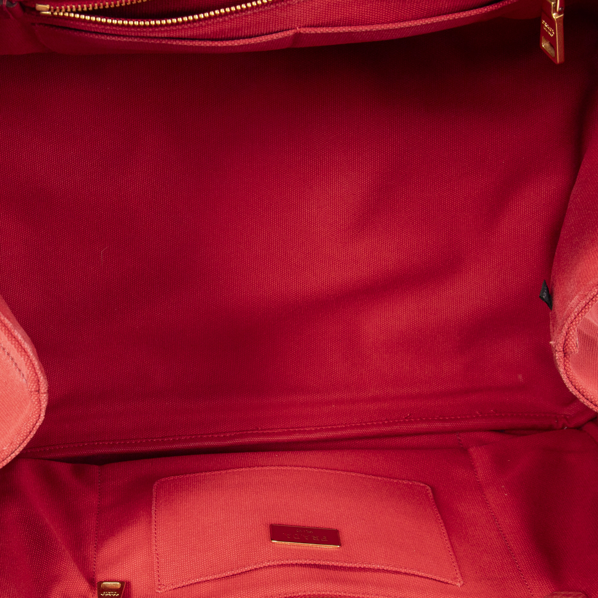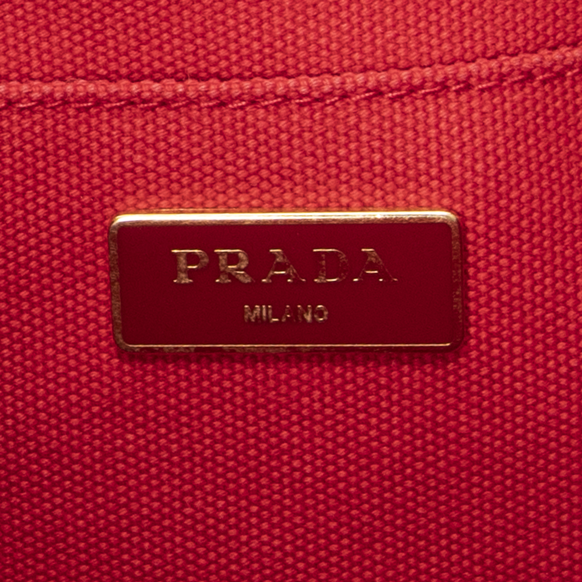 Prada Handbag Large Canapa Tote in Red Canapa Canvas and Gold hardware. The product is in Very Good Condition (AB).