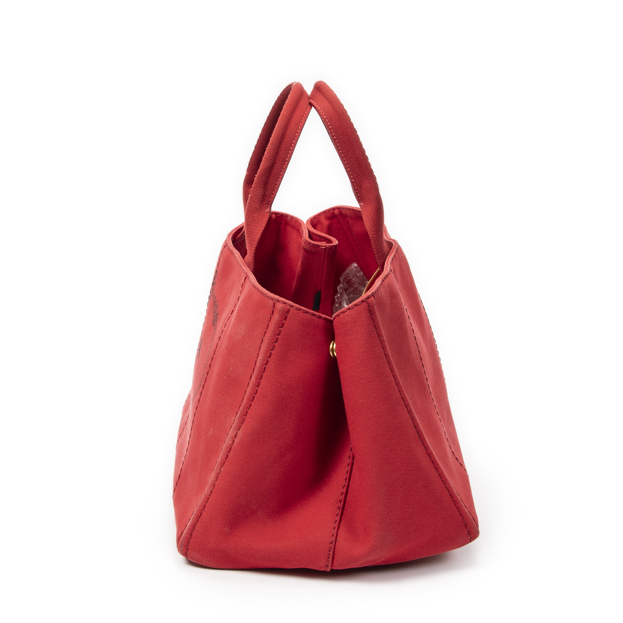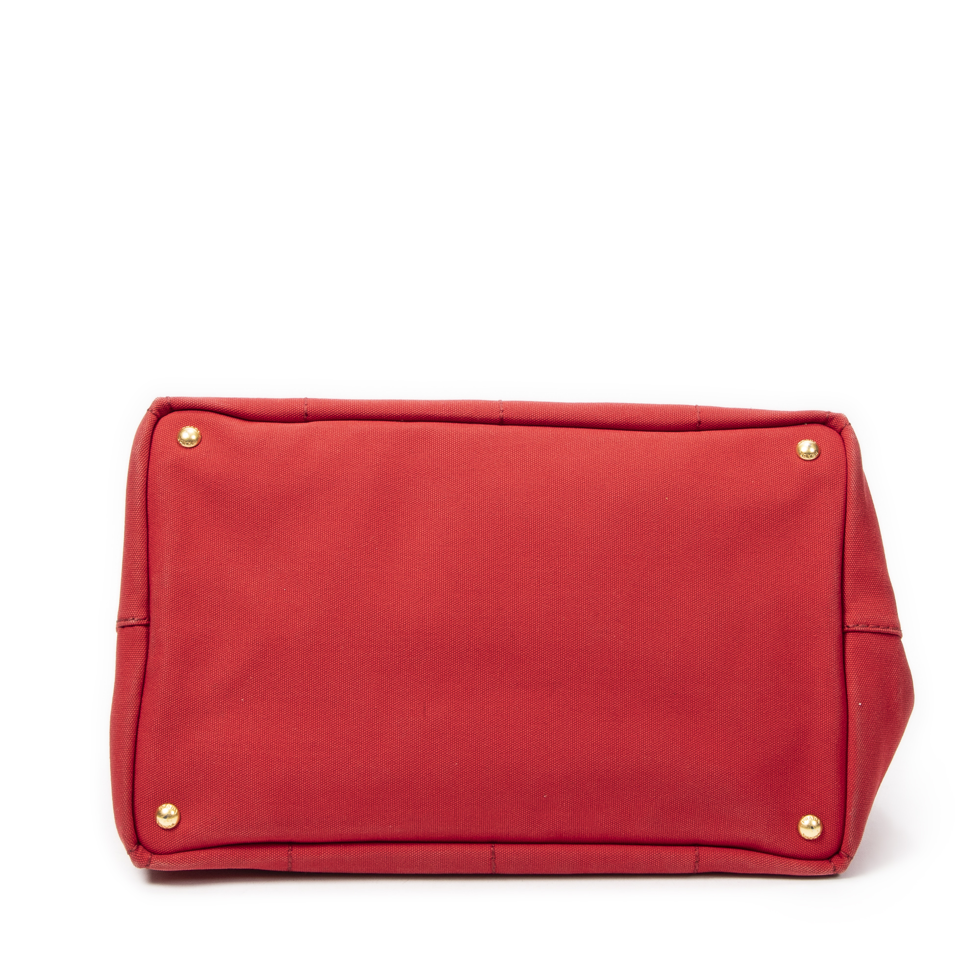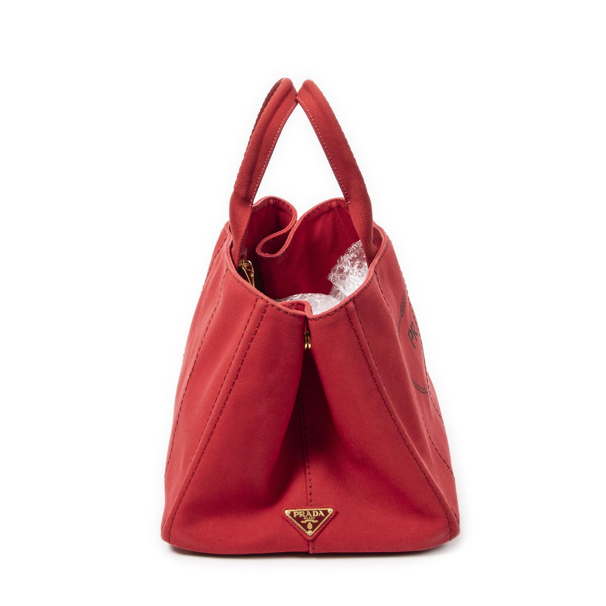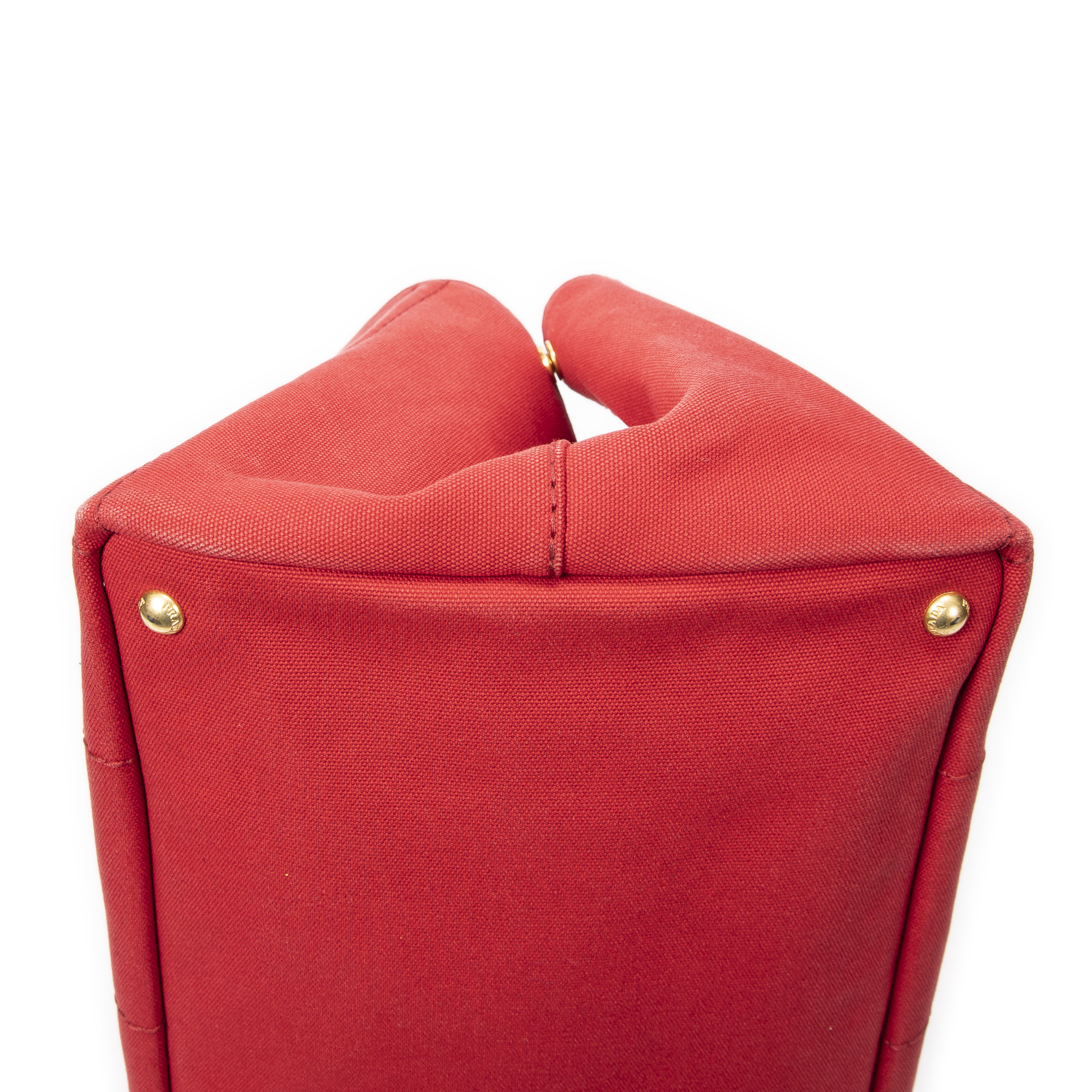 Prada Handbag Large Canapa Tote in Red Canapa Canvas and Gold hardware. The product is in Very Good Condition (AB).